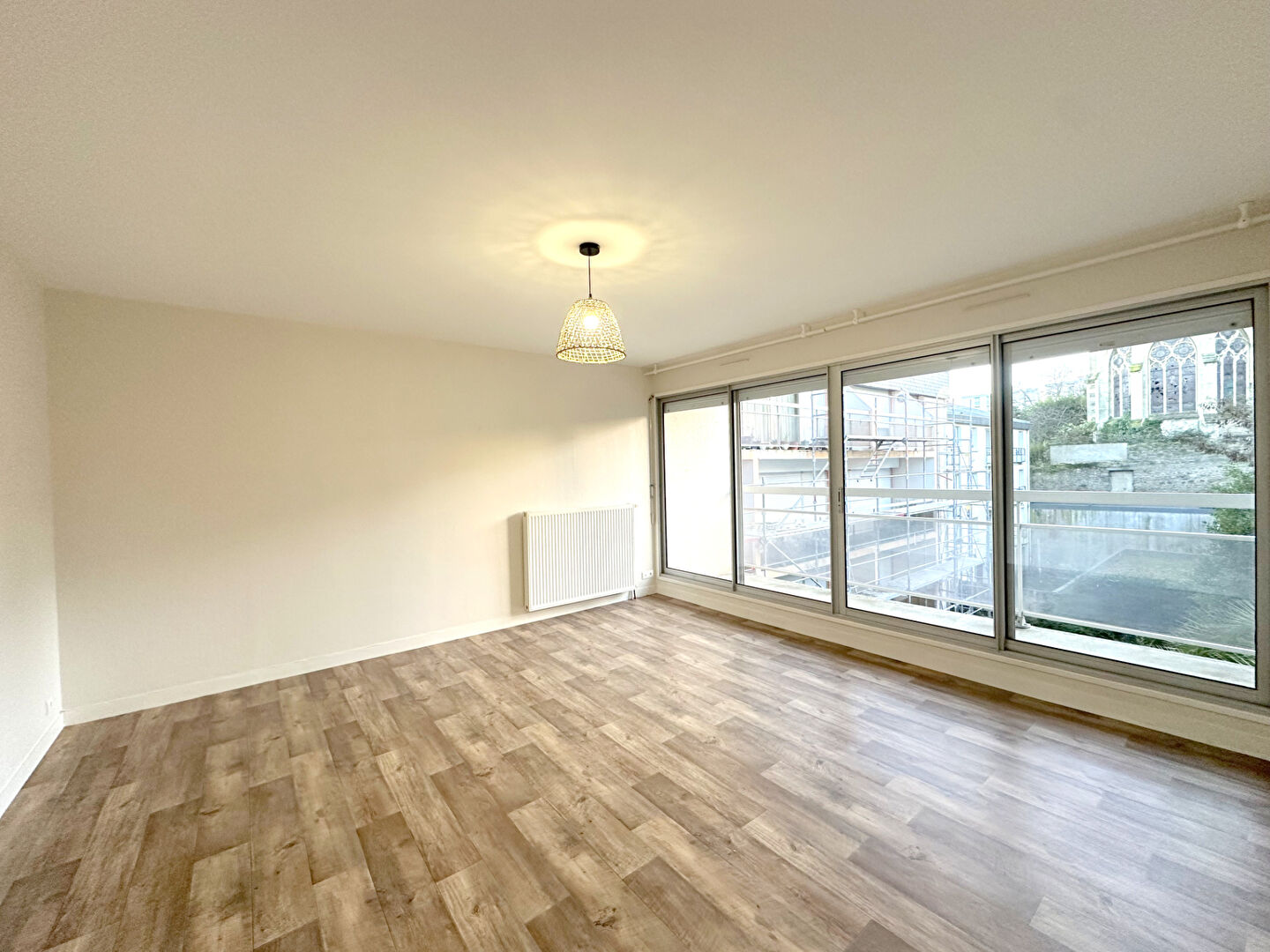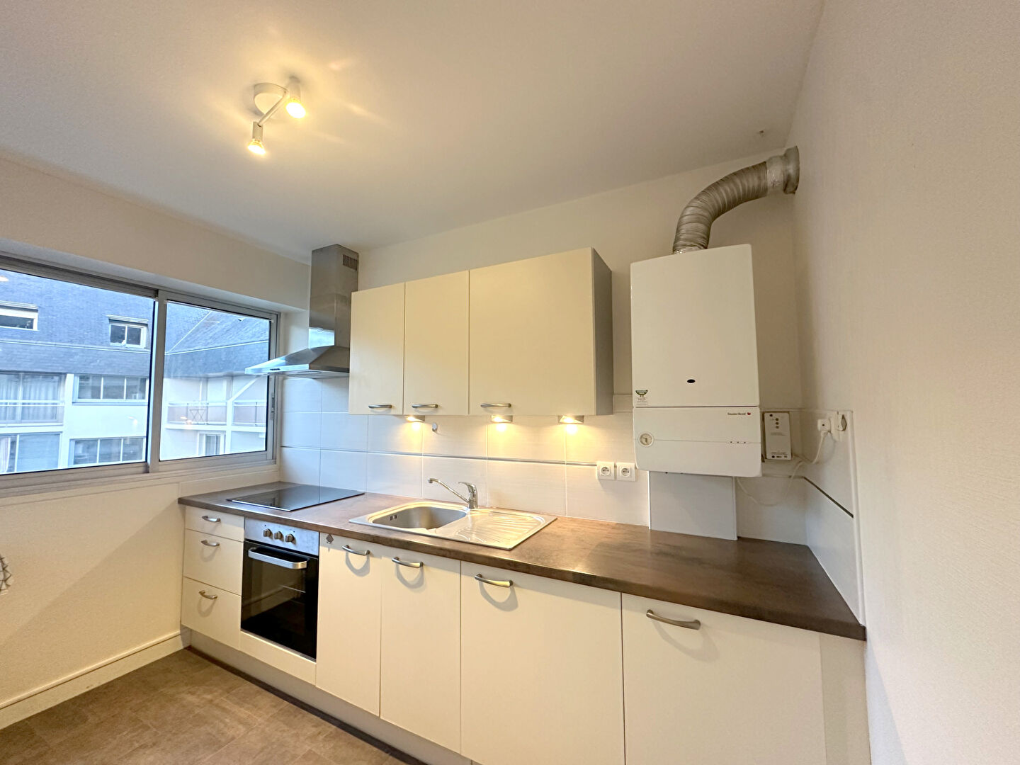 A LOUER SAINT BRIEUC / CENTRE VILLE Appartement T2 de 51m² dans une résidence calme et sécurisée comprenant une entrée, une pièce de vie avec balcon, une cuisine aménagée/équipée (four, plaque, hotte), une chambre, une salle de bains et WC. Une place de stationnement et un grenier. Chauffage gaz de ville. LUMINEUX ET AU CALME ! Charges comprenant l'eau froide et les parties communes.