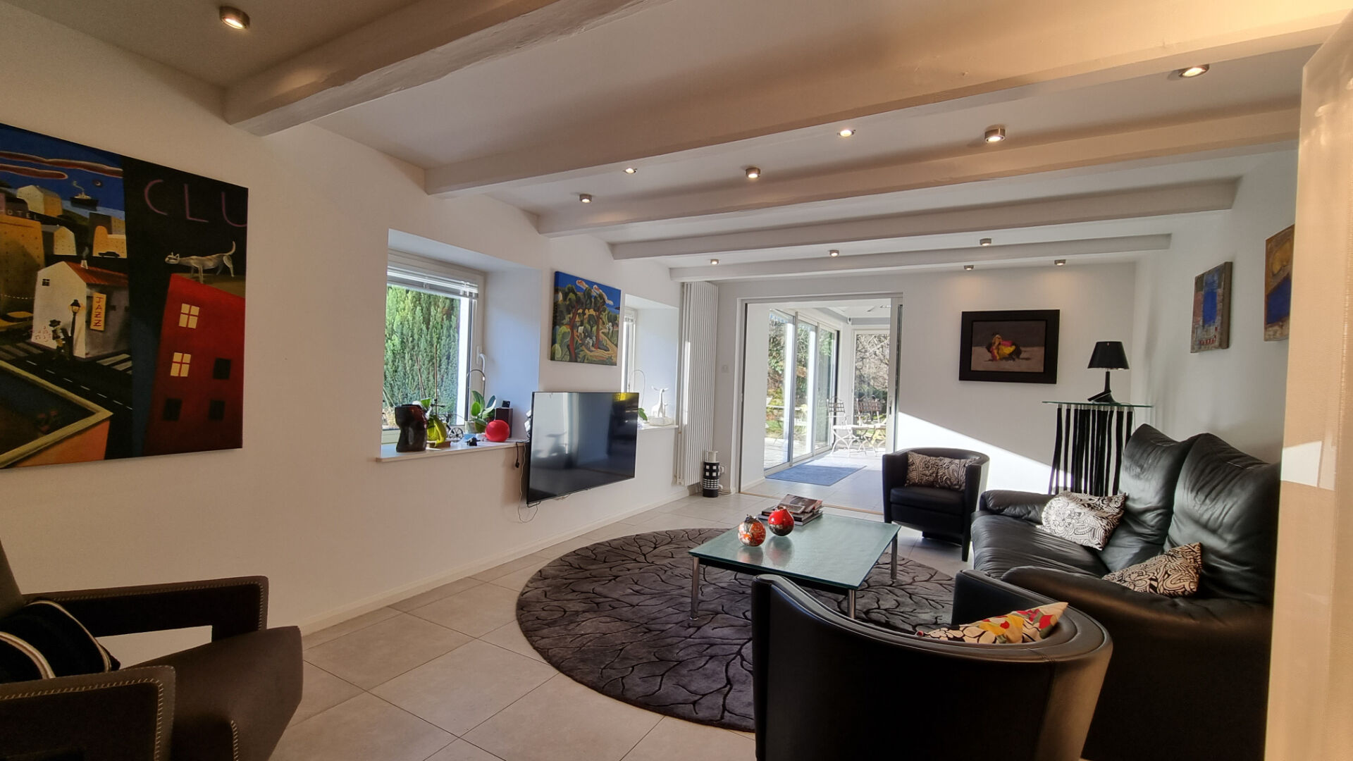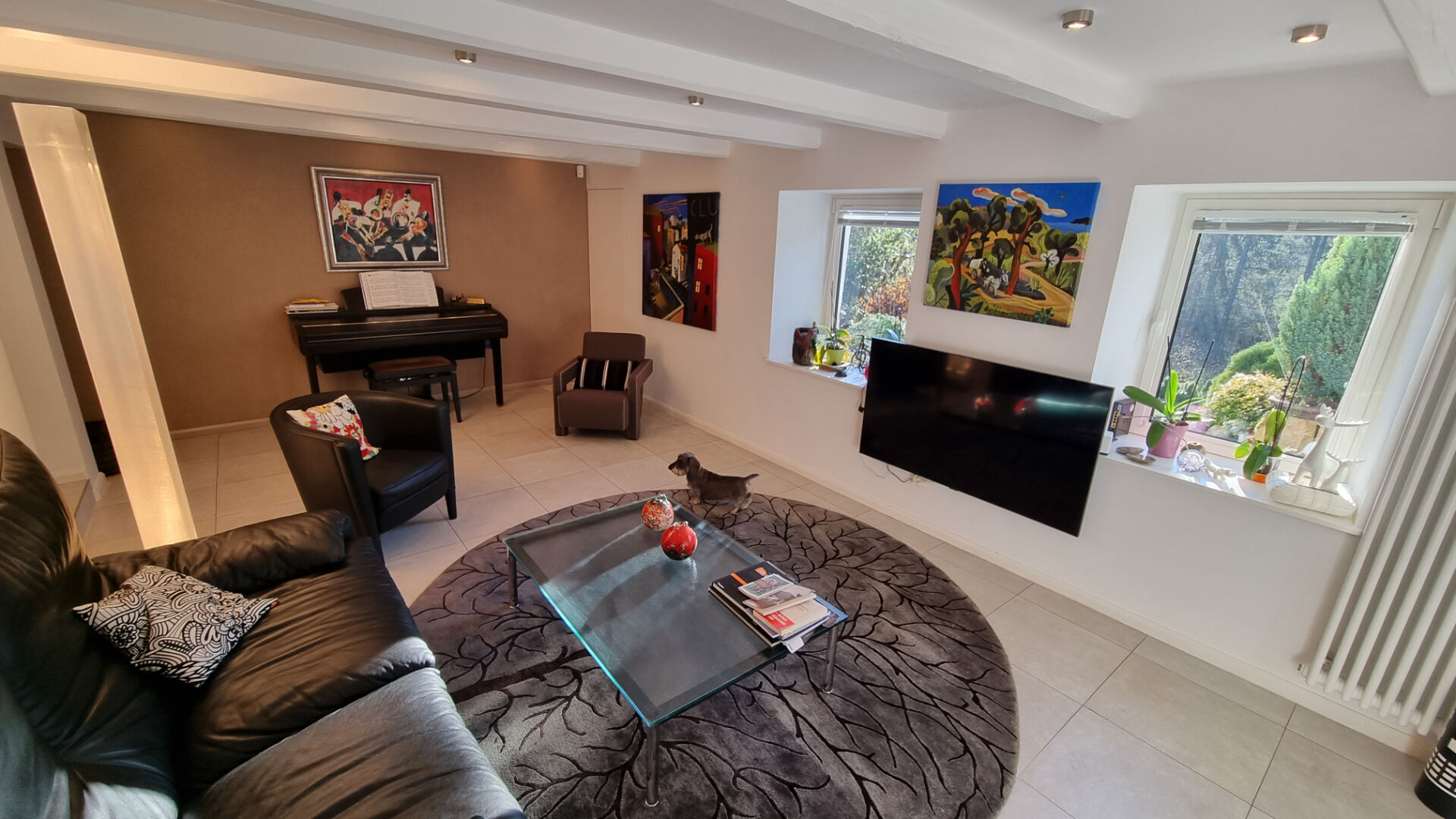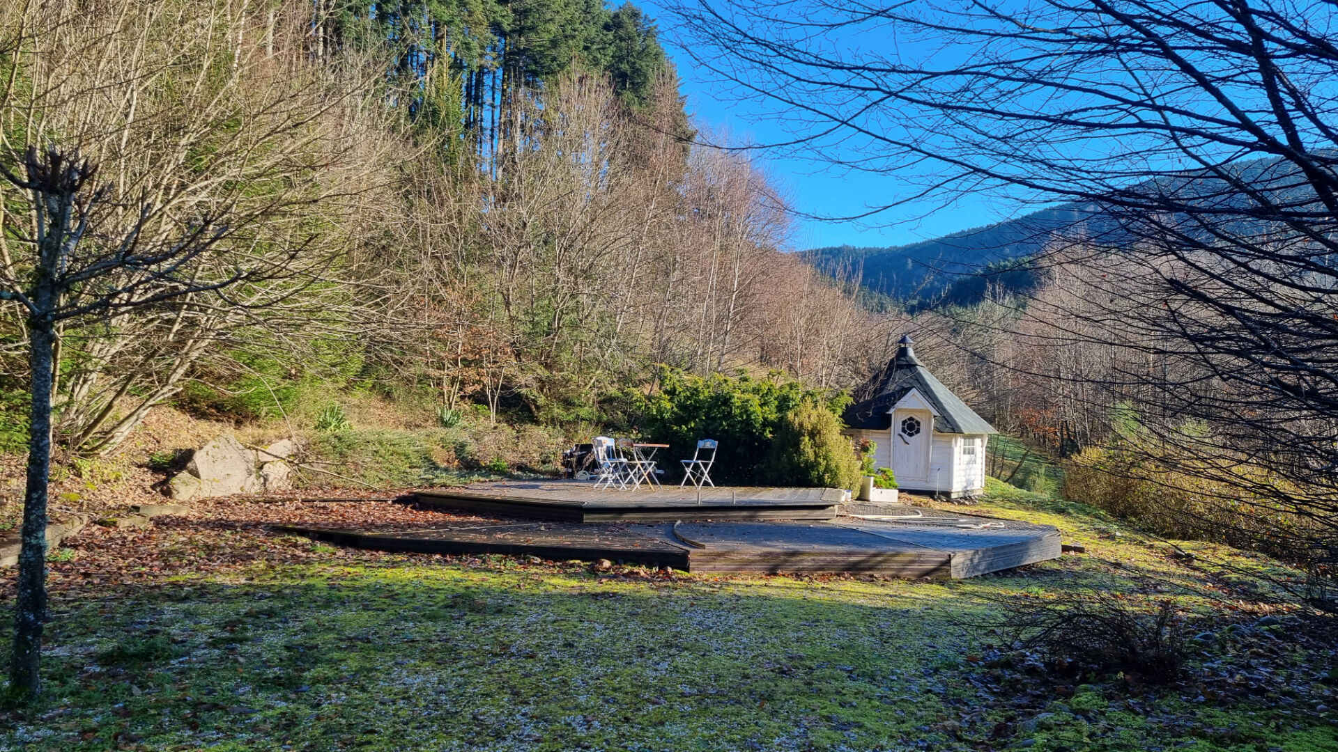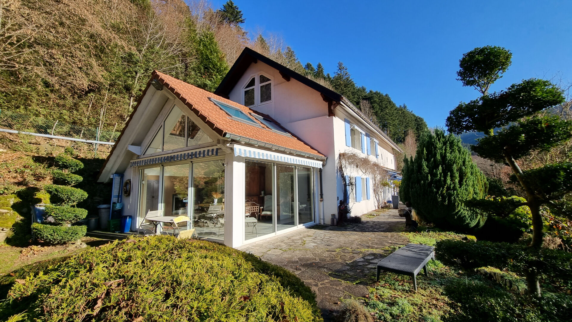 COUP DE COEUR pour cette maison de caractère totalement restaurée avec de très belles prestations, rénovation de haute qualité, aménagée avec beaucoup de goûts, située dans un très bel environnement verdoyant en exposition Sud, sans aucun vis à vis, en bordure forêt, axe ST DIE -Alsace, à 1h de STRASBOURG - 50 min de COLMAR - 1H15 de NANCY, comprenant au rez de chaussée, hall d'entrée ( placard ), cuisine équipée et aménagée, vaste salon-séjour avec de grandes baies vitrées, cheminée et accès terrasse et jardin, salle d'eau équipée, local technique, dégagement, buanderie, wc ( fosse septique ), à l'étage, 1 chambre avec placard, wc, 1 chambre avec dressing, salle d'eau équipée, dégagement avec placard, très bel espace à vivre en plafond cathédrale, avec cheminée et baie vitrée donnant sur terrasse, partie mezzanine avec home cinéma et espace chambre. Terrain attenant paysager avec garage 2 VL avec portes motorisées - recharge pour véhicule électrique, un kota, un plan d'eau et dépendance annexe. Possibilité piscine. Portail électrique. Pompe à chaleur - climatisation réversible - eau chaude gaz citerne - cheminées à bois et à gaz. Diagnostic énergétique B. Taxe foncière 2025 : 337 euros