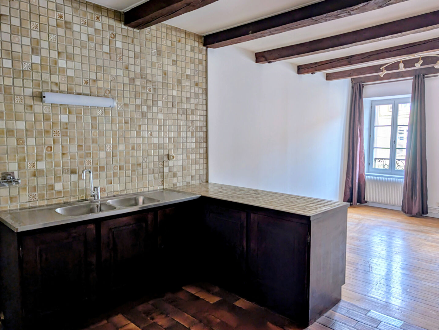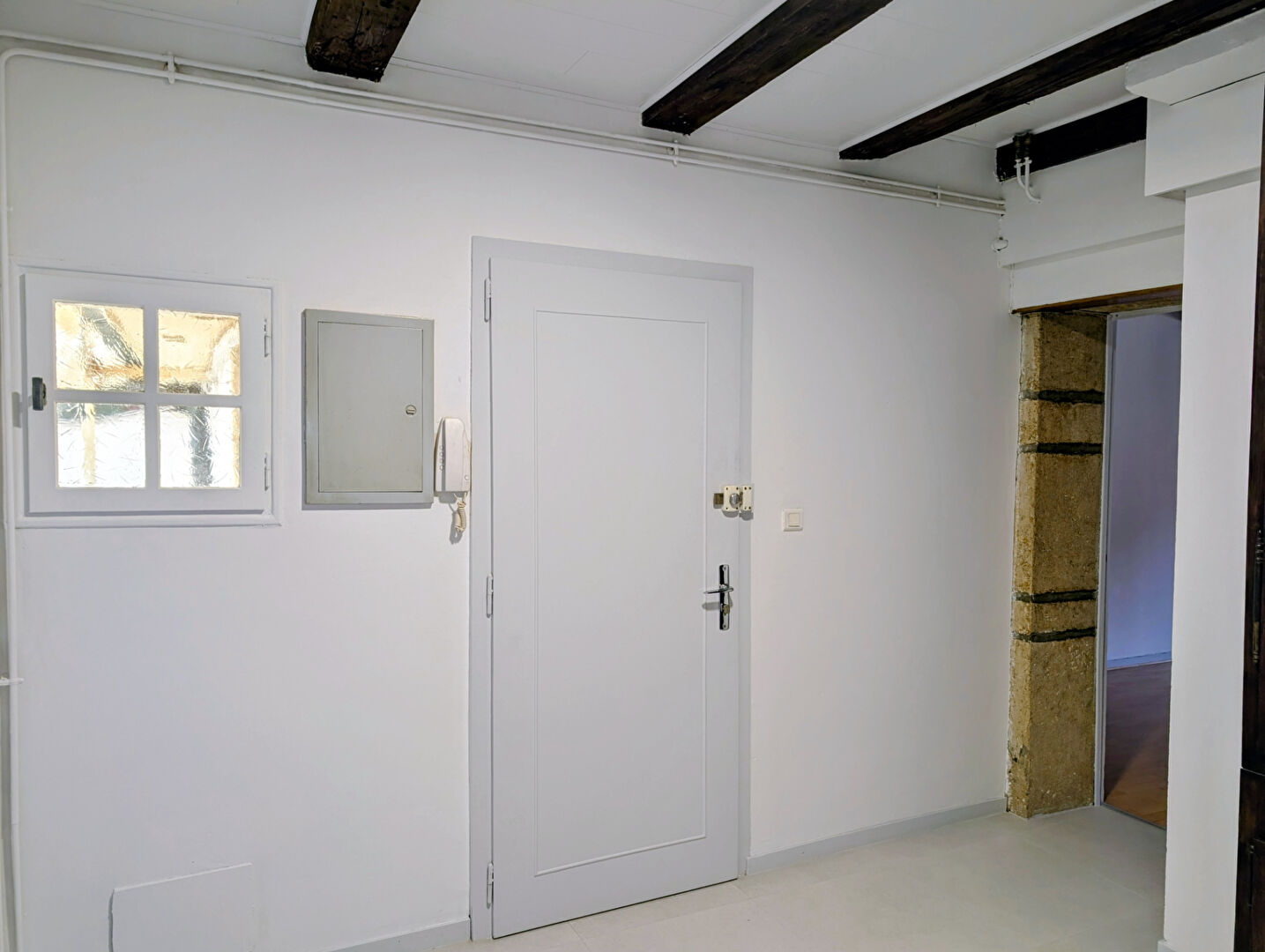 Rue de la République à Pontarlier, au deuxième étage d'une petite copropriété, ce grand F2 entièrement rafraîchi offre une distribution fonctionnelle et agréable. Il comprend une entrée, une chambre avec placard donnant sur une cour intérieure, une salle d'eau rénovée avec une douche neuve et un WC indépendant. Vous profiterez également d'une vaste pièce de vie et d'une cuisine attenante à un espace salle à manger. Le logement est équipé d'un système de chauffage et d'eau chaude au gaz. Disponible de suite.