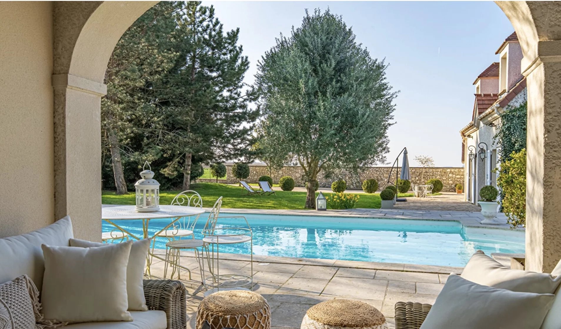 Au coeur d'un charmant village pittoresque en pierres, situé entre Thoiry et Montfort-l'Amaury, à Marcq, à seulement 45 minutes de Paris, cette propriété idéalement implantée à l'abri des regards bénéficie d'une exceptionnelle luminosité grâce à sa double exposition Sud-Ouest et de larges ouvertures donnant sur un magnifique jardin paysager.