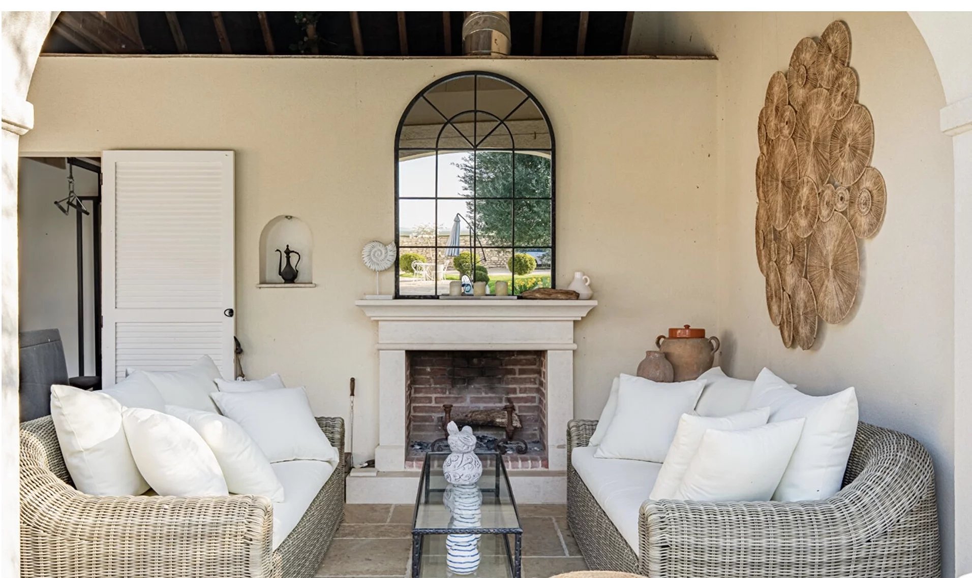Un superbe salon cocooning avec cheminée insert, idéal pour de belles flambées, donne accès à une terrasse extérieure avec salon d'été et sa fontaine.