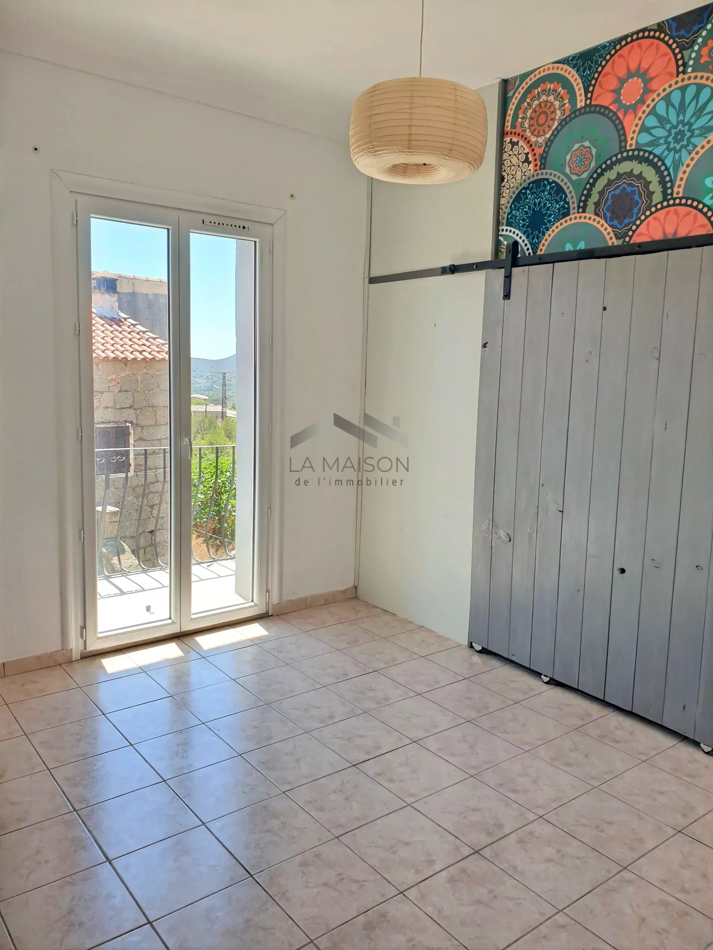 Dans le centre du village de Monaccia-d'Aullène, dans une bâtisse construite en pierre de granit, venez découvrir cet appartement ancien de caractère bénéficiant d'une belle vue dégagée. L'accès se fait par l'entrée commune de l'immeuble et une cage d'escalier desservant de manière indépendante chaque niveau de l'appartement : Au rez-de-chaussée : un salon séjour, une cuisine, un cellier donnant sur une terrasse, une salle d'eau avec toilettes et une cave de faible hauteur. Au 1er étage : deux chambres, dont une avec balcon, un dégagement et une salle d'eau avec toilettes. Chaque niveau peut donc être aménagé en appartement indépendant avec quelques travaux d'adaptation.