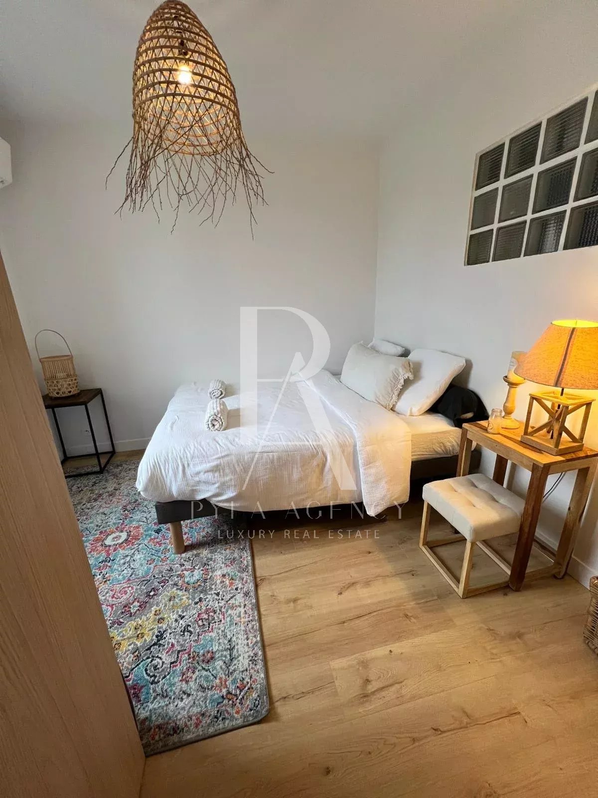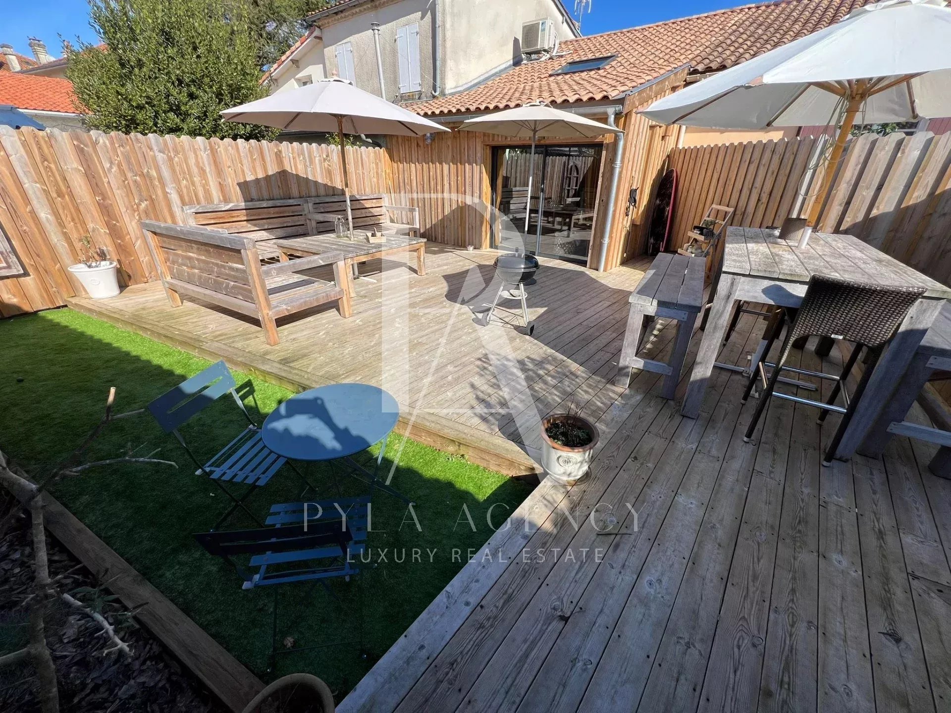 Proche de toutes commodités du centre ville de Gujan-Mestras, et bénéficiant d'un calme absolu, cette maison de ville entièrement rénovée avec goût vous séduira par son élégant style bohême chic. Elle se compose au rez-de-chaussée d'une cuisine moderne et parfaitement équipée ouverte sur un séjour chaleureux, d'une chambre avec placard, d'un bureau, d'une salle d'eau avec douche à l'italienne et double vasque, ainsi que d'un cellier/buanderie. A l'étage une chambre parentale spacieuse offrant un bel espace de nuit. Coté extérieur, vous profiterez d'un jardin entièrement clôturé et d'une terrasse en bois exposée Ouest, idéale pour les moments de détente. Place de parking à l'extérieur. Un véritable cocoon, plein de charme et idéalement situé. Aucun travaux à prévoir. Parfait pour une résidence principale ou secondaire.