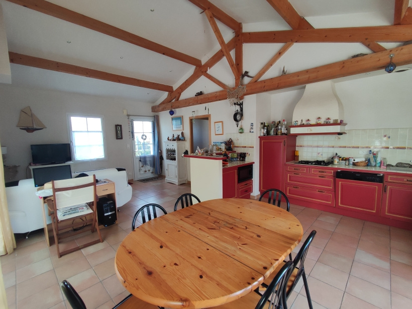 Cette maison vous accueille avec une pièce de vie baignée de lumière, une cuisine ouverte aménagée et équipée,