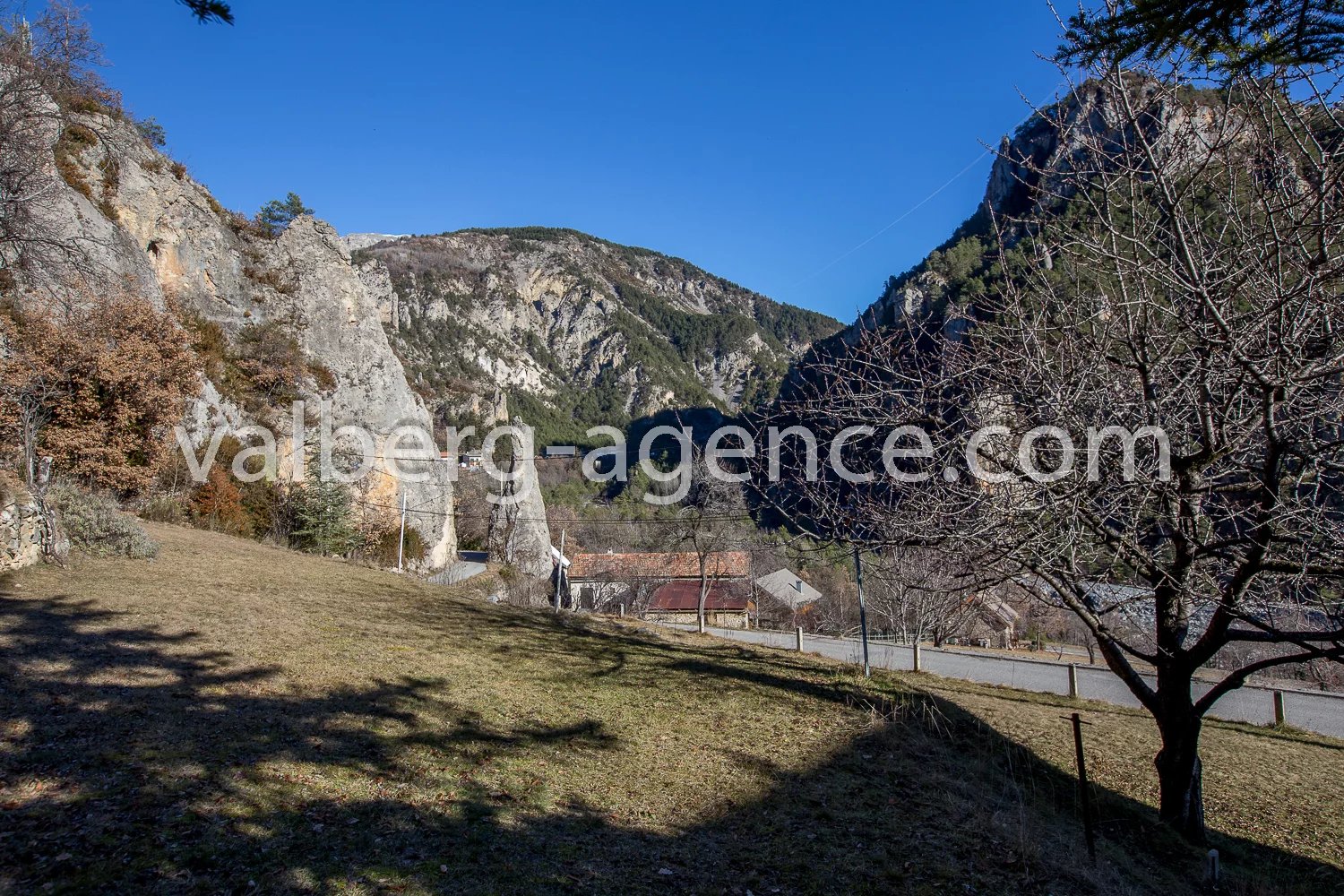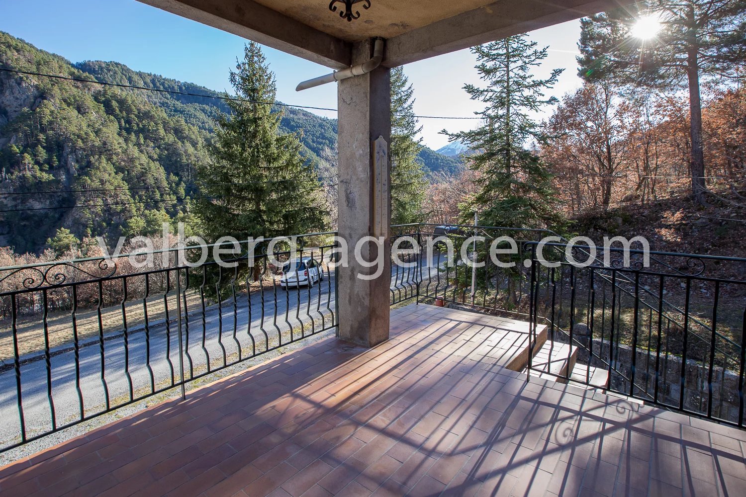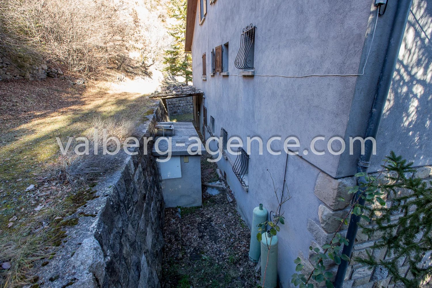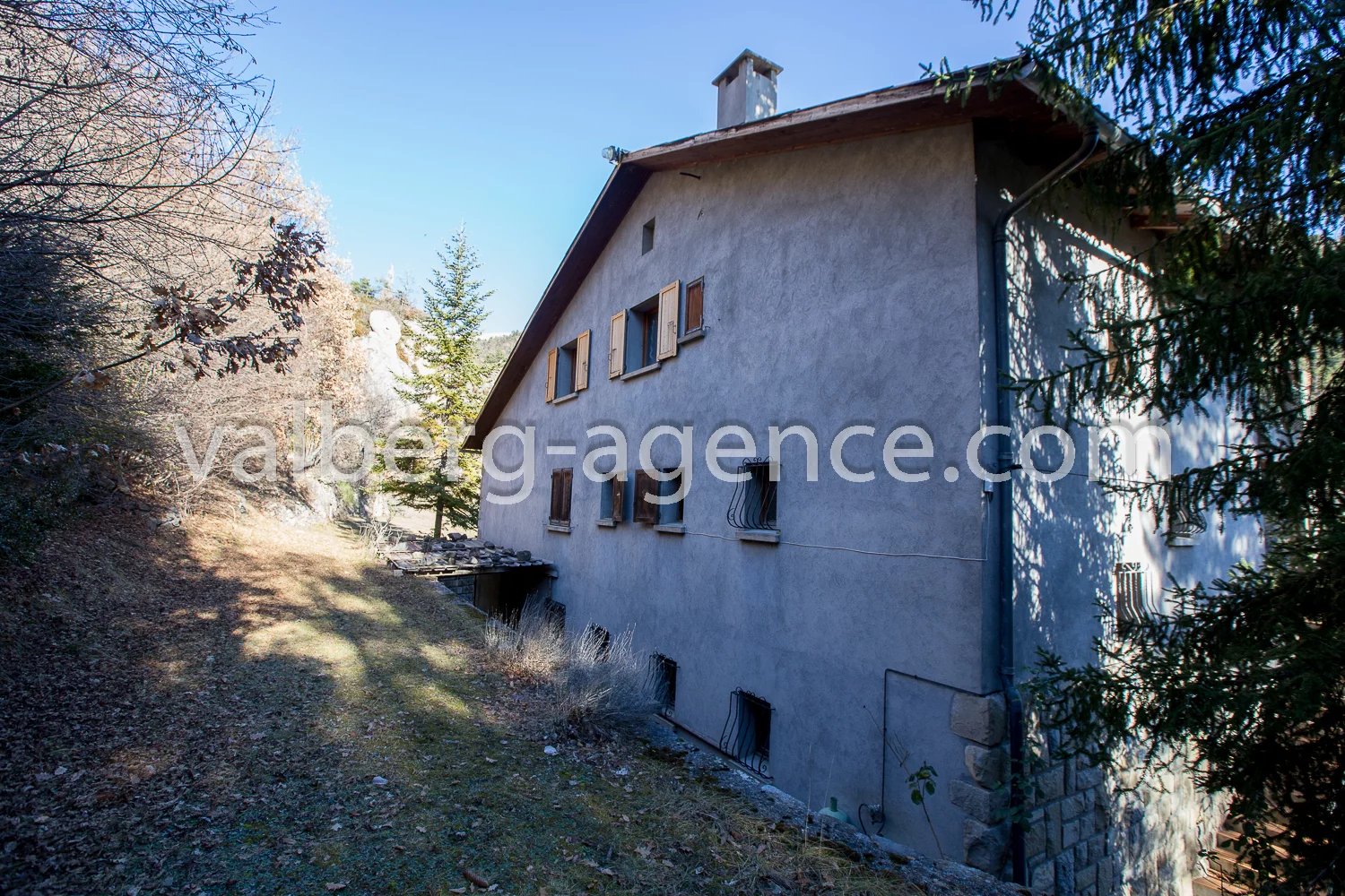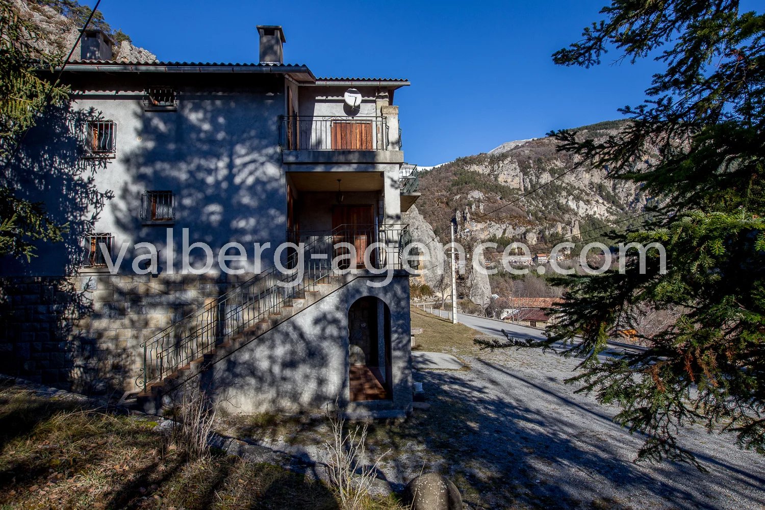 À 10 km de Valberg et proche de Péone, maison familiale en pierres sur plus de 1 ha, raccordée aux réseaux. Sur 3 niveaux: RDC avec garage, atelier et espace brut de 55 m²; 1er étage appartement de 117 m² (séjour avec cheminée, terrasse, 3 chambres); dernier niveau à aménager. Belle vue montagnes.