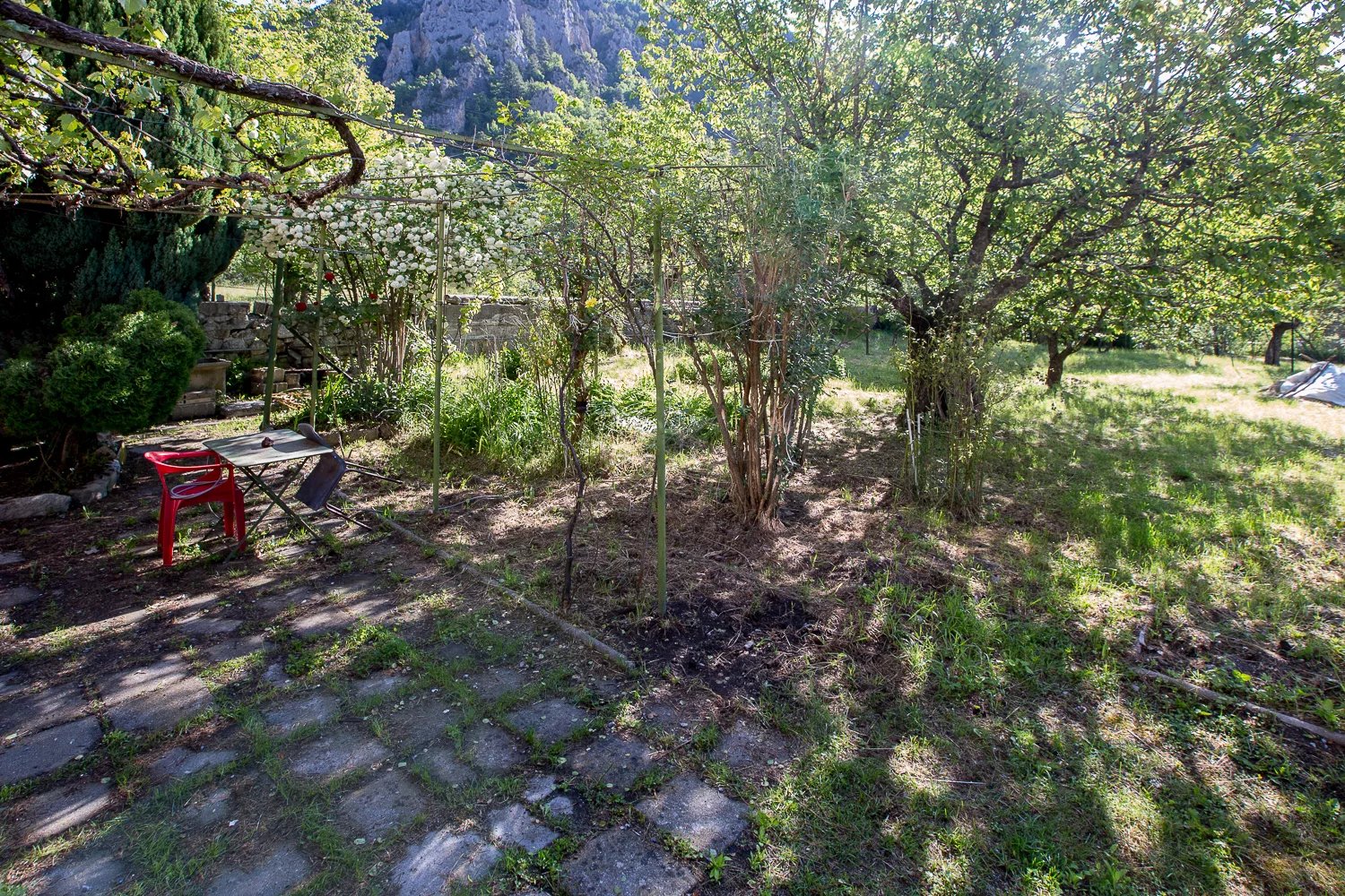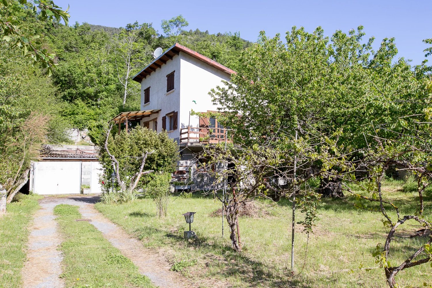 A Guillaumes, venez découvrir cette maison d'habitation avec diverses dépendances sur un terrain de plus de 1300m². Edifiée dans les années 1970, cette maison est élevée de deux niveaux sur rez-de-jardin et se compose de la façon suivante : Rez-de jardin : un beau volume à l'état brut actuellement utilisé en espace rangement et atelier avec une cave en-dessous. Premier étage : un appartement typique des années de la construction avec une salle à manger avec cheminée, une cuisine communiquant avec la salle à manger, un couloir desservant deux chambres, une salle de douche et un WC indépendant. Une terrasse. Au deuxième niveau : un appartement de 2 pièces rénové récemment. L'ensemble est situé dans un agréable quartier en bordure du village de Guillaumes dont le centre et toutes les commodités sont très facilement accessibles à pied. Sur le terrain plat, joliment arboré et clôturé se trouve également deux garages et un « poulailler ». Éloignée de la route départementale, cette maison au calme sera parfaite pour accueillir votre famille en résidence principale ou en résidence secondaire pour des séjours en moyenne montagne proche de la station de Valberg. Des travaux de mise aux normes et de mise au goût du jour sont toutefois à prévoir. Le site est bien ensoleillé et bénéficie d'une vue dégagée sur le village et son château médiéval. Rare opportunité sur ce secteur, à voir rapidement !