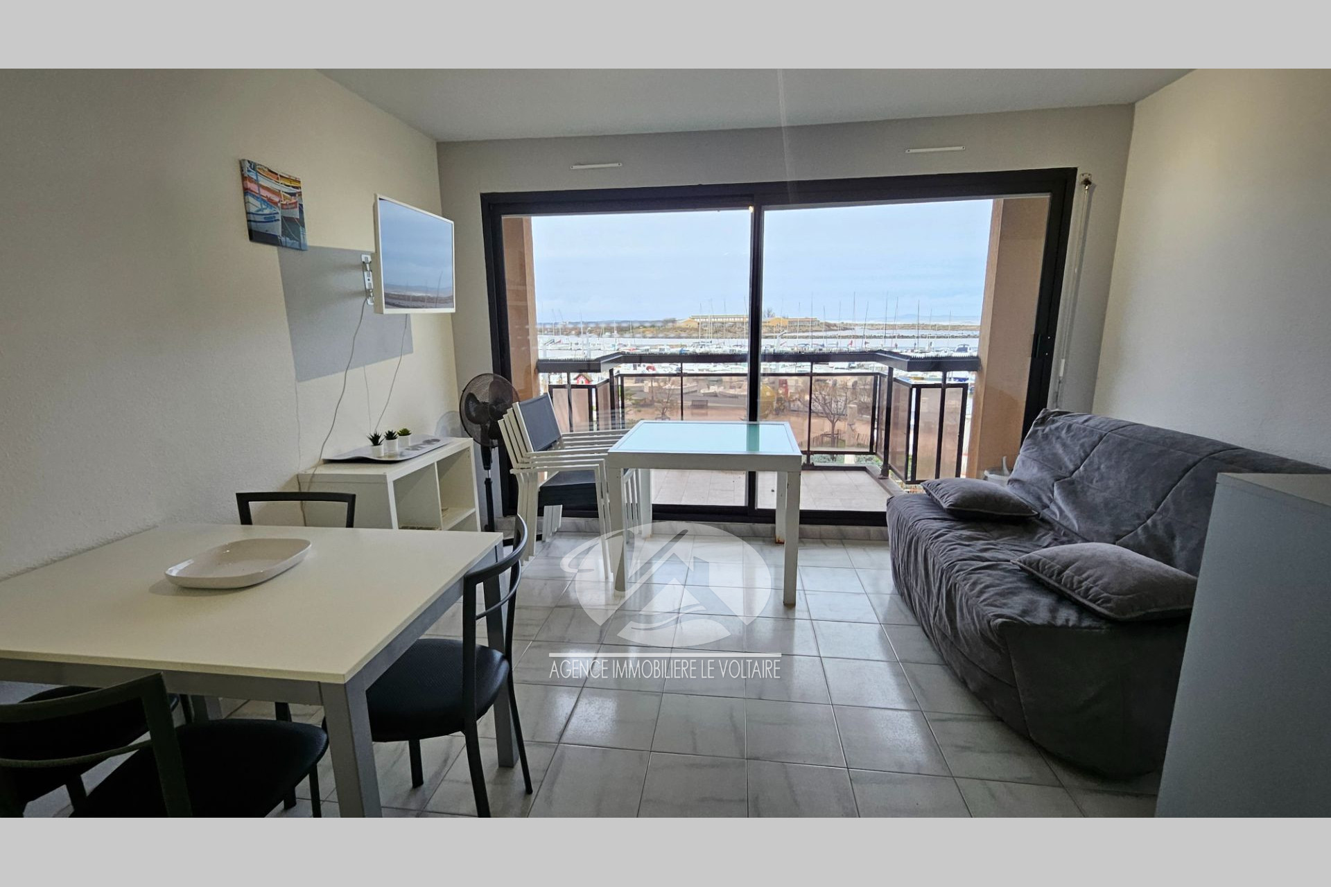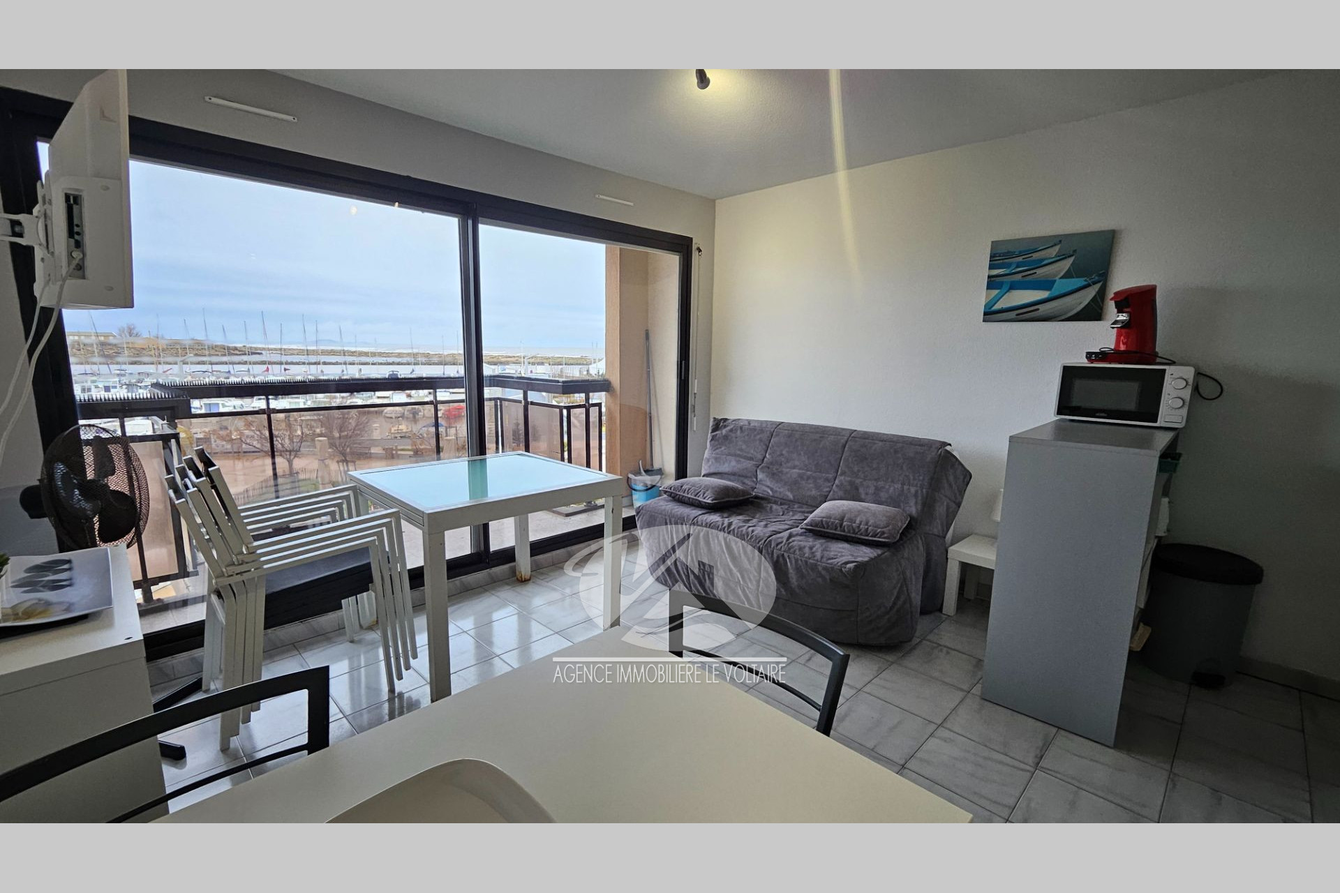 Studio Cabine dans résidence privée, avec vue sur le port et la mer, 23.5 M² SH, comprenant, 1 Cabine avec 2 lits superposés,1Pièce à vivre avec kitchenette, grande baie vitrée donnant sur le port et la mer, 1 salle de bain, toilette séparé.
