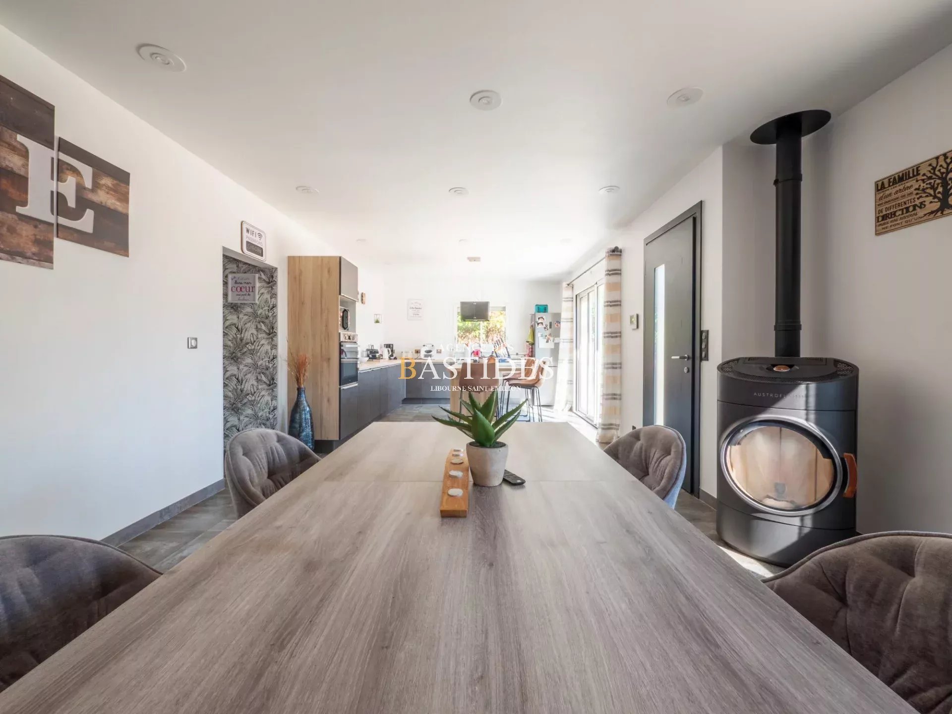 A Coutras, une touche de modernité pour cette maison traditionnelle rénovée de plain pied entièrement rénovée comprenant une grande cuisine ouverte sur un séjour-salle à manger, 3 chambres dont une suite parentale, 2 salle d'eau/wc, un cellier buanderie. Terrain clos avec portail motorisé, un garage non attenant et une dépendance équipée d'une cuisine d'été avec cheminée. La maison est dotée d'un chauffage par poêle à granules, d'un cumulus thermodynamique, d'un adoucisseur d'eau. Possibilité de faire un carport 2 véhicules. Toiture en bon état, électricité, plomberie, isolation, assainissement individuel refaits Aucun travaux à prévoir. Ramassage scolaire primaire, collège à proximité.