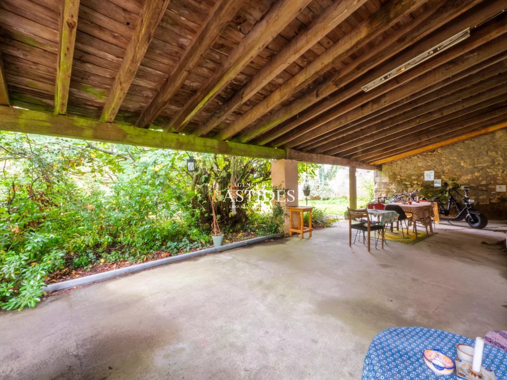 Dans un environnement boisé et bucolique, charmante maison en pierre comprenant un vaste séjour salle à manger avec une cheminée insert, une cuisine, 5 chambres dont 3 en rez de chaussée et une suite parentale à l'étage avec une entrée indépendante, un cellier, une salle de bains et une salle d'eau, 2 wc, dressing et nombreux rangements. Un atelier d'environ 30 m2 avec mezzanine complète cet ensemble ainsi qu'un préau de 60m2. Maison implantée sur plus de 6000 m2 avec piscine chauffée au chlore et une terrasse avec barbecue Maison équipée d'une pompe à chaleur air/eau, la toiture a été refaite sur une partie et remaniée sur l'autre, pas de travaux à prévoir. A 5 minutes des commodités et des écoles dont collège et lycée.
