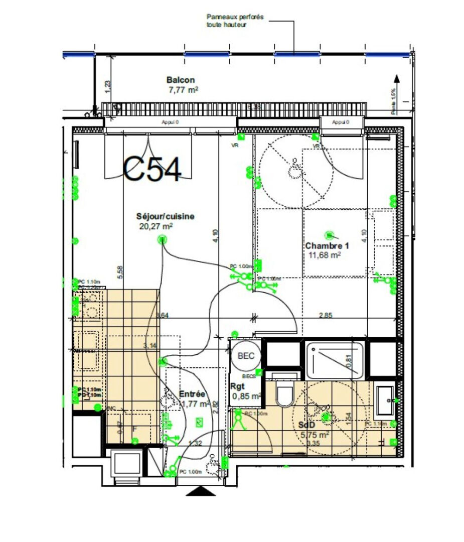 ROUEN - Rue Louis Poterat. A proximité des commerces et à 10 minutes du centre commercial Saint-Sever et du Jardin des Plantes. Cet appartement T2 d'une superficie d'environ 40 m² se situe au 5ème étage d'une résidence de 2019. Il se compose : - d'une entrée - d'un séjour avec cuisine ouverte aménagée de 20 m² - d'un balcon de 8 m² - d'une chambre de 11 m² - d'une salle d'eau avec WC Une place de parking privative complète ce bien. Chauffage individuel électrique. Charges annuelles : 748 euros. Ses atouts : Proche toutes commodités et transports, résidence récente, balcon, parking. Copropriété de 217 lots - dont 99 lots habitation. (Pas de procédure en cours). Charges annuelles : 748 euros.