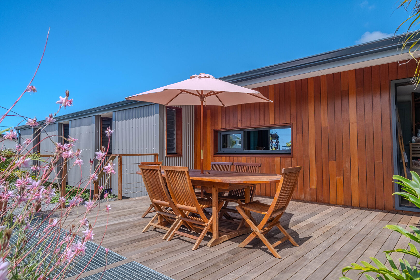 En Exclusivité! Laissez-vous séduire par cette maison construite en 2024, en structure bois, conçue avec une attention particulière portée aux détails, offrant un confort de vie optimal et une excellente qualité de construction. Sécurité et sérénité la résument : la construction est conforme aux normes anti-cycloniques. Les matériaux ont été soigneusement choisis pour garantir la durabilité et la pérennité de la maison. La maison se compose d'un séjour lumineux avec cuisine équipée, ouverts sur une grande varangue. Dégagement avec WC indépendant et salle d'eau avec double vasque et douche italienne. L'espace nuit se compose quant à lui de 3 chambres, dont une suite avec dressing et WC. Le terrain arboré de 550 m² est agréable, propice à la détente. Le Jardin avec terrasse est soigné, idéal pour profiter du climat toute l'année. Nous sommes fiers de vous présenter cette maison unique, chaleureuse, moderne et fonctionnelle, parfaite pour une vie de famille paisible dans un cadre naturel privilégié. Contactez-nous pour plus d'informations ou organiser une visite ! Taxe Foncière 2025 : 1 257 euros Prix de vente: 445 200 euros frais d'agence inclus - honoraires à la charge vendeur Référence annonce : 254690 Non soumis au DPE Les informations sur les risques auxquels ce bien est exposé sont disponibles sur le site Géorisques : www.georisques.gouv.fr. Consommation énergie primaire : Non communiquée. Consommation énergie finale : Non communiquée.