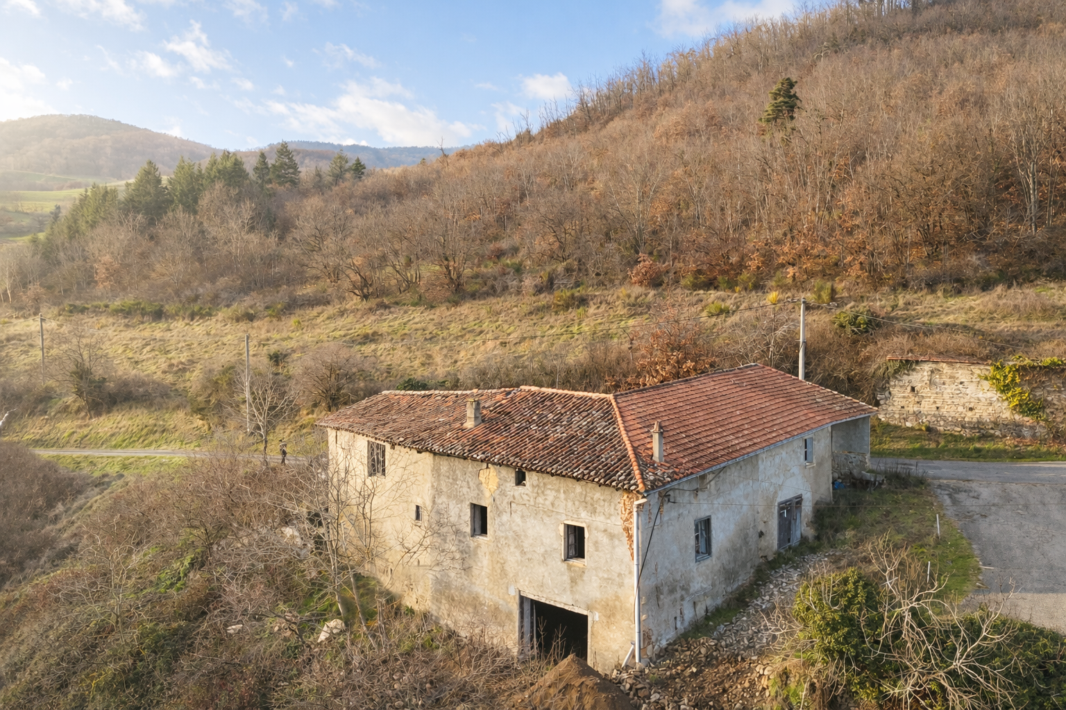 Vous bénéficierez de superbes volumes à aménager avec charme de l'ancien (poutre apparente, belle hauteur sous plafond, pierre) et d'un terrain de plus de 3000m2 (une partie est en pente). Vous pourrez l'aménager selon vos envies, idéal pour un artisan ou amoureux des rénovations.