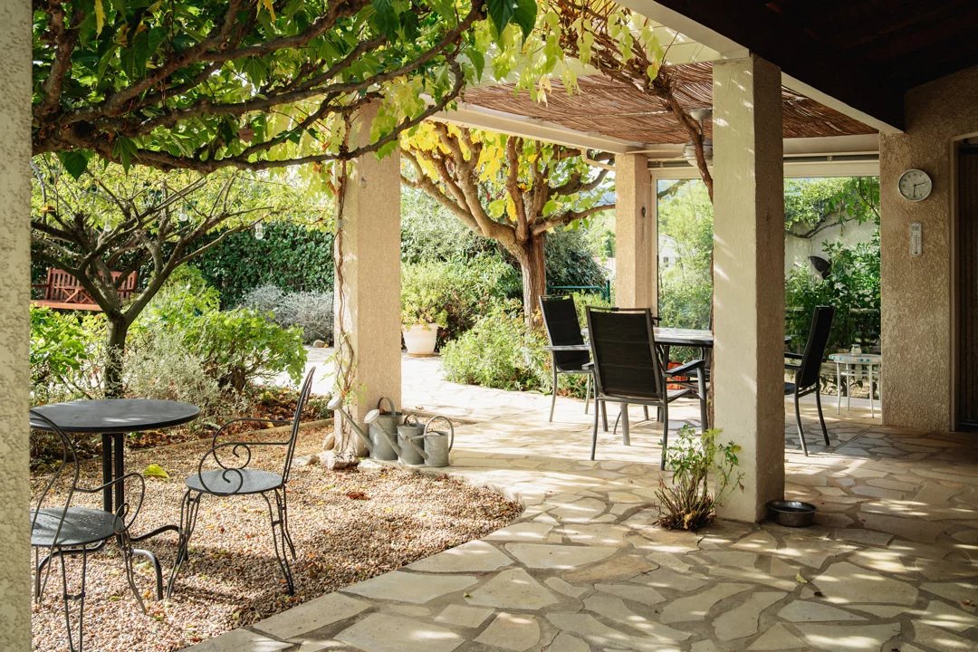 Située dans le cadre paisible et recherché de Prades-sur-Vernazobre, cette belle villa de 116 m², construite en 1996, offre une alliance parfaite entre confort moderne, authenticité et nature préservée. Implantée sur un superbe terrain clôturé de 1 600 m², elle bénéficie d’une ambiance apaisante et d’une vue dégagée sur les collines environnantes — un véritable havre de tranquillité dans le sud de la France. Caractéristiques de la villa 3 chambres spacieuses et lumineuses, facilement aménageables 1 salle de bain moderne avec douche à l’italienne, double vasque et toilette intégré 1 toilette indépendant supplémentaire pour plus de confort Grande pièce de vie de 45 m², ouvrant sur la terrasse grâce à de larges baies vitrées Cuisine ouverte entièrement équipée, parfaite pour cuisiner et recevoir Buanderie attenante avec lave-linge, sèche-linge, second réfrigérateur et rangements Confort naturel assuré par l’orientation traversante et la position dominante de la maison Espace extérieur remarquable Piscine privée au cœur d’un jardin paysager et entièrement clos Grande terrasse couverte, idéale pour les repas d’été Espace piscine avec bains de soleil et vue dégagée Aucun vis-à-vis, intimité totale Zones ombragées et ensoleillées permettant de profiter de l’extérieur toute la journée Grand parking privé avec carport Garage Vendu entièrement équipé, prêt à vivre ou à louer immédiatement Depuis plusieurs années, elle est exploitée en location saisonnière avec un succès remarquable : excellent taux d’occupation, retours positifs des vacanciers et attractivité durable grâce à son confort, son environnement et sa piscine privée. Elle constitue ainsi une valeur sûre pour : une résidence principale, une résidence secondaire, ou un investissement locatif performant avec une clientèle déjà fidélisée. La villa sera disponible après la saison 2026, permettant de poursuivre sereinement l’exploitation locative en cours avant d’en disposer librement. Un emplacement idyllique dans l’Hérault Prades-sur-Vernazobre se situe dans une région prisée pour sa qualité de vie, son patrimoine et ses paysages méditerranéens. À proximité, vous pourrez profiter de : Les vignobles renommés du Saint-Chinianais De nombreux sentiers de randonnée et circuits VTT dans un cadre naturel exceptionnel Les rivières et gorges idéales pour la baignade La Méditerranée à environ 1 heure Les villes historiques de Béziers, Pézenas, Roquebrun et Minerve Une opportunité rare Cette villa séduit par son confort, son environnement et son potentiel. Un véritable coup de cœur pour les amoureux de charme, d’espace et de tranquillité.