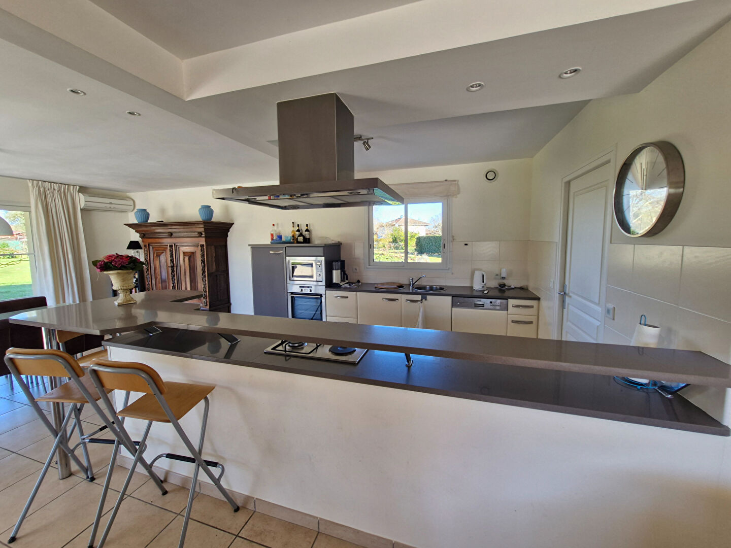 Découvrez cette belle maison de construction soignée, idéale pour une vie familiale ou un projet de vie serein. Située dans un quartier résidentiel calme et recherché, cette maison allie espace, luminosité et confort avec sa vie de plain-pied. Elle comprend: une entrée, un spacieux salon/séjour avec cuisine ouverte aménagée et équipée, un cellier/buanderie, deux chambres, dressing, un WC , une salle de bains/douche. A l'étage: un grand palier/bureau, deux autres chambres et une salle d'eau avec WC. Un grand terrain arboré d'environ 1694m2 ( avec la possibilité d'acquérir une parcelle supplémentaire), une piscine sécurisée, un garage, un carport et un cabanon complètent ce bien alliant confort, calme et qualité de vie. A découvrir sans tarder. Sonia MASSE (EI) Agent Commercial - Numéro RSAC : 512071036 - Bayonne.