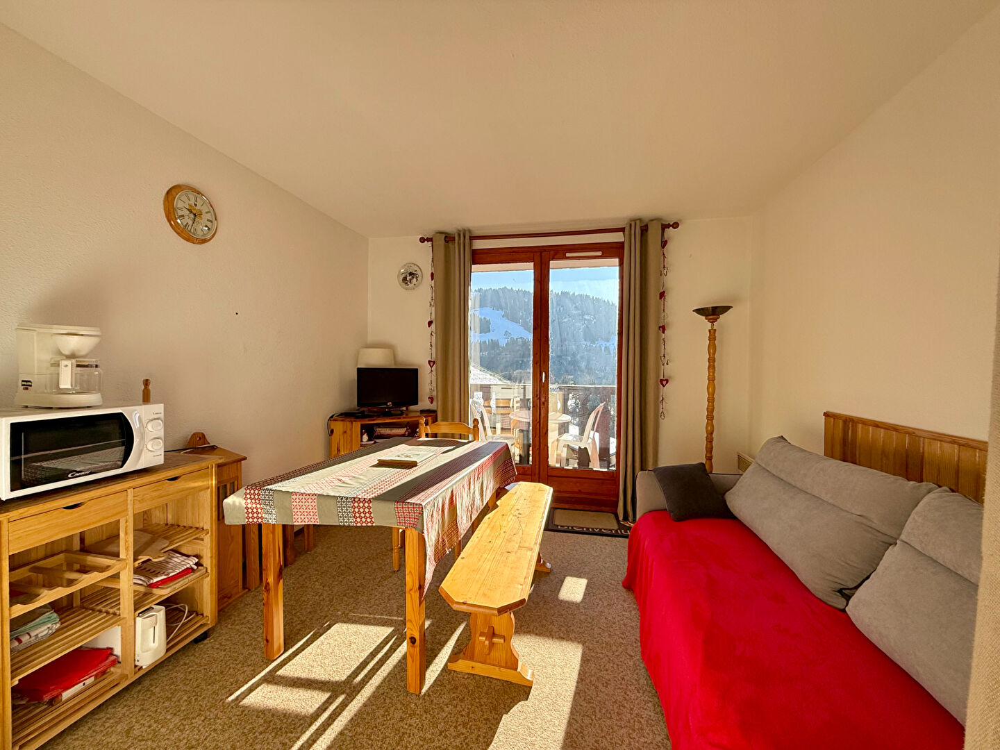 Dans une résidence au pied des pistes de l'Espace Diamant, découvrez ce nouveau studio à rénover avec un balcon en exposition sud. Il se compose d'une pièce à vivre avec cuisine ouverte , un coin montagne dans l'entrée avec lits superposés et une salle de bains avec toilettes séparés. Il est vendu avec un casier à skis et l'ensemble de son équipement. Fort potentiel de rénovation pour ce bien au coeur des montagnes. Secteur baigné de soleil en toutes saisons. (7.00 % honoraires TTC à la charge de l'acquéreur.) Copropriété de 60 lots (Pas de procédure en cours). Charges annuelles : 760 euros.