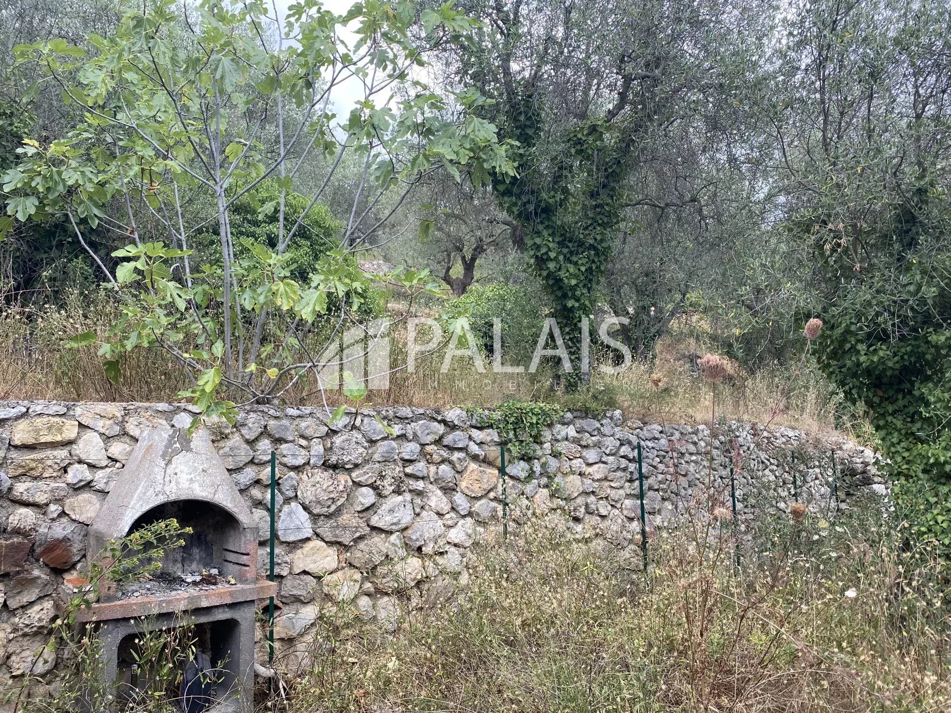 Grave de Peille, Terrain agricole sur deux planches 1465 m2 contenant un cabanon de 29 m2 en bon état. 35 oliviers. Aucun vis à vis, une immersion dans la nature