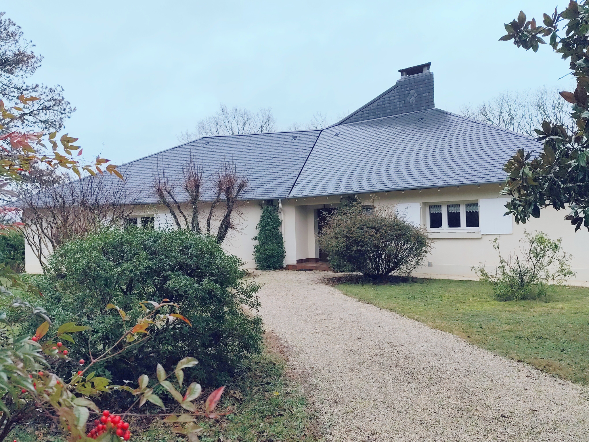 Nichée au coeur d'un magnifique parc arboré de plus d'un hectare, cette maison des année 70 à l'allure contemporaine vous invite à une vie famiiale paisible.Semi enterrée elle offre volumes et fonctionnalité.