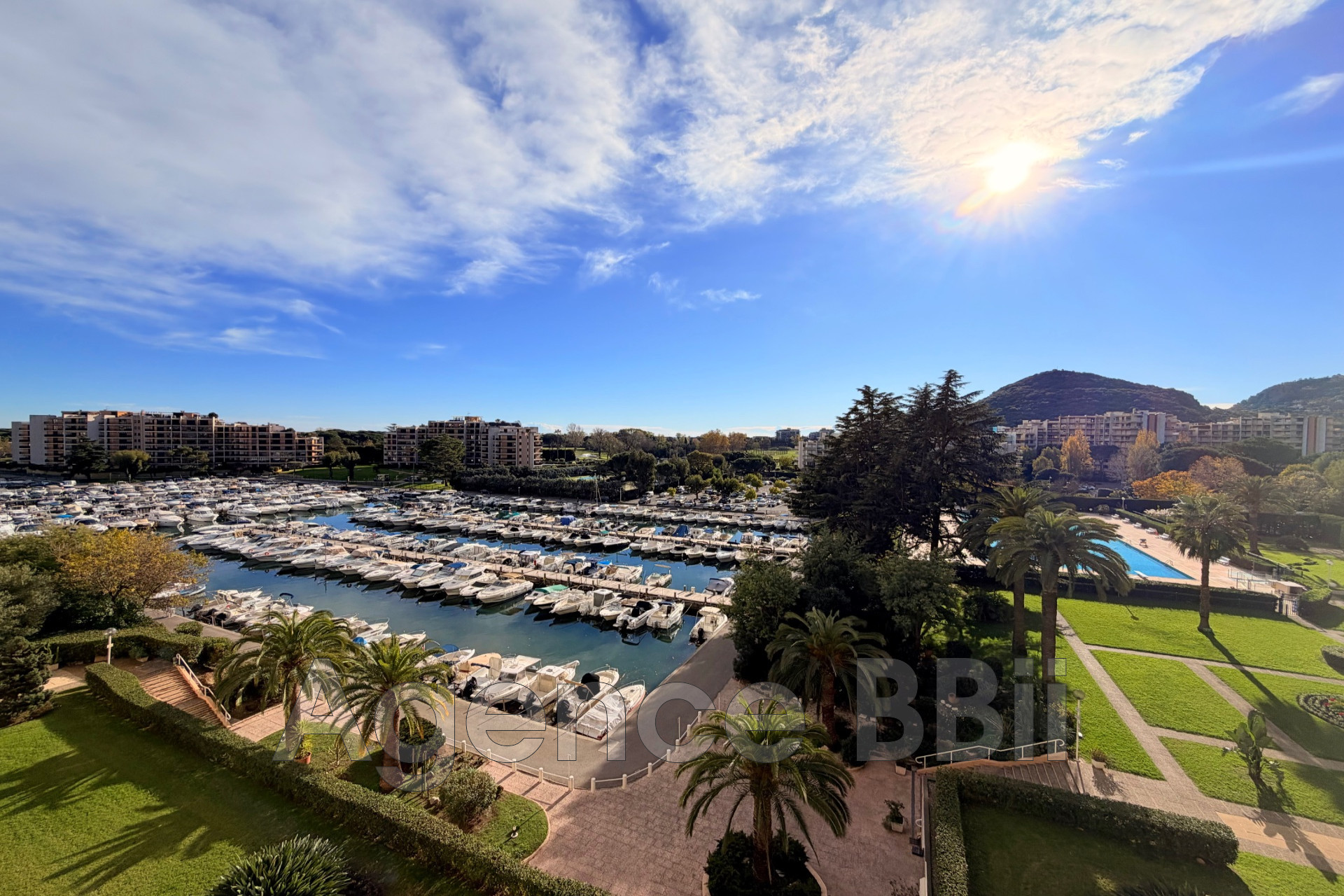 Dans une résidence recherchée avec piscine, découvrez ce bel appartement 2 pièces traversant de 54 m², situé en étage élevé, bénéficiant de deux terrasses offrant une vue imprenable sur la marina, la verdure et les collines, avec un aperçu mer.
