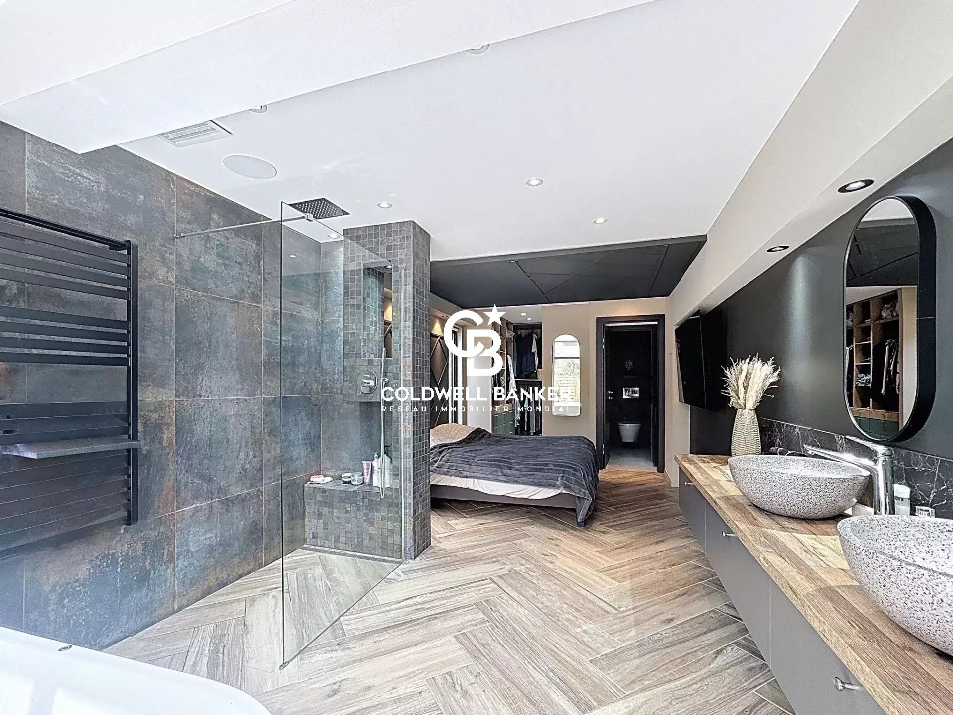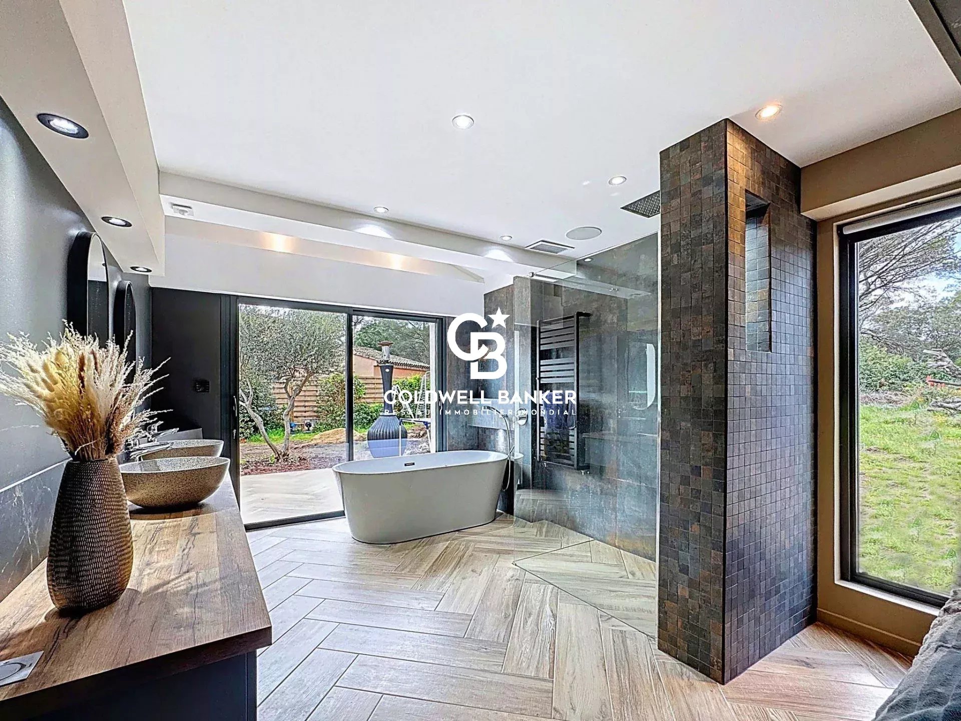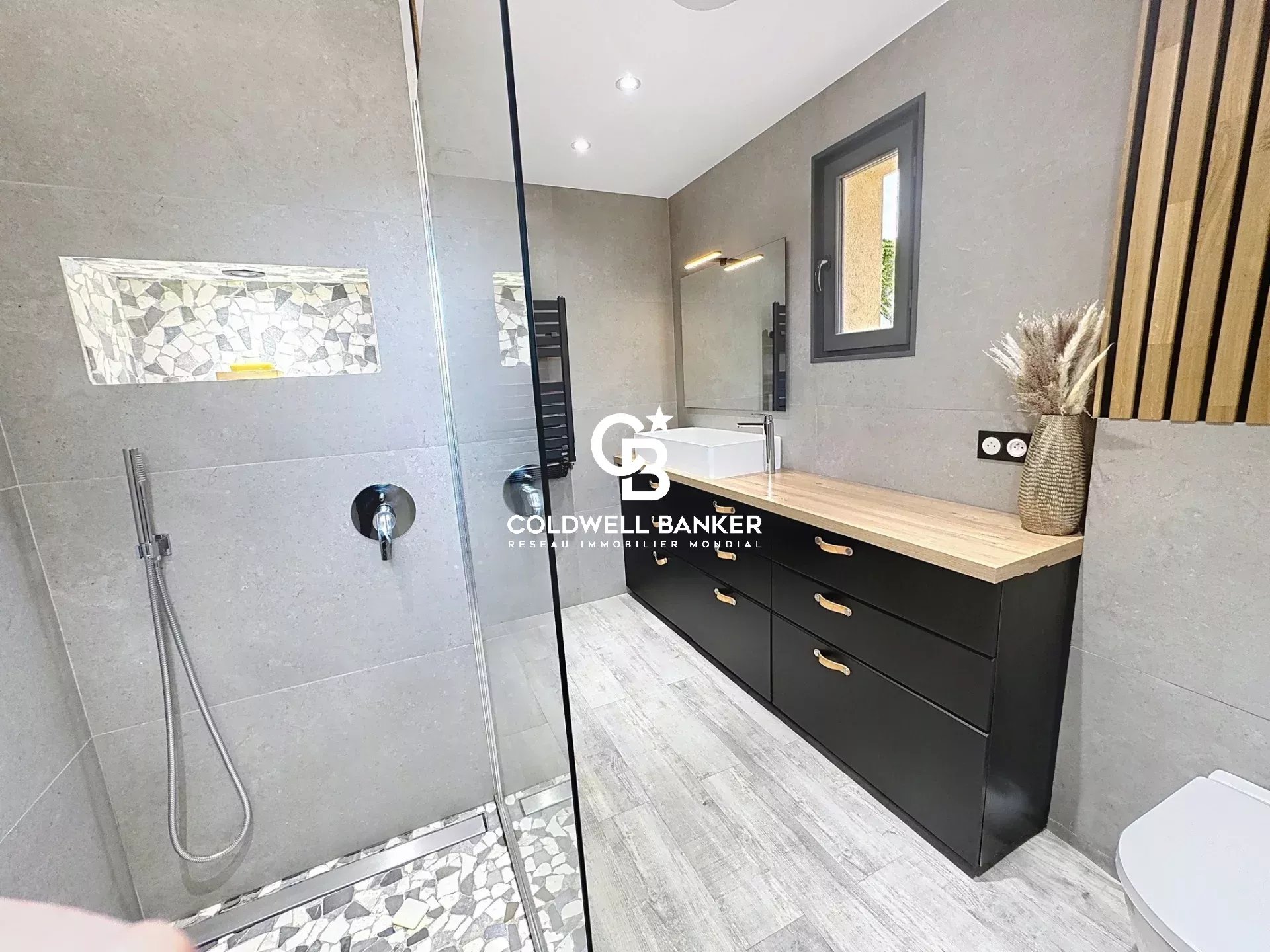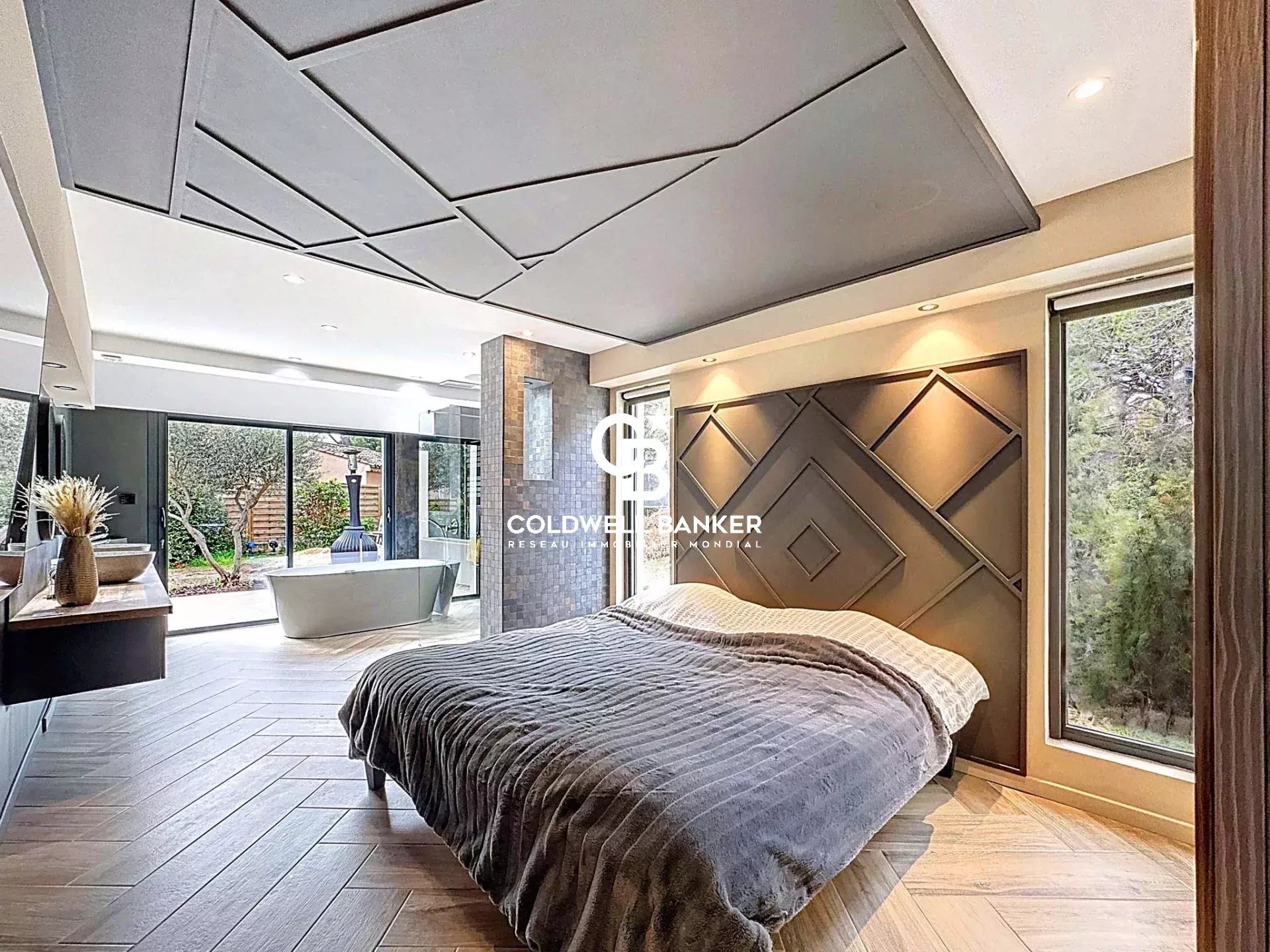 Questa elegante villa mediterranea di 160 m², con 4 camere da letto ed esposizione a sud, sorge su un terreno paesaggistico di 1.600 m². Un connubio raffinato di charme e modernità, con spazi generosi, fluidi e armoniosi, valorizzati da tonalità rilassanti e sofisticate. Fin dall’ingresso, l’atmosfera è chiara: eleganza e dolcezza si fondono in un contesto in cui ogni dettaglio è stato progettato con cura. La cucina open space firmata LUX NOBILA coniuga estetica e funzionalità: cassetti in vetro, illuminazione LED, doppi frigoriferi e cappa silenziosa con motore remoto, il tutto in un design moderno e minimalista Gli spazi aperti si estendono verso la zona pranzo con pavimentazione XXL e un ampio soggiorno dalle linee pulite, con soffitti alti e travi a vista. Le grandi vetrate scorrevoli a scomparsa garantiscono una perfetta continuità tra interni, giardino e area piscina. L’area notte al piano giardino offre un’equilibrata combinazione di intimità e comfort, con due camere da letto, tra cui una magnifica master suite con bagno e cabina armadio, oltre a una camera per ospiti con bagno privato e armadiature su misura. Al piano superiore si trovano due ulteriori camere spaziose — una con terrazza “tropezienne” — che condividono un bagno moderno e funzionale. All’esterno, il giardino mediterraneo ospita una piscina riscaldata di 10x5 m rivestita con pregiato mosaico Bali, affiancata da una terrazza di 20 m² e un ampio solarium. Un’area lounge estiva, riservata e protetta da sguardi esterni, offre oltre 100 m² di terrazze, con cucina estiva attrezzata alimentata da pannelli solari. Da sottolineare la presenza di una riserva edificabile di circa 160 m², ideale per accogliere un ulteriore spazio abitativo indipendente di pregio. Questa villa riflette un autentico art de vivre mediterraneo: un equilibrio perfetto tra estetica, comfort e modernità. Un rifugio esclusivo che celebra l’eleganza e la dolcezza di vivere sul Mediterraneo. Finiture ed equipaggiamenti di pregio: • Pavimenti moderni: grandi lastre ceramiche (70x70) nelle zone giorno, posa a spina di pesce nelle camere • Soffitti strutturati per un tocco di raffinatezza • Domotica KNX di ultima generazione: gestione da remoto di climatizzazione, luci, allarmi e chiusure • Sicurezza e comfort: sistema di allarme AJAX, diffusori esterni, doppi vetri in legno/alluminio • Climatizzazione canalizzata indipendente, boiler termodinamico • Porte scorrevoli a scomparsa, zanzariere • Dotazioni esterne: contatore verde per irrigazione, impianto audio esterno • Doppio accesso alla proprietà. Per una brochure di presentazione completa: 📩 williams.aureille@coldwellbanker.fr 📞 +33 (0) 682 822 539
