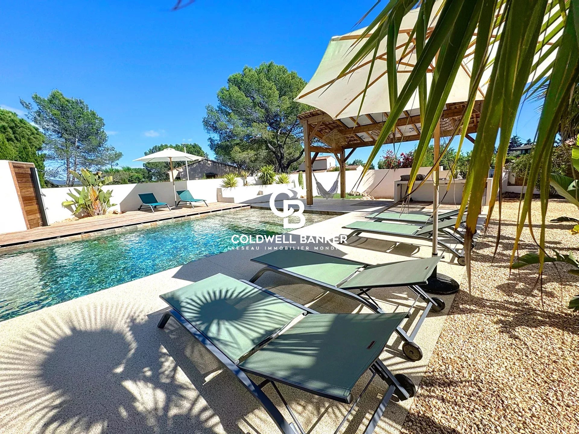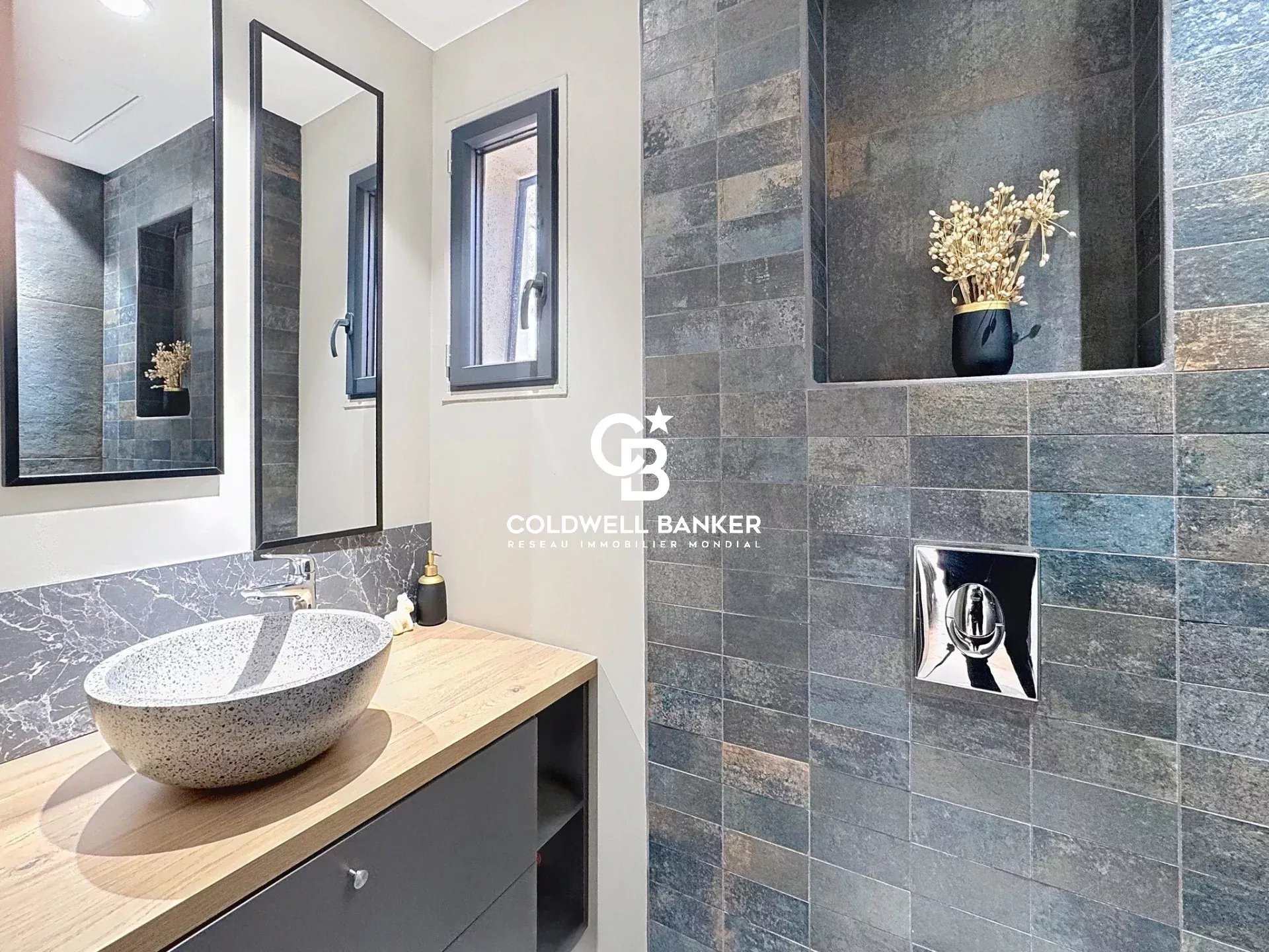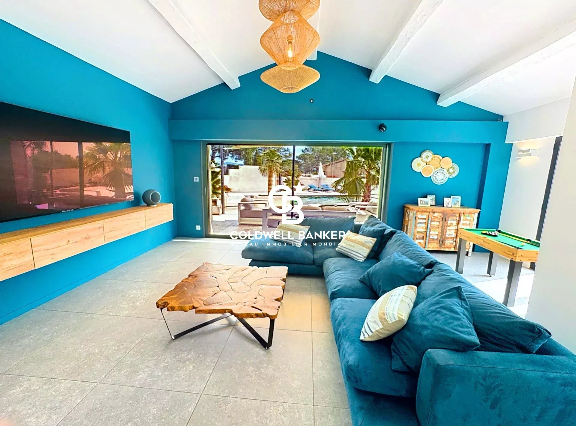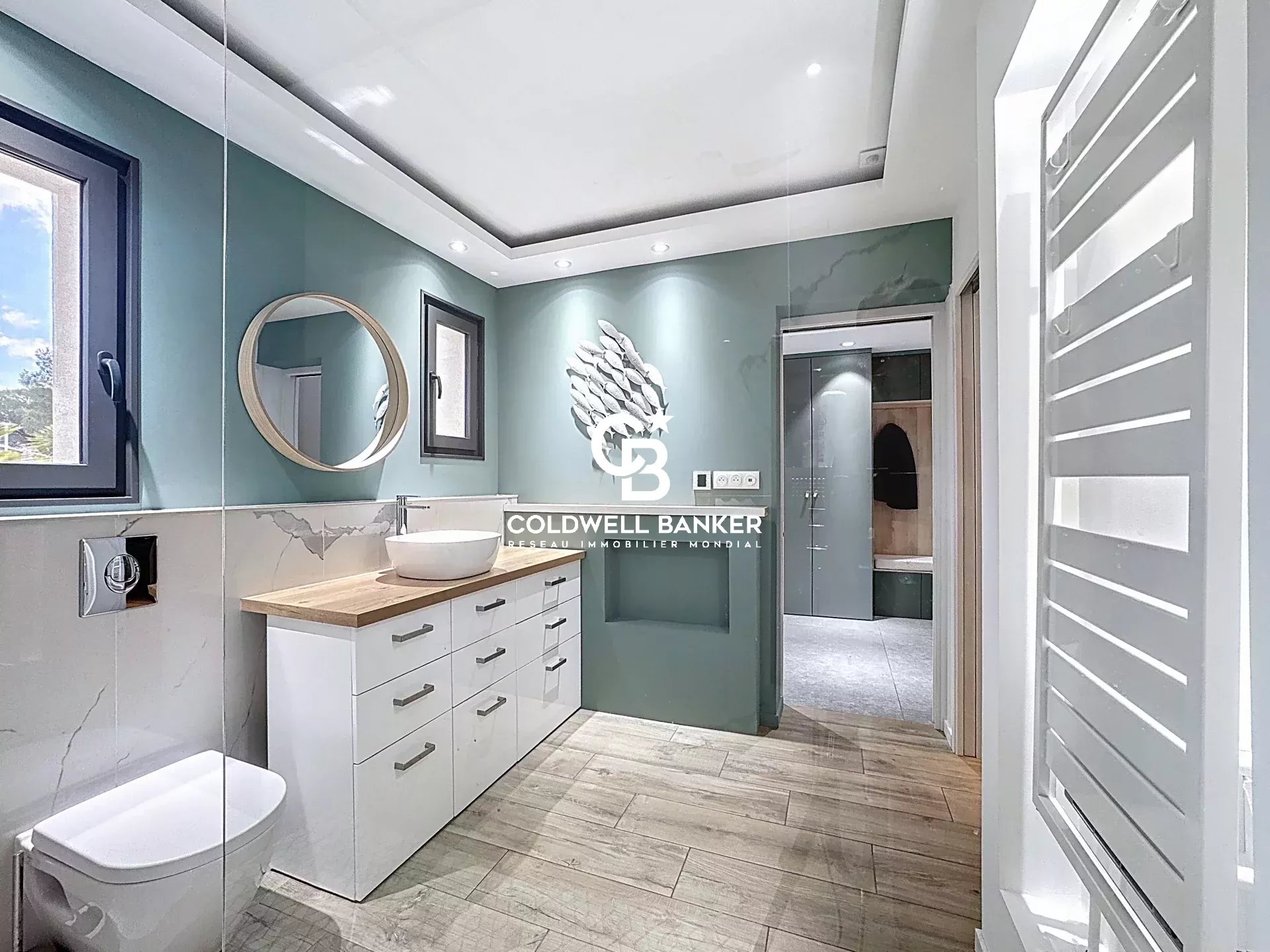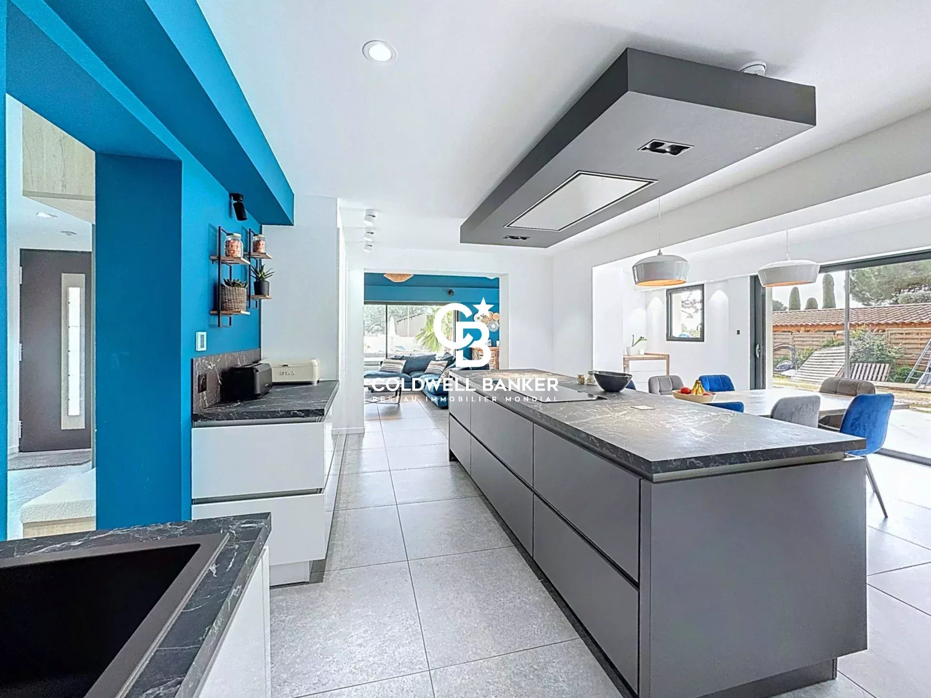 Questa elegante villa mediterranea di 160 m², con 4 camere da letto ed esposizione a sud, sorge su un terreno paesaggistico di 1.600 m². Un connubio raffinato di charme e modernità, con spazi generosi, fluidi e armoniosi, valorizzati da tonalità rilassanti e sofisticate. Fin dall’ingresso, l’atmosfera è chiara: eleganza e dolcezza si fondono in un contesto in cui ogni dettaglio è stato progettato con cura. La cucina open space firmata LUX NOBILA coniuga estetica e funzionalità: cassetti in vetro, illuminazione LED, doppi frigoriferi e cappa silenziosa con motore remoto, il tutto in un design moderno e minimalista Gli spazi aperti si estendono verso la zona pranzo con pavimentazione XXL e un ampio soggiorno dalle linee pulite, con soffitti alti e travi a vista. Le grandi vetrate scorrevoli a scomparsa garantiscono una perfetta continuità tra interni, giardino e area piscina. L’area notte al piano giardino offre un’equilibrata combinazione di intimità e comfort, con due camere da letto, tra cui una magnifica master suite con bagno e cabina armadio, oltre a una camera per ospiti con bagno privato e armadiature su misura. Al piano superiore si trovano due ulteriori camere spaziose — una con terrazza “tropezienne” — che condividono un bagno moderno e funzionale. All’esterno, il giardino mediterraneo ospita una piscina riscaldata di 10x5 m rivestita con pregiato mosaico Bali, affiancata da una terrazza di 20 m² e un ampio solarium. Un’area lounge estiva, riservata e protetta da sguardi esterni, offre oltre 100 m² di terrazze, con cucina estiva attrezzata alimentata da pannelli solari. Da sottolineare la presenza di una riserva edificabile di circa 160 m², ideale per accogliere un ulteriore spazio abitativo indipendente di pregio. Questa villa riflette un autentico art de vivre mediterraneo: un equilibrio perfetto tra estetica, comfort e modernità. Un rifugio esclusivo che celebra l’eleganza e la dolcezza di vivere sul Mediterraneo. Finiture ed equipaggiamenti di pregio: • Pavimenti moderni: grandi lastre ceramiche (70x70) nelle zone giorno, posa a spina di pesce nelle camere • Soffitti strutturati per un tocco di raffinatezza • Domotica KNX di ultima generazione: gestione da remoto di climatizzazione, luci, allarmi e chiusure • Sicurezza e comfort: sistema di allarme AJAX, diffusori esterni, doppi vetri in legno/alluminio • Climatizzazione canalizzata indipendente, boiler termodinamico • Porte scorrevoli a scomparsa, zanzariere • Dotazioni esterne: contatore verde per irrigazione, impianto audio esterno • Doppio accesso alla proprietà. Per una brochure di presentazione completa: 📩 williams.aureille@coldwellbanker.fr 📞 +33 (0) 682 822 539