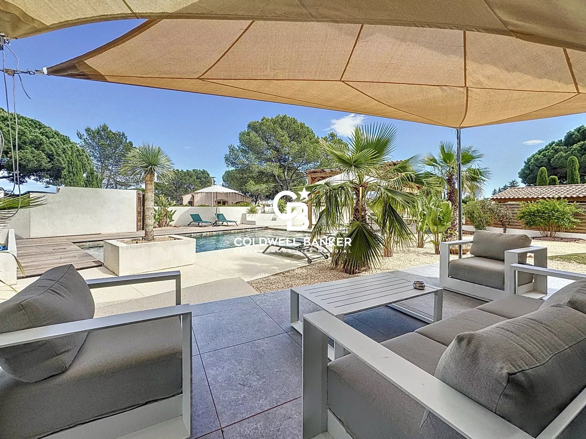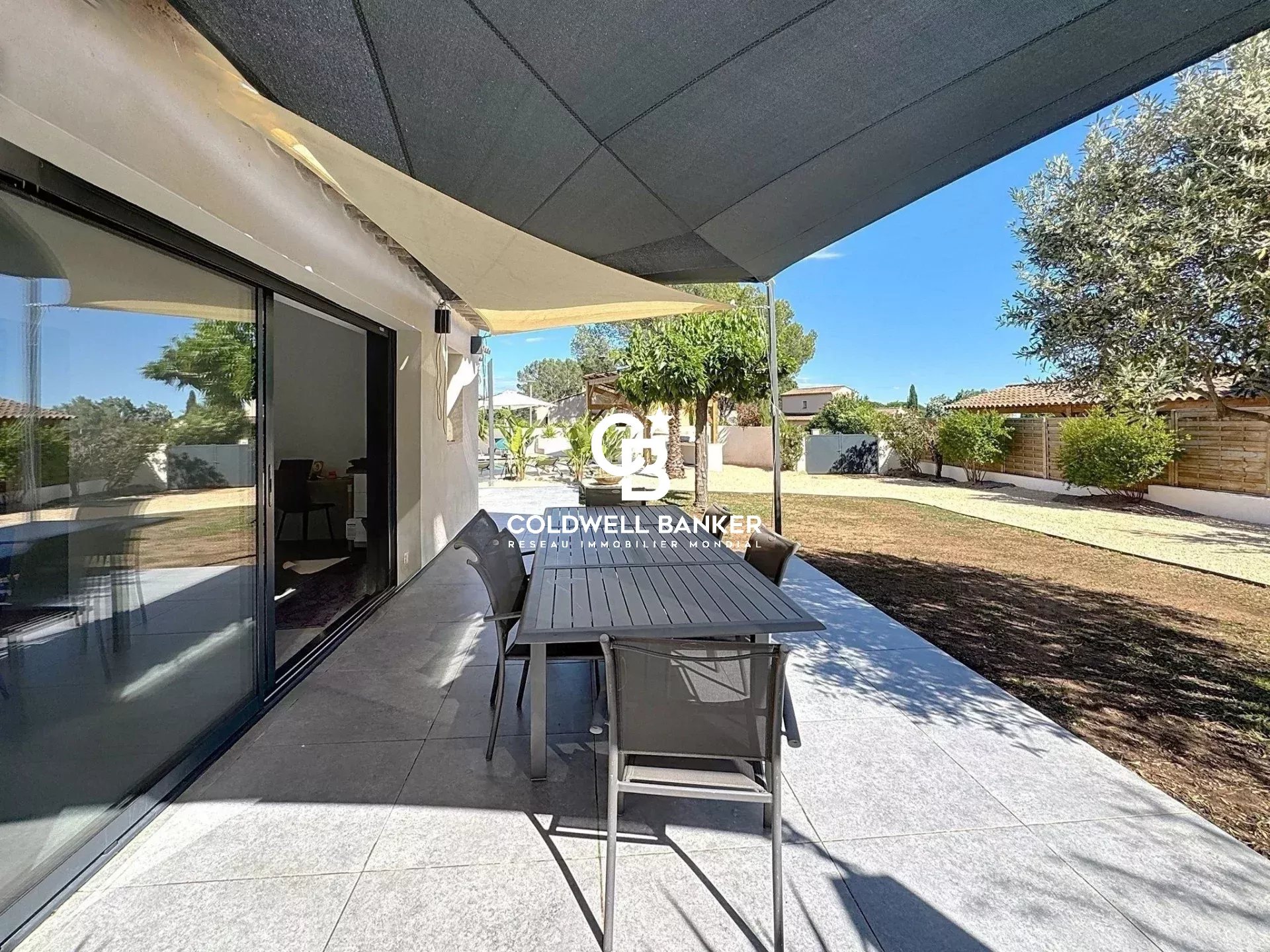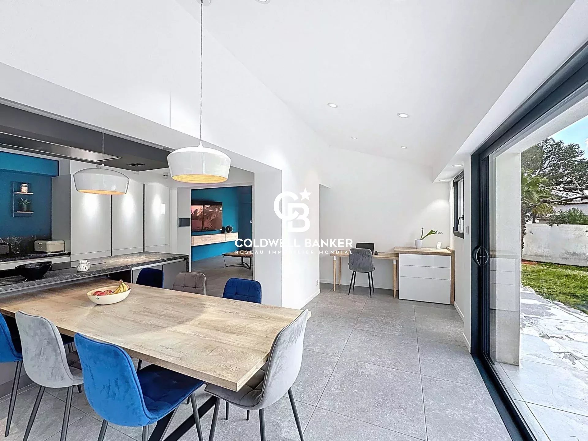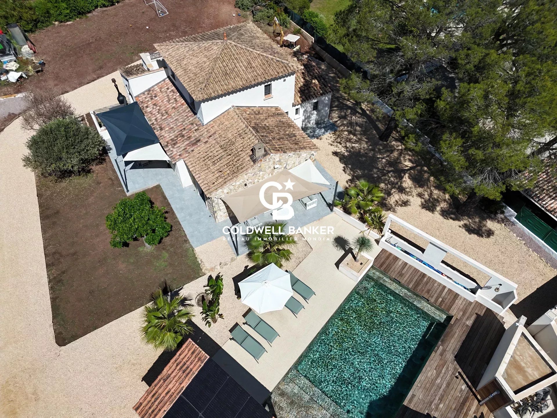 Questa elegante villa mediterranea di 160 m², con 4 camere da letto ed esposizione a sud, sorge su un terreno paesaggistico di 1.600 m². Un connubio raffinato di charme e modernità, con spazi generosi, fluidi e armoniosi, valorizzati da tonalità rilassanti e sofisticate. Fin dall’ingresso, l’atmosfera è chiara: eleganza e dolcezza si fondono in un contesto in cui ogni dettaglio è stato progettato con cura. La cucina open space firmata LUX NOBILA coniuga estetica e funzionalità: cassetti in vetro, illuminazione LED, doppi frigoriferi e cappa silenziosa con motore remoto, il tutto in un design moderno e minimalista Gli spazi aperti si estendono verso la zona pranzo con pavimentazione XXL e un ampio soggiorno dalle linee pulite, con soffitti alti e travi a vista. Le grandi vetrate scorrevoli a scomparsa garantiscono una perfetta continuità tra interni, giardino e area piscina. L’area notte al piano giardino offre un’equilibrata combinazione di intimità e comfort, con due camere da letto, tra cui una magnifica master suite con bagno e cabina armadio, oltre a una camera per ospiti con bagno privato e armadiature su misura. Al piano superiore si trovano due ulteriori camere spaziose — una con terrazza “tropezienne” — che condividono un bagno moderno e funzionale. All’esterno, il giardino mediterraneo ospita una piscina riscaldata di 10x5 m rivestita con pregiato mosaico Bali, affiancata da una terrazza di 20 m² e un ampio solarium. Un’area lounge estiva, riservata e protetta da sguardi esterni, offre oltre 100 m² di terrazze, con cucina estiva attrezzata alimentata da pannelli solari. Da sottolineare la presenza di una riserva edificabile di circa 160 m², ideale per accogliere un ulteriore spazio abitativo indipendente di pregio. Questa villa riflette un autentico art de vivre mediterraneo: un equilibrio perfetto tra estetica, comfort e modernità. Un rifugio esclusivo che celebra l’eleganza e la dolcezza di vivere sul Mediterraneo. Finiture ed equipaggiamenti di pregio: • Pavimenti moderni: grandi lastre ceramiche (70x70) nelle zone giorno, posa a spina di pesce nelle camere • Soffitti strutturati per un tocco di raffinatezza • Domotica KNX di ultima generazione: gestione da remoto di climatizzazione, luci, allarmi e chiusure • Sicurezza e comfort: sistema di allarme AJAX, diffusori esterni, doppi vetri in legno/alluminio • Climatizzazione canalizzata indipendente, boiler termodinamico • Porte scorrevoli a scomparsa, zanzariere • Dotazioni esterne: contatore verde per irrigazione, impianto audio esterno • Doppio accesso alla proprietà. Per una brochure di presentazione completa: 📩 williams.aureille@coldwellbanker.fr 📞 +33 (0) 682 822 539