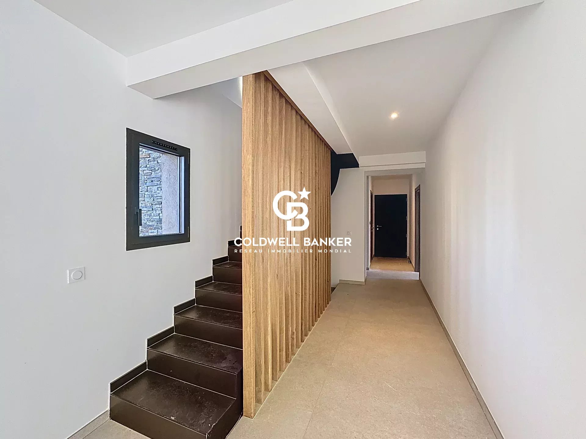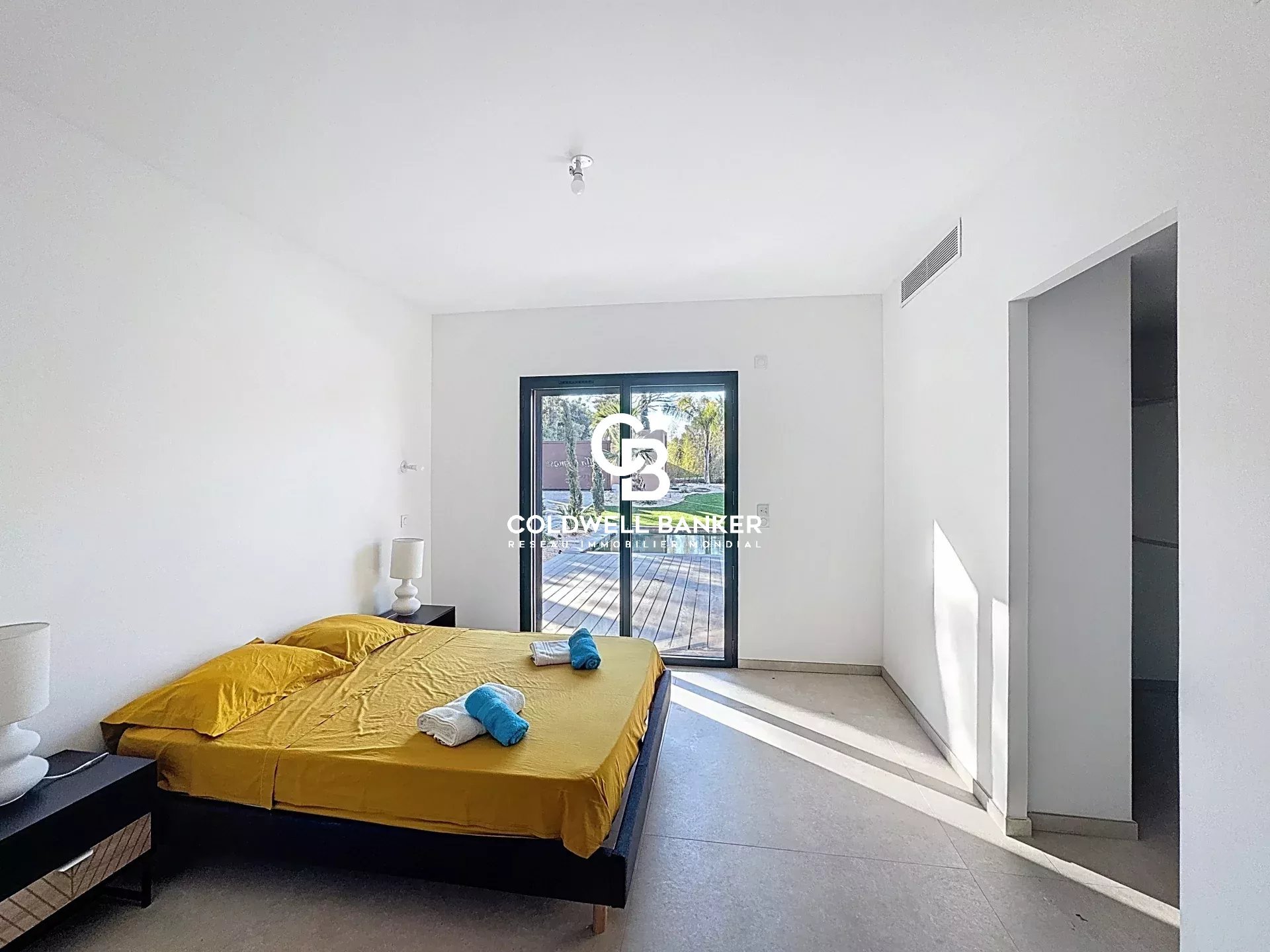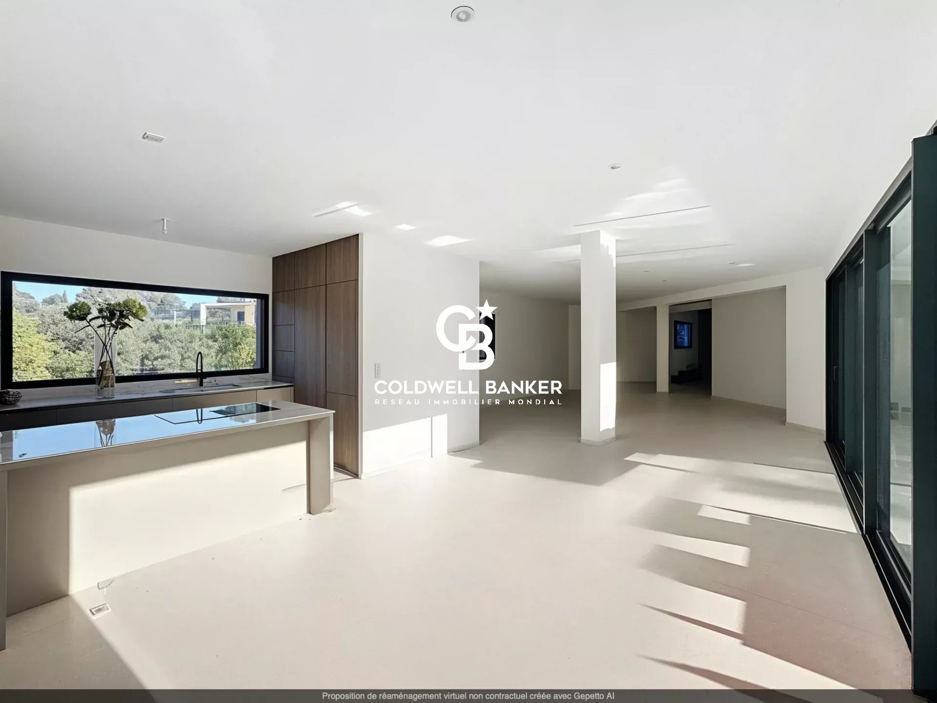 Coldwell Banker Esterel Realty vous propose à la vente cette magnifique maison neuve de 287m2 dans le quartier prestigieux de Boulouris. Située à quelques pas des commerces et des plages elle se compose d'un vaste espace de vie de 90m2, avec salon lumineux et cuisine américaine. Le coin nuit comprend 5 suites avec chacune sa salle d'eau et son dressing, dont une de plain-pied. Le bien bénéficie d'une surface totale qui inclut un sous-sol aménageable avec salle de sport et sauna. Coté extérieur vous disposerez d'un jardin paysager de 1266m2 avec une belle piscine en pierre de Bali, ainsi qu'un garage pour plusieurs véhicules.
