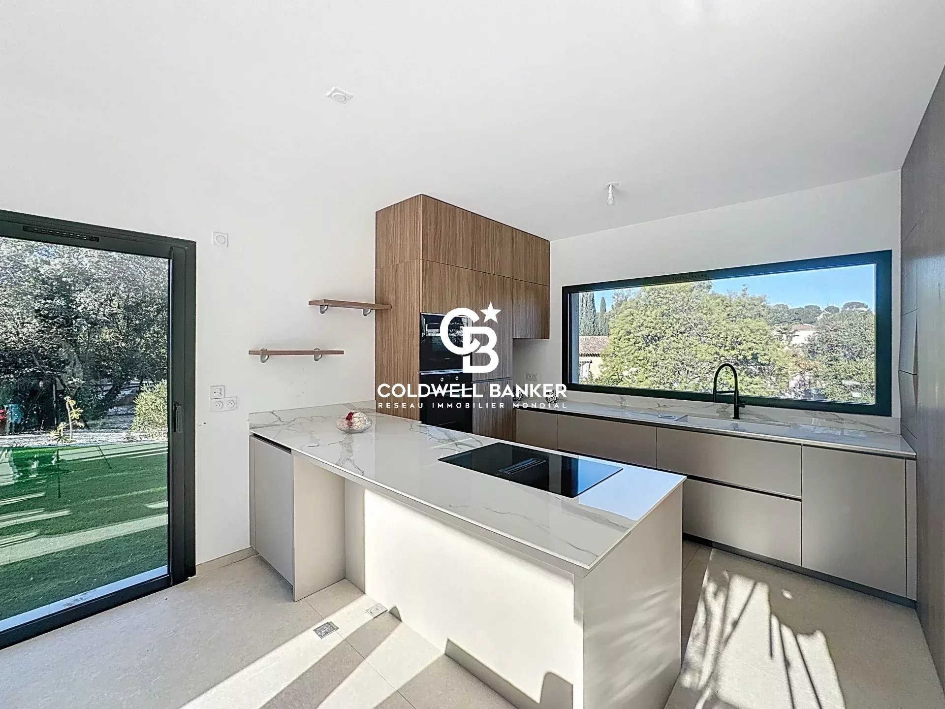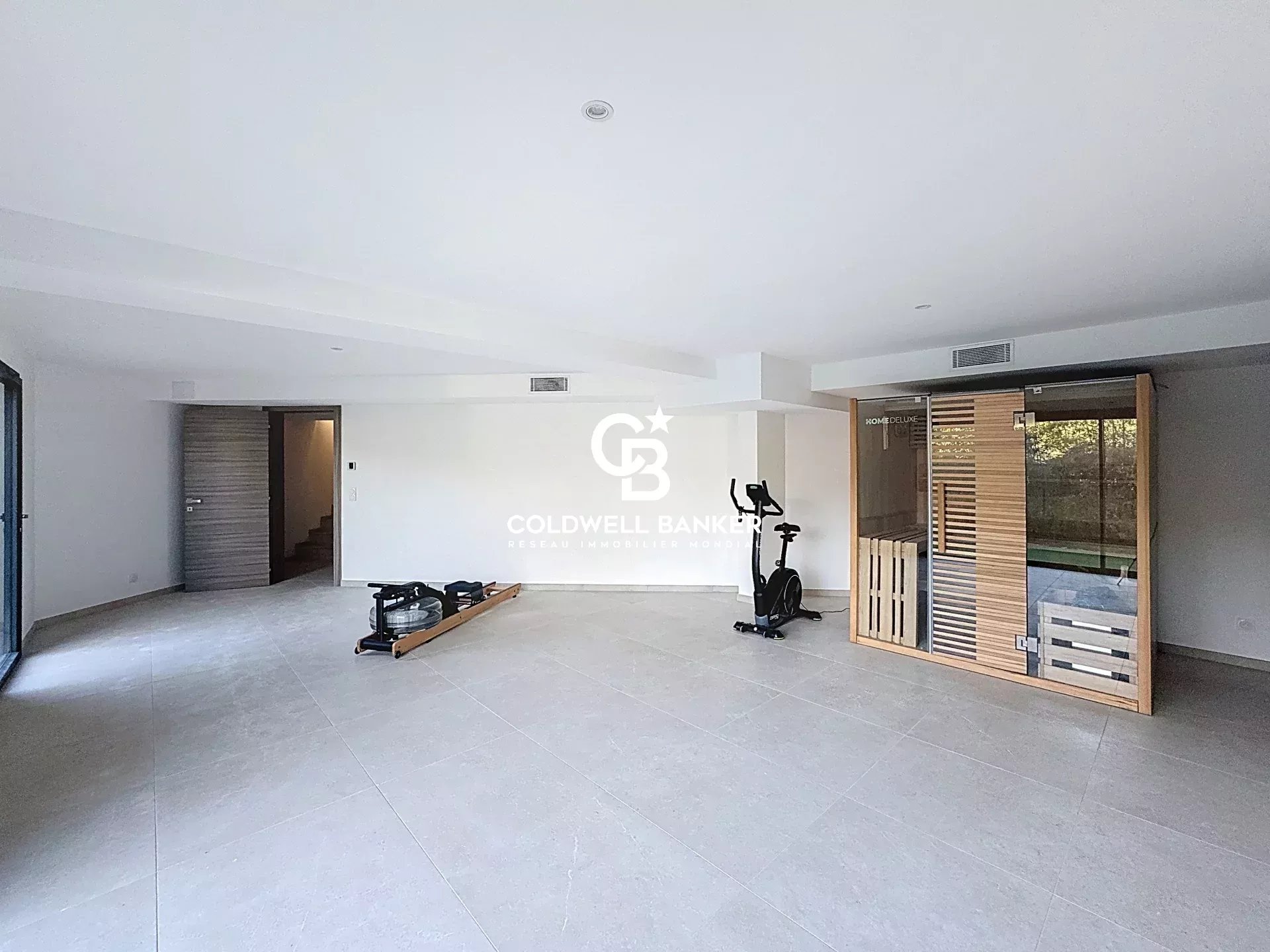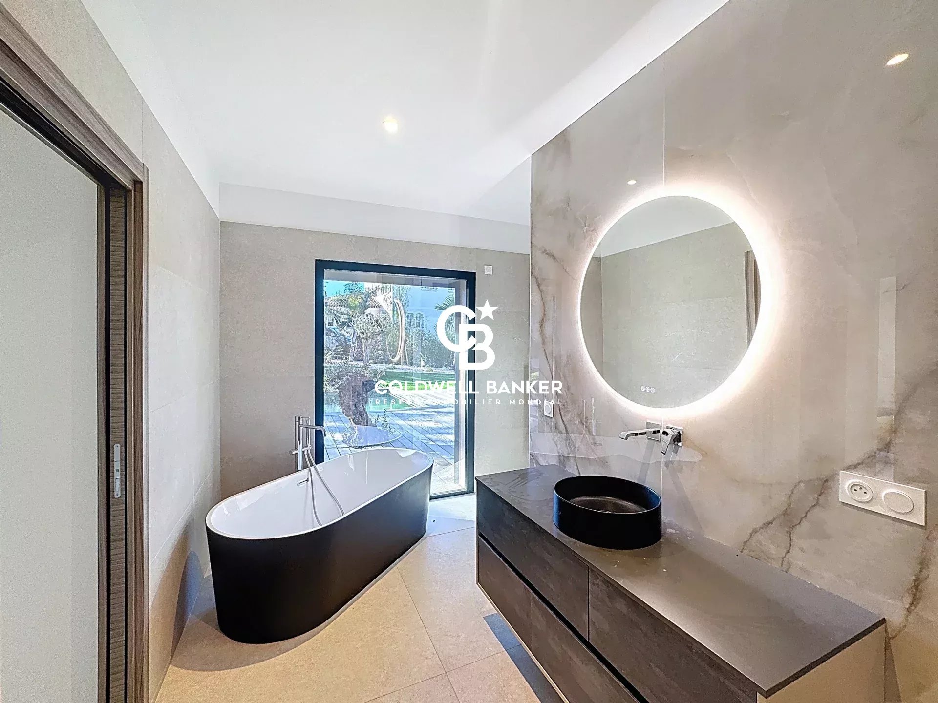 Coldwell Banker Esterel Realty vous propose à la vente cette magnifique maison neuve de 287m2 dans le quartier prestigieux de Boulouris. Située à quelques pas des commerces et des plages elle se compose d'un vaste espace de vie de 90m2, avec salon lumineux et cuisine américaine. Le coin nuit comprend 5 suites avec chacune sa salle d'eau et son dressing, dont une de plain-pied. Le bien bénéficie d'une surface totale qui inclut un sous-sol aménageable avec salle de sport et sauna. Coté extérieur vous disposerez d'un jardin paysager de 1266m2 avec une belle piscine en pierre de Bali, ainsi qu'un garage pour plusieurs véhicules.