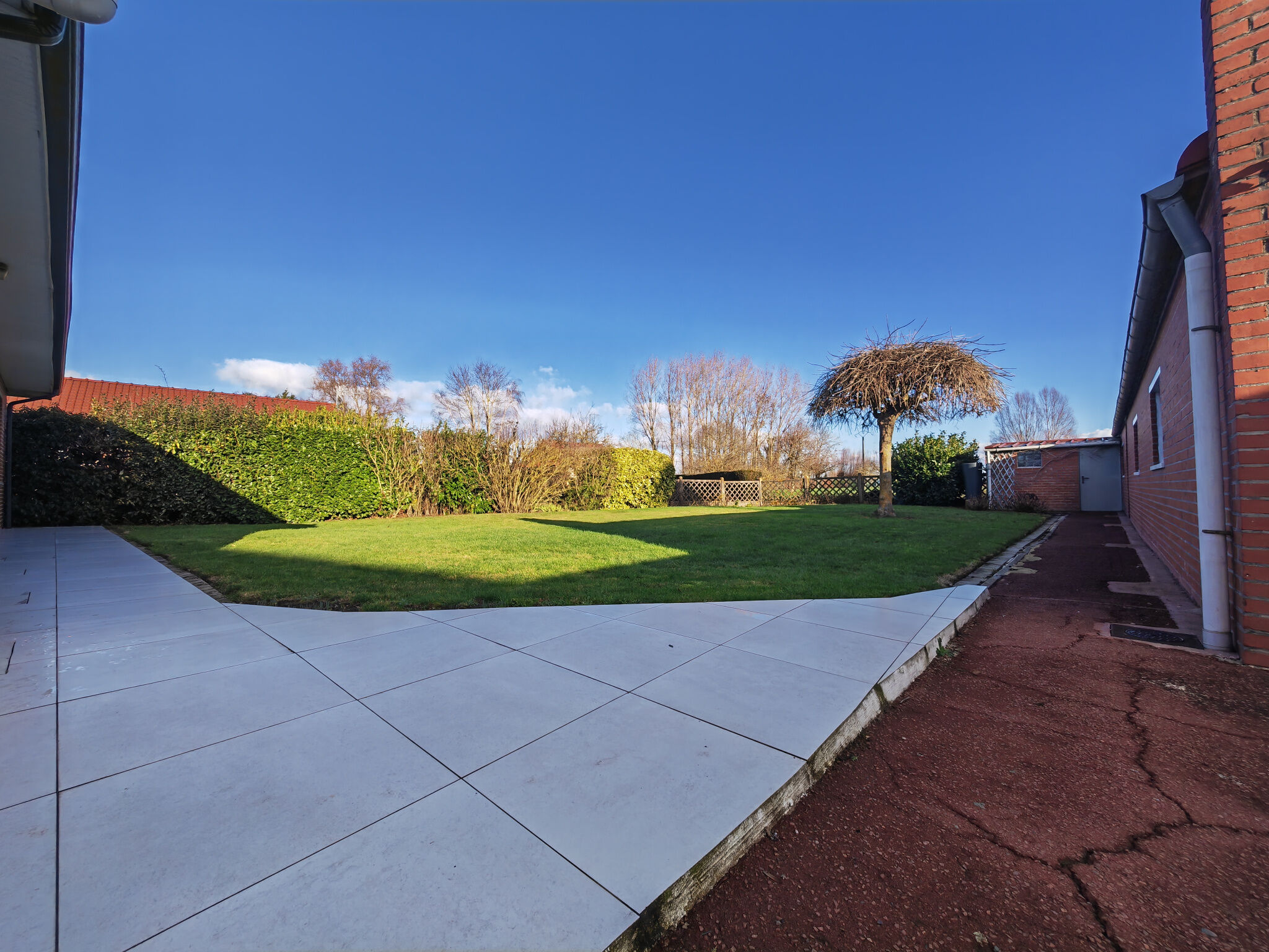 Pavillon individuel de plain-pied Secteur Lestrem La FosseSitué dans un environnement calme et agréable, sur le secteur de Lestrem (62136) venez découvrir ce pavillon individuel de plain-pied des années 70, développant environ 75 m² habitables.La maison se compose d'un salon-séjour lumineux, d'une cuisine indépendante, de deux chambres, d'un bureau idéal pour le télétravail ou une chambre d'appoint, ainsi que d'une salle de bains et de WC séparés.Côté équipements, vous profiterez de menuiseries en double vitrage, de volets roulants électriques récents, d'un portail motorisé et d'un garage permettant le stationnement de deux véhicules.L'ensemble est édifié sur un terrain entièrement clos, offrant de belles possibilités pour les amateurs de jardin, d'espaces extérieurs ou de futurs aménagements.Maison saine et bien entretenue, classée D au diagnostic de performance énergétique, idéale pour un premier achat ou pour toute personne recherchant le confort du plain-pied dans un secteur paisible.Taxe foncière 509 eurosPour plus d'informations contactez l'agence LC IMMOBILIER de Béthune.Informations LOI ALUR : Honoraires : 5 % TTC charge acquéreur.Prix hors honoraires : 230 000 ¤. (gedeon_90769_32395968)