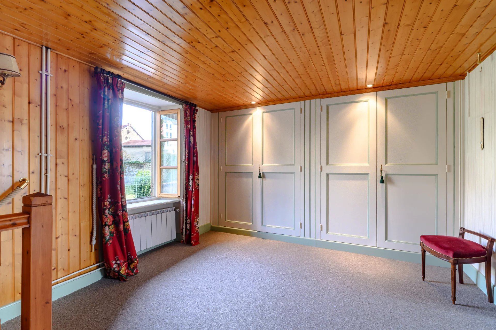 Un grand palier desservant quatre belles chambres et une salle de douche.