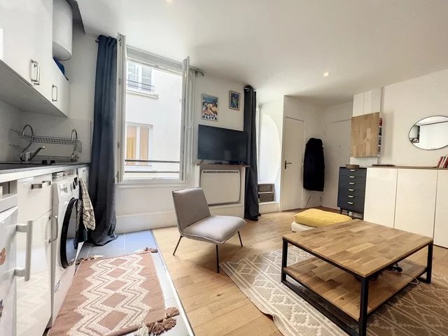 Paris XIIe - Rue Crozatier Dans un bel immeuble ancien sécurisé, nous vous proposons ce très beau studio refait a neuf et meublé avec beaucoup de gout. Il se compose d'un grande pièce principale avec de nombreux rangements sur mesure et canapé lit, une cuisine ouverte équipée d'un frigo congélateur, un lave linge/sèche linge et plaque de cuisson, ainsi qu'une salle d'eau avec wc. L'appartement donne sur cour, il est très calme et lumineux.
