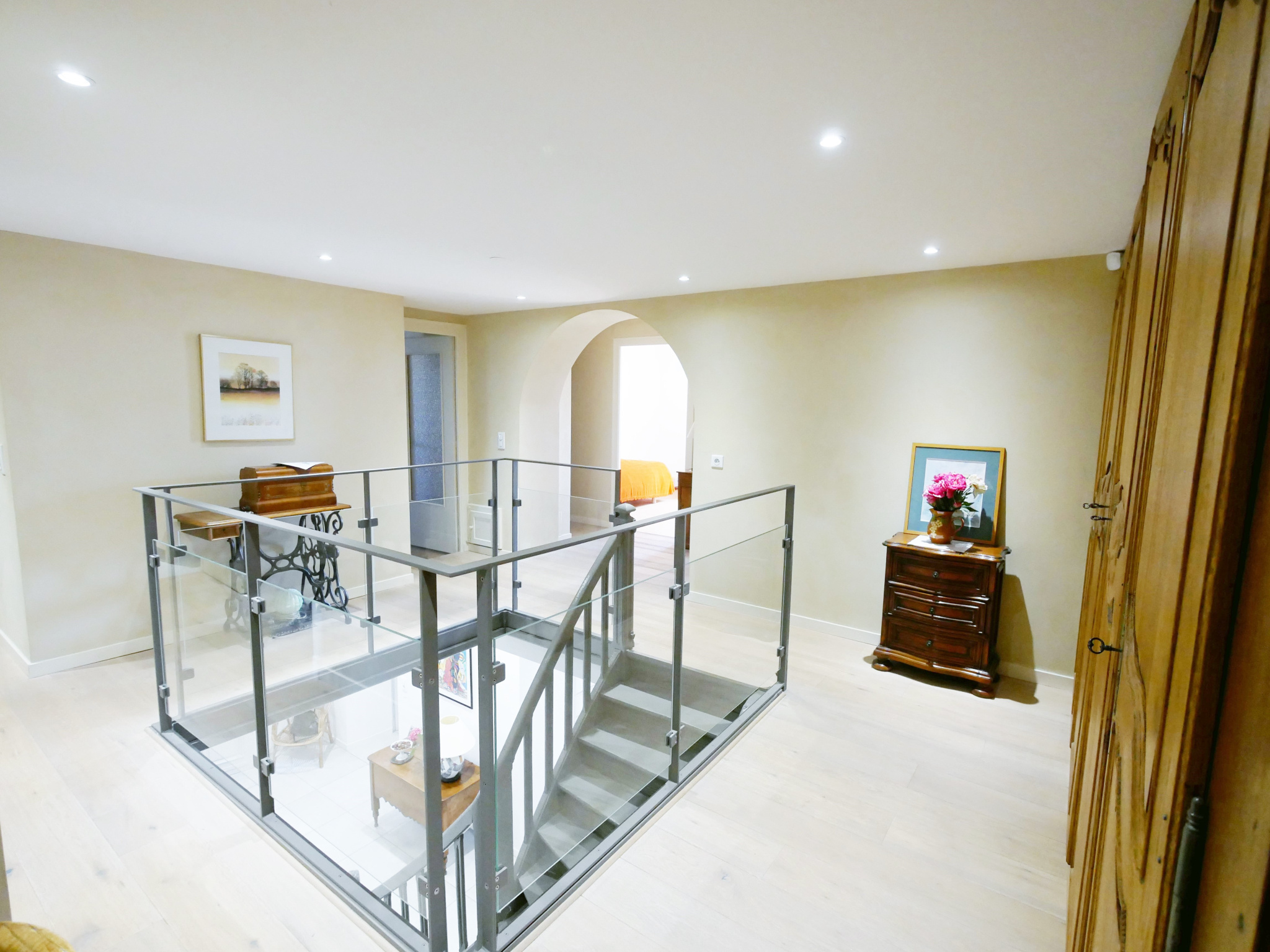 Situé au col d'Evires sur la commune d'Eteaux, entre Annecy et la Roche sur Foron et à quelques minutes de Genève, ce corps de ferme entièrement refait dans les règles de l'art avec des prestations haut de gamme est composé de plusieurs bâtiments sur une grande parcelle de plus de 2 850 m2. La bâtisse principale de plus de 210 m2 se compose d'un hall d'entrée qui dessert une cuisine familiale qui s'ouvre sur un vaste jardin, une salle à manger qui donne également sur un espace salon avec cheminée parfait pour des moments conviviaux - Un wc séparé, une salle d'eau et une chambre-atelier avec chaufferie (double chaudière bois et fioul) et cave à vins forment le rez de chaussée Au deuxième étage, 6 chambres agréablement réparties avec une salle d'eau et un WC séparé permettront à chacun d'avoir son intimité - les combles sont aménageables si vous avez encore besoin d'espace. Vous découvrirez dans la continuité de cette bâtisse un atelier et un garage avec en partie haute, deux grandes granges pouvant être également aménagées - Que vous soyez en quête de votre maison familiale ou pour des familles recomposées ou pour développer votre profession artistique ou non, vous serez au bon endroit. Absolument à voir ! Le second bâtiment indépendant d'environ 120 m2 renferme un atelier-garage avec à l'étage un plateau à aménager d'environ 70 m2 et enfin un terrain peut être divisé pour accueillir une nouvelle construction.