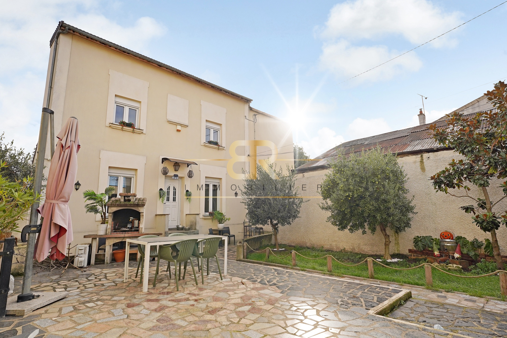 Découvrez cette maison familiale des années 40, entièrement rénovée il y a une quinzaine d'années, située dans un secteur calme à proximité immédiate du terminus de la ligne 7 et de toutes les commodités.( moins de 5 minutes à pied ) Édifiée sur une parcelle de 278 m2, elle bénéficie d'une exposition plein ouest, d'une façade rénovée, d'un jardin en pleine terre avec oliviers, magnolia, et d'un espace terrasse aménagé pour les repas d'extérieur (barbecue, grillades, coin détente). Un box fermé de 16 m2 en façade complète ce bien. Disposition intérieure : Rez-de-chaussée : o Grand séjour lumineux ouvrant sur le jardin o Spacieuse arrière-cuisine indépendante avec îlot central et accès direct à la cour arrière o Salle d'eau + WC séparés o Escalier menant à l'étage et au sous-sol 1er étage : o Deux chambres en enfilade o Salle d'eau commune avec WC 2e étage : Grande suite parentale sous combles o Très vaste espace nuit o Baignoire, douche, WC o Nombreux rangements intégrés o Combles entièrement aménagés Sous-sol total (1,90 m de hauteur, fenêtres & chauffage) Espace totalement exploitable : o Salle de sport o Salle de jeux / atelier d'artiste o Grande buanderie avec chaufferie et rangements o Cave à vin o Possibilité d'y aménager d'autres pièces selon les besoins Points forts : o Maison très modulable o Beaucoup d'espaces annexes o Jardin plein ouest sans vis-à-vis o Terrasse aménagée o Box fermé o Environnement calme o Proche métro ligne 7, commerces et écoles Un bien familial, chaleureux et évolutif, idéal pour ceux qui recherchent de l'espace, un jardin et une vraie qualité de vie aux portes de Paris.