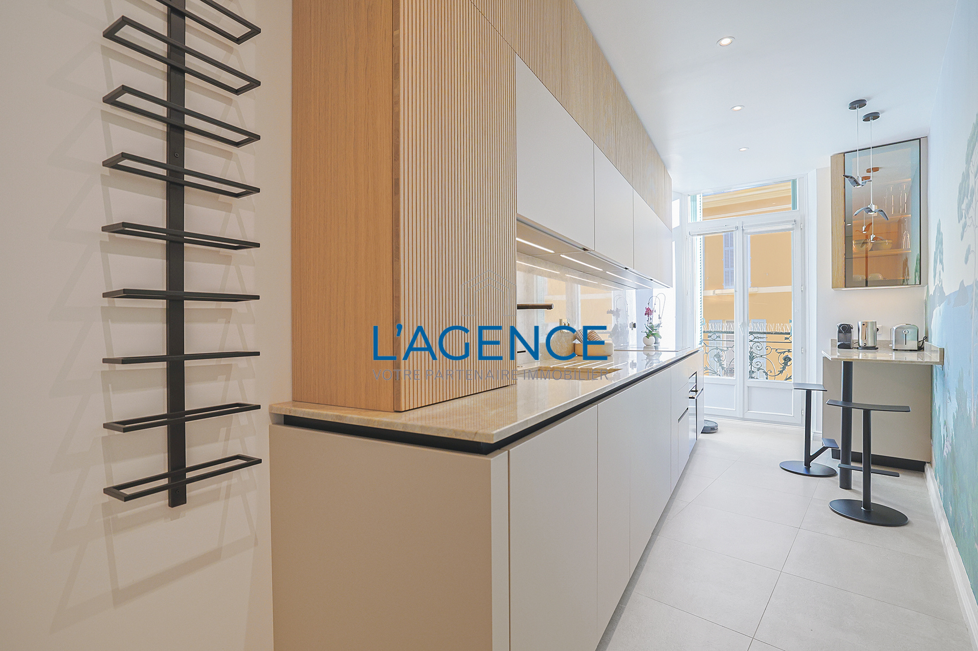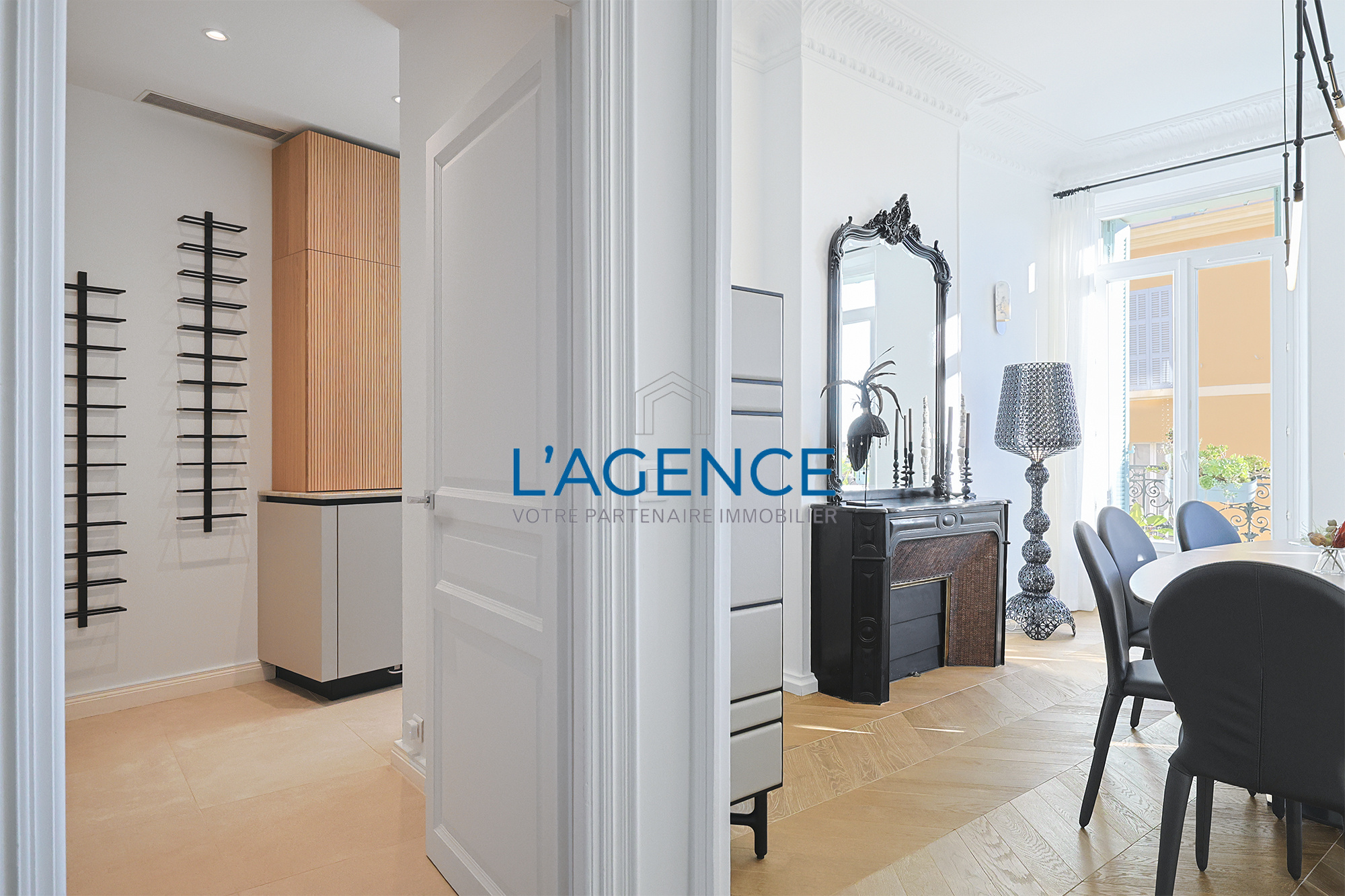 Hyères, en plein coeur de la zone piétonne, dans un immeuble hausmanien, entièrement rénové, un appartement T4 en étage disposant d'un ascenseur, comprenant : entrée, cuisine séparée, séjour double avec salle à manger, salle d'eau, wc separé, deux grandes chambres de 20m2 et 16m2. Entièrement renové avec de belles prestations tout en gardant le charme de l'ancien, double vitrage, climatisation gainée. Manifique prestation !!!