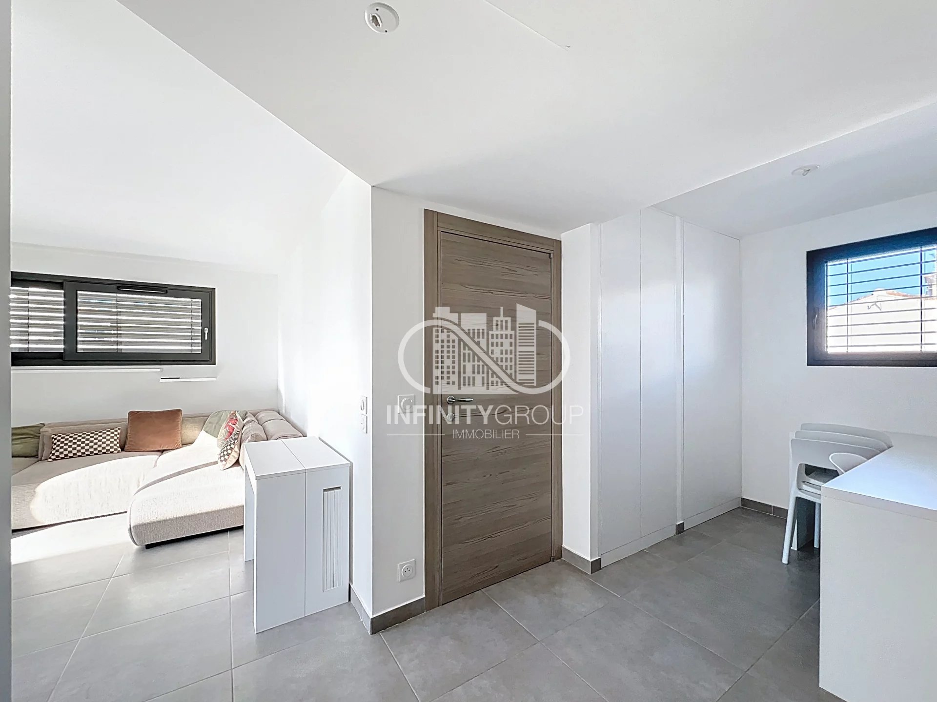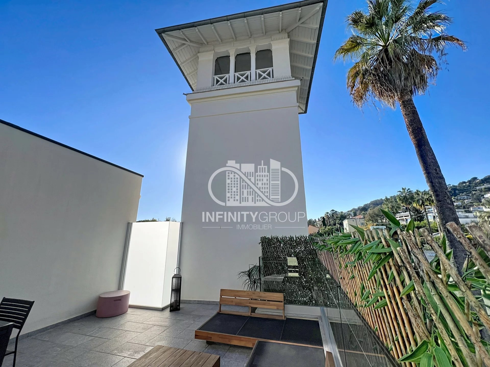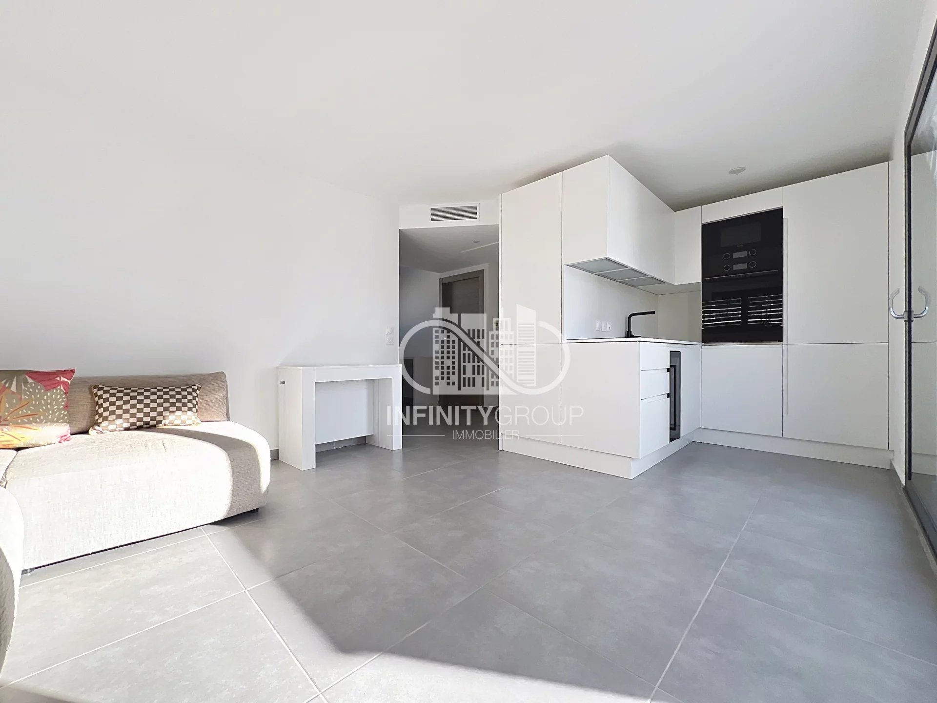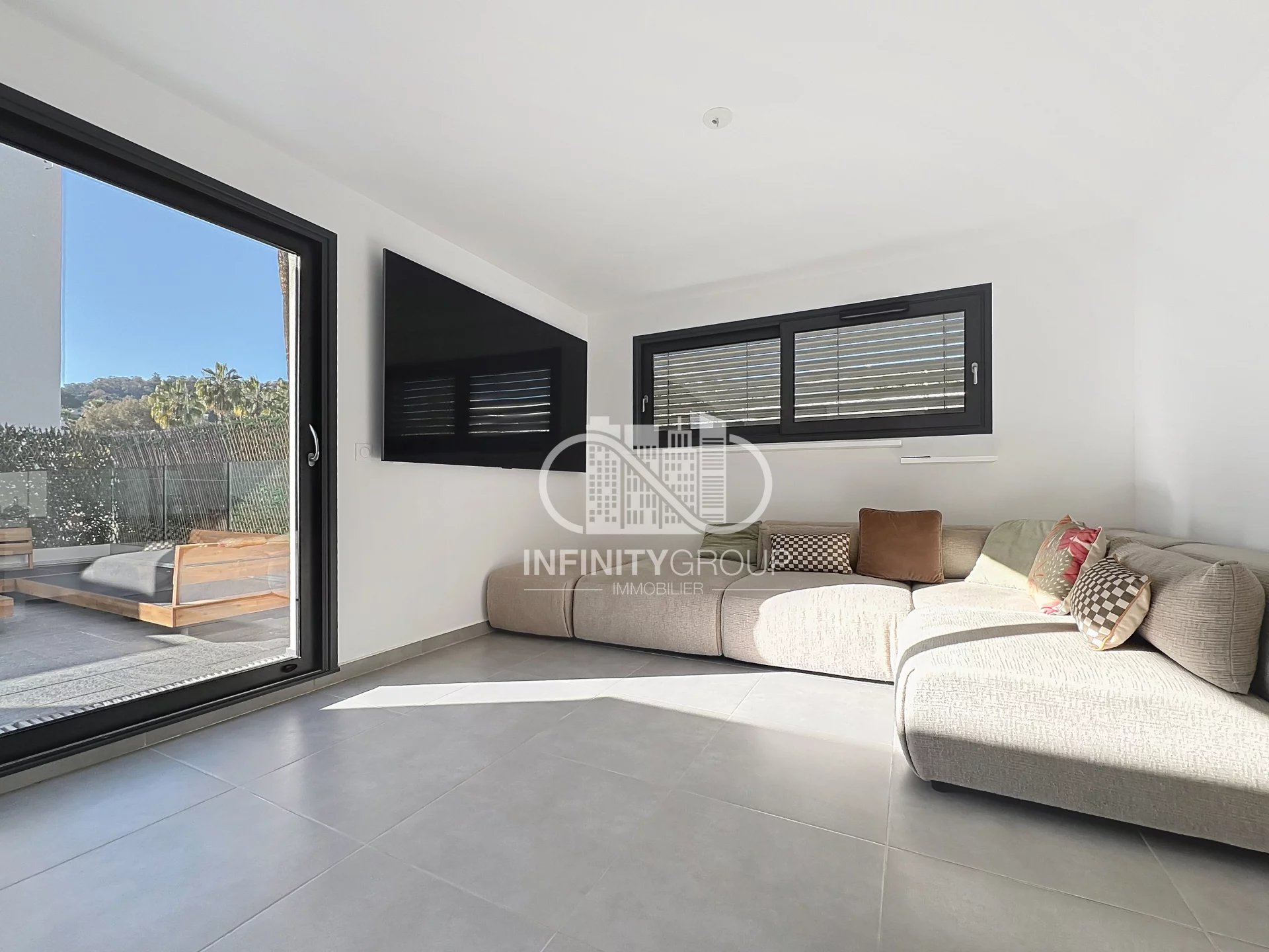 Dans une résidence récente de 2020, intimiste et parfaitement entretenue (seulement 12 lots), découvrez ce superbe T2 de standing avec terrasse à ciel ouvert, vendu entièrement meublé, situé au dernier étage. L’appartement séduit immédiatement par ses prestations premium, ses volumes optimisés et sa luminosité exceptionnelle grâce à une triple exposition. Il se compose d’un espace de vie contemporain intégrant une cuisine entièrement équipée, conçue avec des matériaux haut de gamme, qui se prolonge sur une magnifique terrasse à ciel ouvert de 22 m², idéale pour profiter pleinement des beaux jours. Une alcôve aménagée en bureau accueille un espace de travail confortable avec dressing intégré et bureau d’angle, offrant une solution aussi esthétique que fonctionnelle. La grande salle d’eau, moderne et raffinée, complète ce bien aux finitions haut de gamme. Ce bien offre des prestations premium telles que la climatisation réversible centralisée, un double vitrage dernière génération, une isolation phonique remarquable, des stores vénitiens extérieurs électriques, une porte d’entrée sécurisée 7 points, un ascenseur, deux visiophones… L’appartement respecte également les normes d’accessibilité PMR. 📍 Emplacement privilégié, à proximité immédiate des plages (80 mètres), commerces et transports, permettant un cadre de vie aussi pratique qu’exceptionnel. A 5 min de Cannes et 10 min de Juan les Pins. Un bien rare, clé en main, prêt à habiter, idéal en résidence principale, pied-à-terre de vacances ou investissement durable