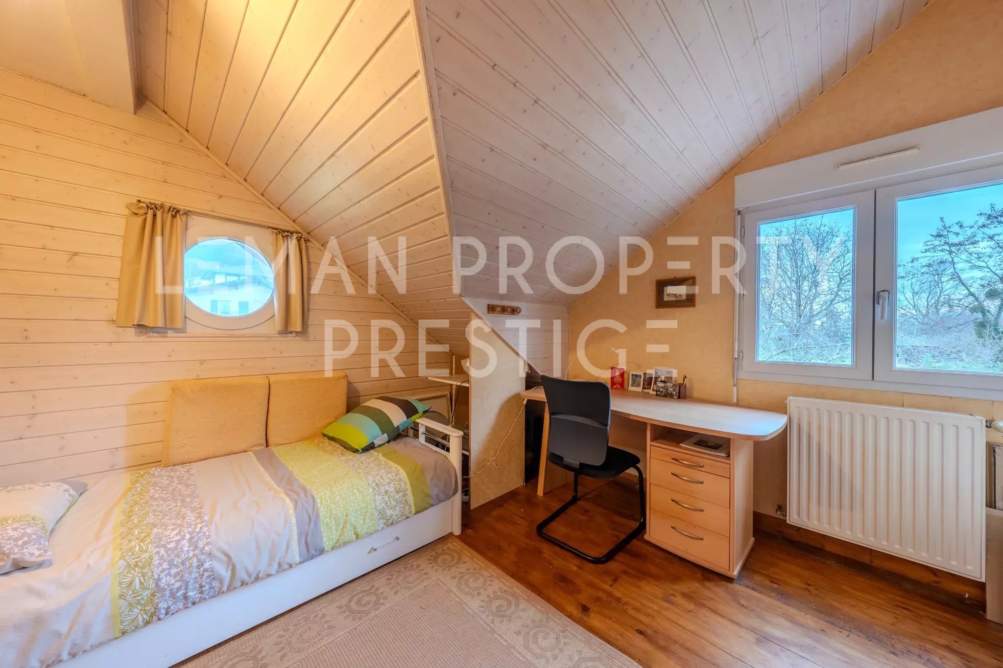 Au cœur du très prisé secteur de Méserier, cette propriété bénéficie d’un emplacement recherché, juste au-dessus du golf d’Évian, dans un environnement résidentiel, avec une vue sur le lac Léman. La maison offre une grande pièce de vie lumineuse, ouverte sur la cuisine, agréable au quotidien et facile à vivre. À l’étage, vous trouverez trois chambres, ainsi qu’un coin salon, idéal pour un espace détente ou bureau. Le bien dispose également d’un appartement T2 indépendant, parfait pour un revenu locatif, accueillir des proches ou créer un espace de vie séparé. À l’extérieur, profitez d’un jardin de 1 000 m², en bordure de zone agricole et sans vis-à-vis, permet de profiter pleinement du calme et de l’environnement. Un bien rare, conjuguant emplacement, élégance et confort, dans l’un des secteurs les plus convoités du bassin lémanique. DPE : F GES : E Les informations sur les risques auxquels ce bien est exposé sont disponibles sur georisques.gouv.fr. Honoraires à la charge du vendeur.