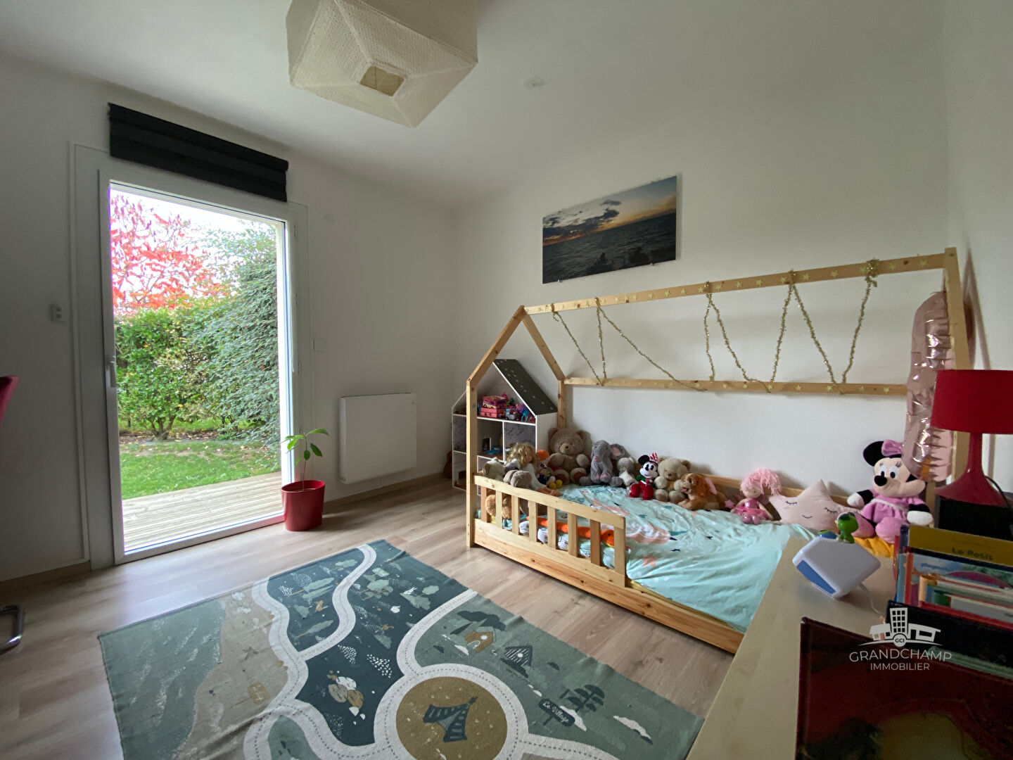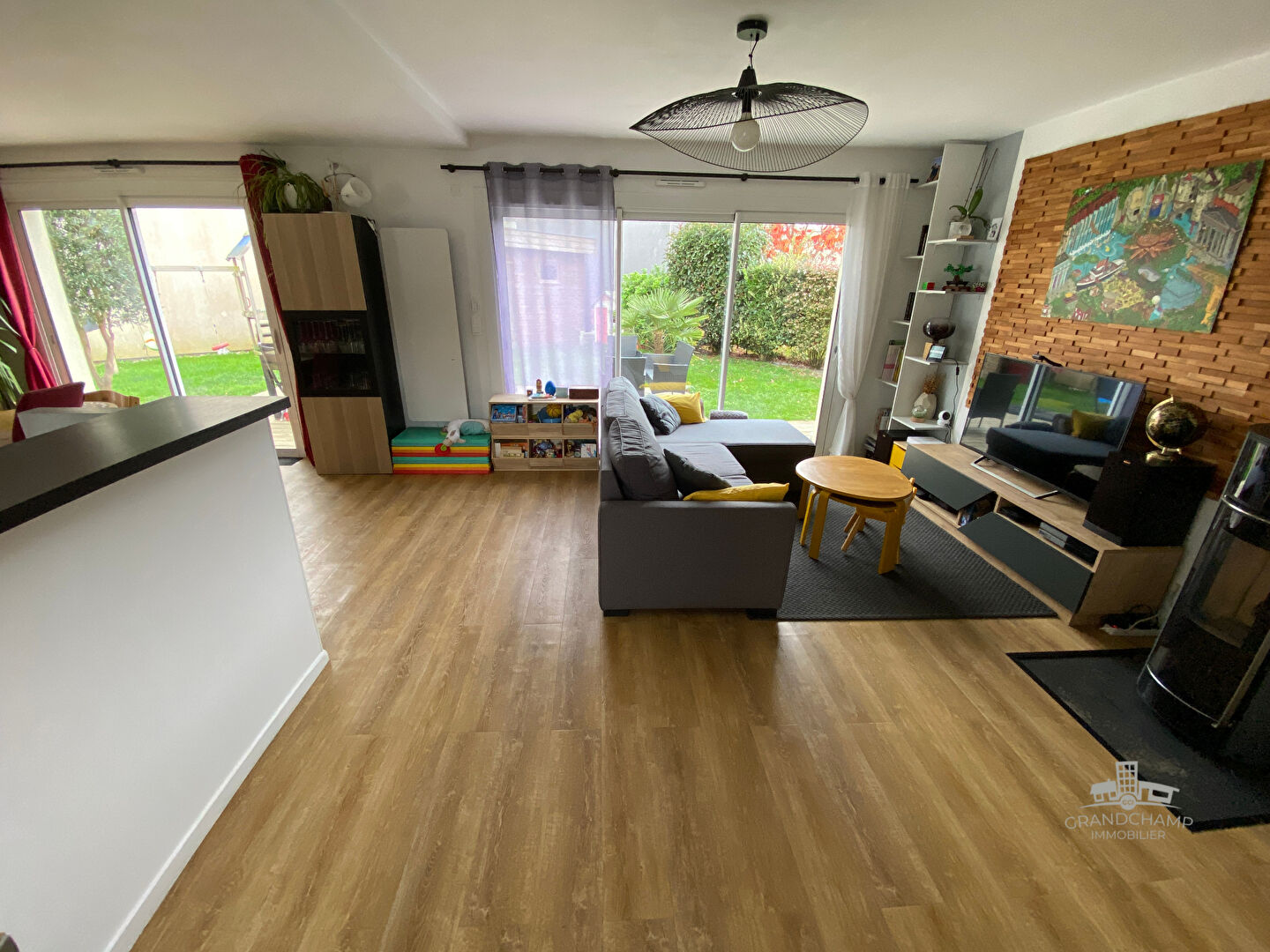 NOUVELLE EXCLUSIVITÉ ! Dans un environnement paisible et recherché de Grandchamp-des-Fontaines, découvrez cette impeccable contemporaine de 2012 de plus de 95 m² au sol qui réinvente l'art de vivre ensemble. Pensée pour conjuguer bien-être, nature et convivialité, elle s'inscrit dans un concept unique avec son beau jardin partagé prêt à l'emploi situé à l'entrée du petit lotissement de deux maisons. Laissez-vous séduire par cette maison chaleureuse et lumineuse offrant la possibilité d'une vie de plain-pied. L'entrée indépendante distribue une confortable et conviviale pièce de vie de plus de 38 m² composée d'un salon-salle à manger ouvert sur la cuisine et bénéficiant de deux grandes baies exposées au sud-ouest sur la jolie terrasse en bois et sans vis-à-vis. L'espace nuit du rez-de-chaussée se compose d'une chambre avec placard et d'une salle d'eau avec W.C. A l'étage, un dégagement mène à deux belles chambres lumineuses (13.71 m² et 12.30 m² au sol) équipées de rangements sur mesure. Vous y trouverez également une salle de bains ainsi qu'un WC indépendant. Ses plus : Sa note énergétique (DPE B) garantissant des charges d'électricité remarquablement faibles grâce à son excellente isolation, son poêle à pellets performant et sa production d'eau chaude par ballon thermodynamique. Son cabanon de jardin de 12 m² Son jardin privatif d'environ 300 m² Station de tram à 10 minutes en voiture Arrêt de bus scolaire à 50 mètres (3.87 % honoraires TTC à la charge de l'acquéreur.)