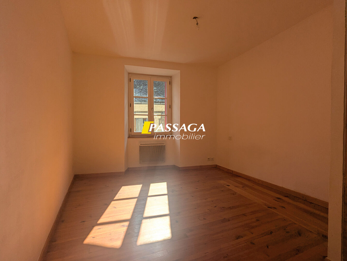 SAINT GENIEZ D'OLT : T3 lumineux et plein de charme avec ses poutres et ses parquets, comprenant hall d'entrée, séjour avec cuisine ouverte aménagée (meubles, hotte aspirante, plaque de cuisson gaz), 2 chambres, salle d'eau aménagée, WC individuel, Chauffage individuel électrique Annexe : 1 remise de 14 m²