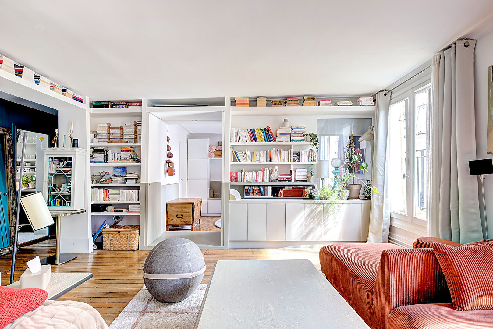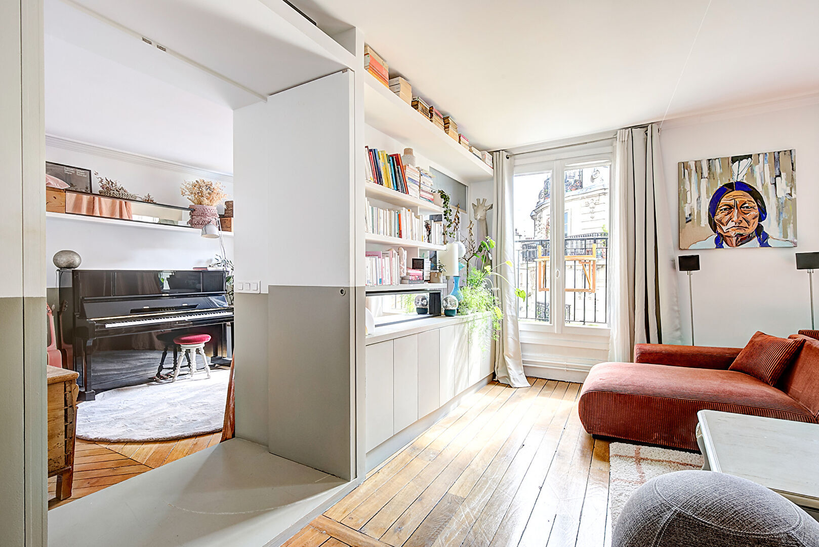 Situé au coeur du quartier emblématique des Abbesses, l'Agence des 3 Frères vous propose en exclusivité ce superbe appartement traversant Est-Ouest de 68 m² avec balcon, niché au 5e et dernier étage d'une copropriété bien entretenue avec gardien. Ce bien de charme se compose d'une entrée accueillante, d'un vaste séjour baigné de lumière ouvrant sur un balcon, de deux chambres : l'une donnant sur cour, l'autre sur le balcon, avec dressing et espace bureau astucieusement intégré, d'une cuisine conviviale entièrement aménagée, ainsi que d'une salle d'eau agréable éclairée par un puits de lumière. Des toilettes séparées et une cave en sous-sol complètent l'ensemble. Vous serez séduit par les volumes généreux, la qualité des prestations, les nombreux aménagements sur mesure, la luminosité à tout heure et le charme de l'ancien préservé avec soin : parquet en chêne, moulures, cheminée fonctionnelle et authentique poêle prussien. De plus le balcon de 6 m², ensoleillé et aménagé avec goût, invite à profiter pleinement de cet extérieur. Un emplacement idéal, au coeur de la vie montmartroise, à deux pas des commerces, des lieux culturels et des transports. (3.83 % honoraires TTC à la charge de l'acquéreur.) Copropriété de 70 lots - dont 52 lots habitation. (Pas de procédure en cours). Charges annuelles : 3060 euros.
