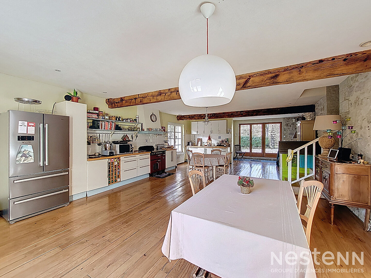 A la Vente Maison de neuf pièces et dépendance dans le village de Poudenas L'entrée s'ouvre sur un hall de 21 m² qui dessert une pièce de vie de 44 m², lumineuse et agréable, équipée d'un insert. Quelques marches conduisent à une cuisine aménagée et équipée de 62 m², pensée comme un espace de vie convivial et bénéficiant d'un accès direct vers l'extérieur. Ce niveau comprend également une chambre de 17 m² avec sa salle d'eau, une buanderie de 15 m² ainsi que des toilettes indépendantes. A l'étage, le palier distribue quatre chambres, dont une de 16 m² et trois de 18 m², toutes équipées de placards intégrés. Une salle de bain de 7 m² complète l'espace nuit. A l'extérieur, le terrain de plus de 6 000 m² accueille une dépendance non attenante de 62 m² au sol, prolongée par une terrasse couverte, offrant un potentiel complémentaire selon les projets. Cette maison offre une propriété spacieuse, en pierre, avec un grand terrain, dans un environnement calme et agréable.