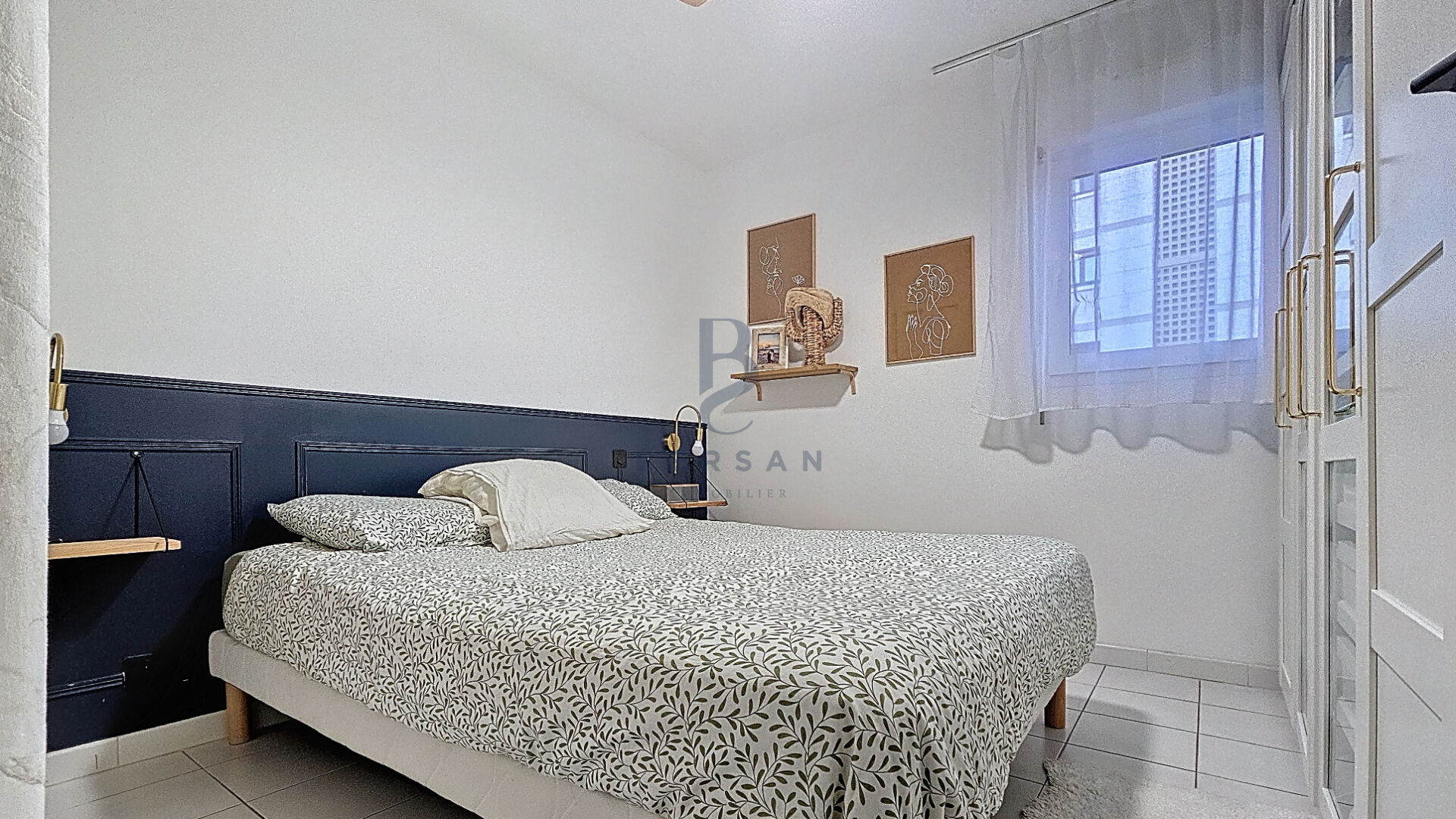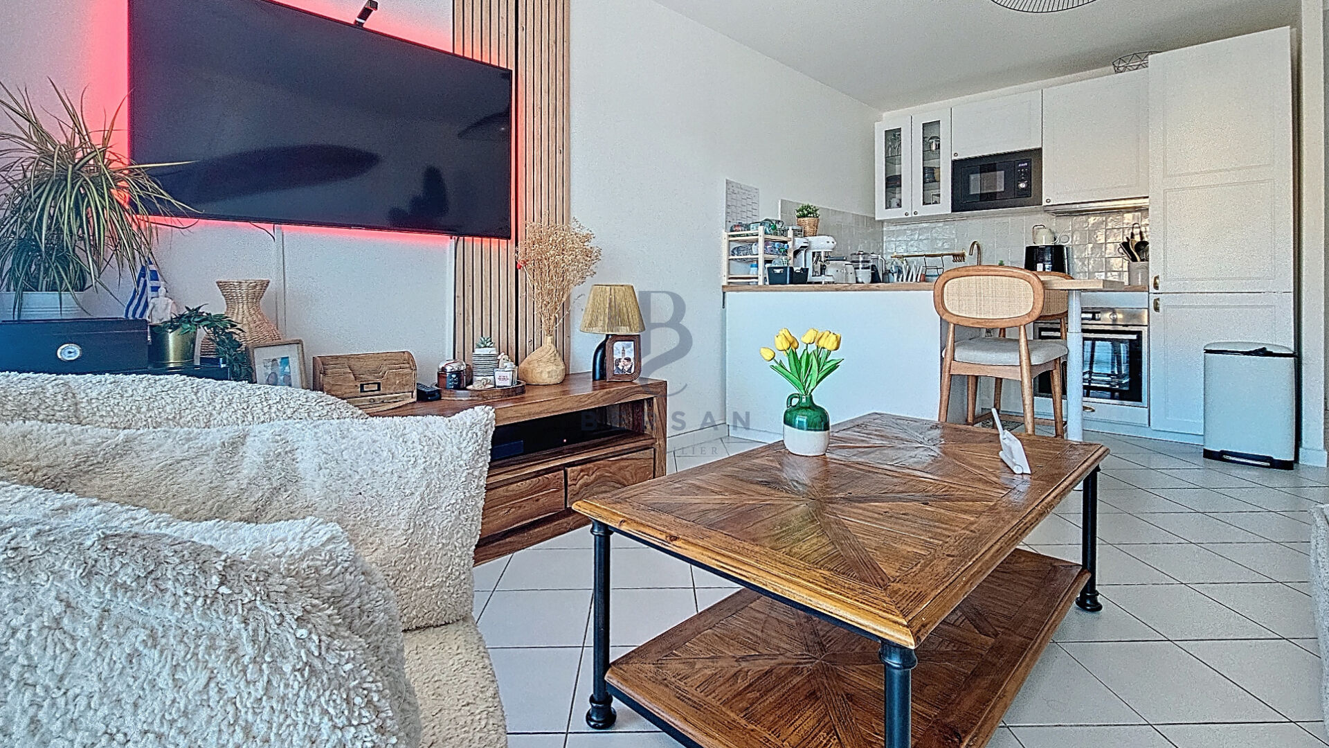 Votre agence BERSAN Immobilier vous propose ce superbe appartement au calme absolu entièrement rénové avec goût aux pieds des plages et criques. Dans une résidence sécurisée avec piscine, superbe appartement de 2-3 pièces composé d'une entrée, beau séjour avec cuisine américaine plein Sud sur terrasse, chambre avec placard, bureau (aménagé en chambre bébé), salle d'eau, wc séparés. Côté stationnement, vous bénéficierez d'un long parking permettant le stationnement de 2 véhicules moyens. Côté prestations, climatisation réversible neuve, cuisine équipée refaite et salle d'eau neuve. Très belles prestations pour ce bel appartement qui n'attend plus que vous ... Votre agence BERSAN Immobilier reste à votre disposition pour tout renseignements complémentaires ou pour le visiter tout simplement. Une visite virtuelle "LIVE" sur rendez-vous. Copropriété de 205 lots - dont 102 lots habitation. Charges annuelles : 1520 euros.