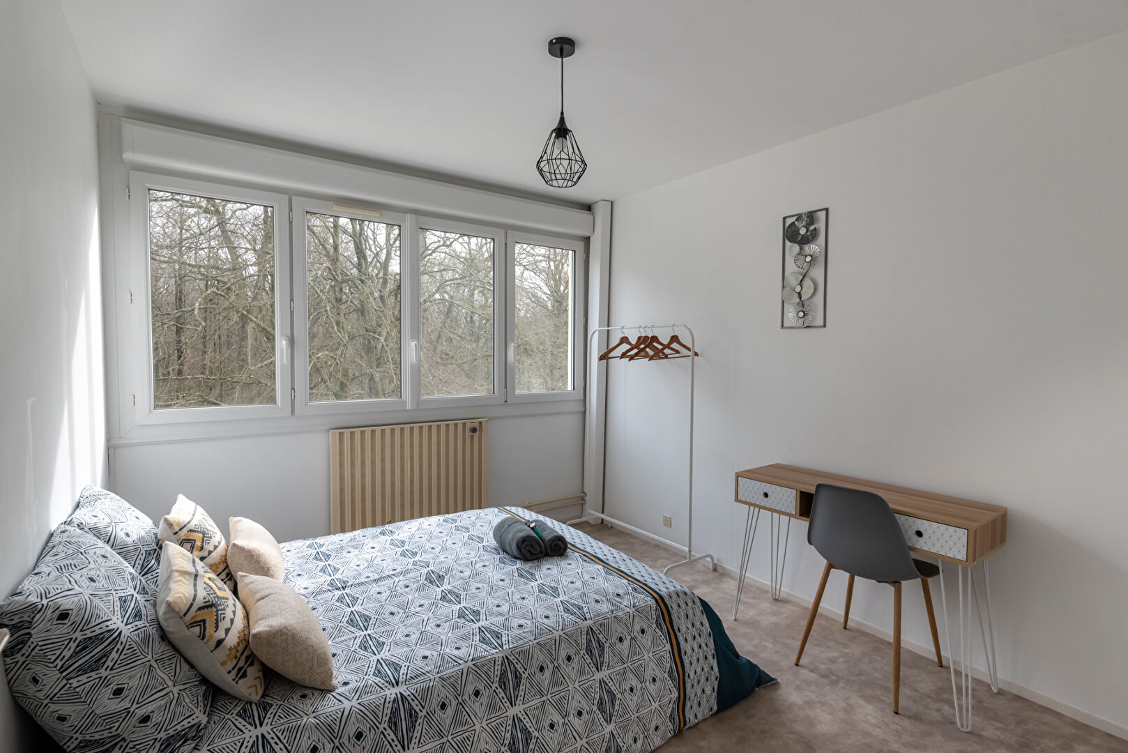EXLUSIVITE - Très idéalement situé au cinquième étage avec ascenseur de la résidence La Forêt, appartement vendu en bon état avec grand balcon, cave et place de parking. Située à côté des transports, Tempo et commodités, la résidence La Forêt est très appréciée pour son calme, ses grands espaces arborés avec vue sur la forêt, les interphones, le portail électrique, les places privées et les ascenseurs. Vous bénéficierez d'une grande entrée donnant sur le séjour d'environ 30 m² avec sa cuisine semi ouverte aménagée et équipée. Le dégagement permet d'accéder aux quatre chambres, deux salles d'eau et un WC séparé avec point d'eau. Au niveau de la copropriété, aucun travaux à prévoir et la toiture sera entièrement refaite aux frais du vendeur. L'emplacement, la luminosité et le grand balcon orienté plein sud vers la forêt sans vis-à-vis, accessible par le séjour et l'une des chambres, sont des atouts importants. Les informations sur les risques auxquels ce bien est exposé sont disponibles sur le site Géorisques : www.georisques.gouv.fr Copropriété de 96 lots - dont 48 lots habitation. Charges annuelles : 3450 euros.