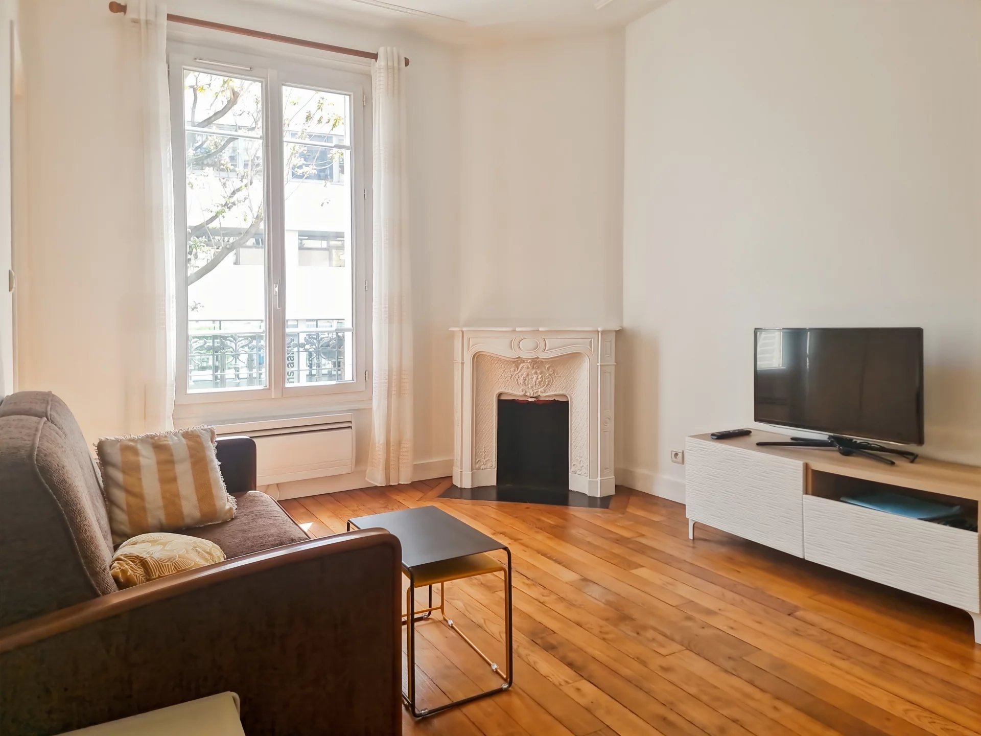 Dans un Bel immeuble ancien au premier étage avec ascenseur .Charmant 2 pièces de 38 m2 très bien agencé avec charme de l'ancien parquet. moulures cheminée. comprenant: entrée. wc . salon. cuisine dînatoire équipée, 1 chambre. salle de bains. en très bon état. Cave en sous-sol.