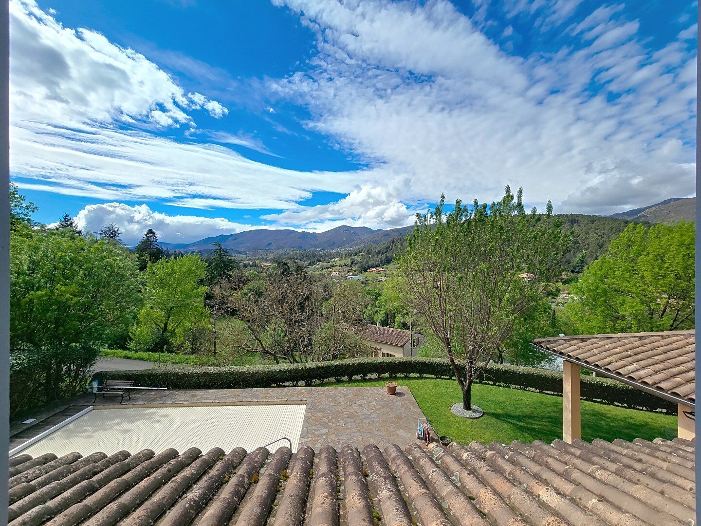 Villa avec piscine chauffée, parc et vues. Sur les hauteurs d'Olargues, classé parmi les plus beaux villages de France, au pied des Gorges d'Héric et du massif du Caroux, à seulement 20 minutes de Lamalou-les-Bains et 45 minutes de Béziers, cette propriété d'exception saura séduire les amoureux d'espace, de confort et de nature. Construite en 2003, cette villa d'architecte en R + 1 développe une surface habitable de 214,8 m², agencée avec une attention particulière portée à la lumière, aux volumes et à la fonctionnalité. L'entrée dessert un vaste séjour-salle à manger de 55 m², baigné de lumière grâce à ses nombreuses ouvertures, et donnant accès à plusieurs terrasses extérieures réparties sur trois faces de la maison. La cuisine séparée de 20 m², entièrement aménagée et équipée, ravira les amateurs de gastronomie, avec son accès direct vers l'extérieur. Côté nuit, vous découvrirez quatre spacieuses chambres, dont une magnifique suite parentale de 30 m² avec dressing et salle de bain privative. Un bureau, idéal pour le télétravail ou les professions libérales, complète cet espace. Une salle d'eau, une buanderie et un cellier viennent renforcer le confort de vie au quotidien. L'ensemble est prolongé par un garage de 55 m², une chaufferie indépendante, et de nombreux rangements. Le tout a été pensé dans les moindres détails avec des matériaux de qualité et des finitions soignées. À l'extérieur, la villa est implantée sur une magnifique parcelle arborée de 3570 m², véritable écrin de verdure, soigneusement paysagé et entretenu. Vous y trouverez un puits, des espaces de détente à l'ombre des arbres, un terrain de jeux naturel pour petits et grands, et surtout une piscine au sel de 8x4 mètres, chauffée, parfaitement intégrée dans l'environnement, avec sa terrasse ensoleillée. Ce bien rare combine confort moderne, cadre de vie paisible, proximité avec des sites naturels exceptionnels et volumes généreux, que ce soit pour une résidence principale, secondaire ou un projet d'accueil touristique (gîte, maison d'hôtes. ). Un bien unique à découvrir sans tarder. Pour plus d'informations ou l'organisation d' une visite, n'hésitez pas à nous contacter. Un véritable havre de paix vous attend, entre montagne, rivière et lumière du Sud. Offre exceptionnelle. Visites sur rendez-vous.