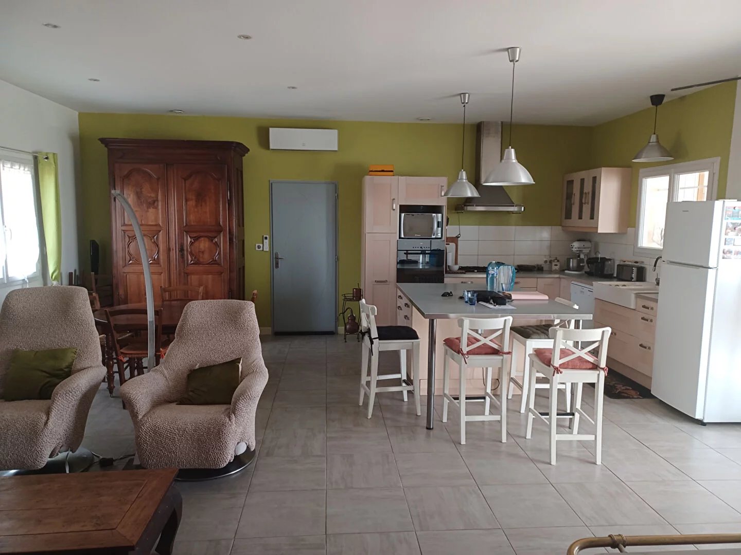 Bergerac Maison de plain-pied de 2013 de 147 m² avec véranda, TERRAIN PICINABLE elle dispose de 3 chambres spacieuses et lumineuses, une salle de bains et deux salles d'eau, ainsi que 2 WC indépendants et d'un broyeur, séjour de 46 m² avec cuisine équipée, garage +carport camping car sur un terrain de 1882 m² avec puits ce qui rends cette maison pratiquement autonome avec en plus ces 16 panneaux photovoltaïques Attenant à la maison, un gite de 50 m² comprenant séjour avec cuisine ouverte, deux chambres et une salle d'eau idéal pour vous lancer dans une activité de maison d'hôtes ou pour accueillir vos proches le tout en bon état général. A voir rapidement www.cad-immo.com 0553735735/0611512831.