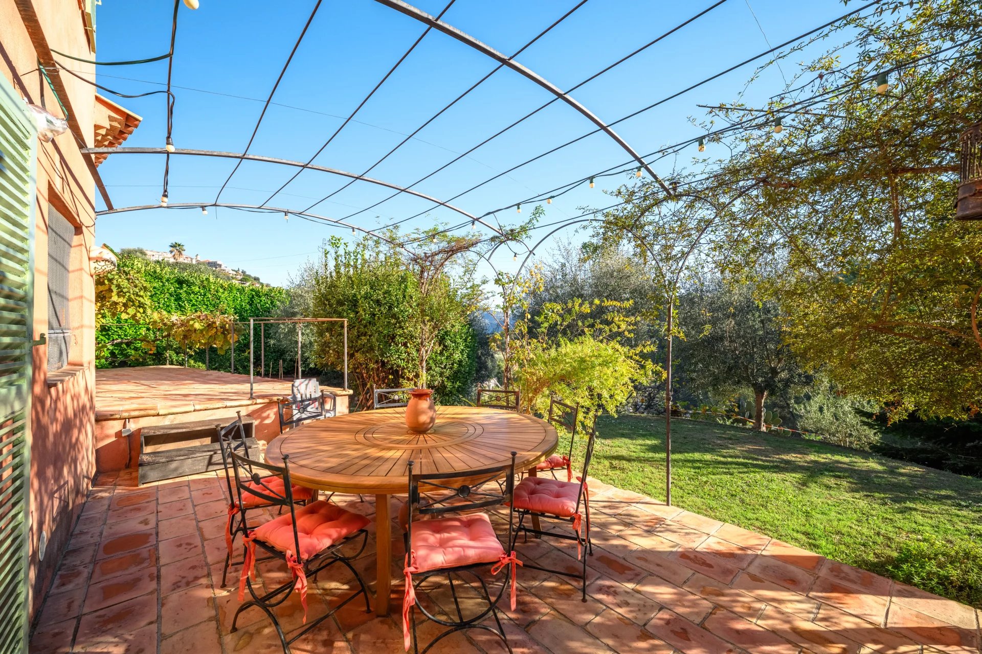 Dans un domaine privé, jolie maison au charme provençal au calme absolu et sans aucun vis-à-vis. Au rez-de-chaussée, vous profiterez d’un vaste séjour, d’une cuisine indépendante, d’une suite parentale avec salle de bains et dressing, ainsi qu’un cellier et des WC indépendants. À l’étage, deux chambres partagent une salle de bains et un WC indépendant. La maison est édifiée sur un beau jardin plat exposé sud, idéal pour accueillir une piscine et profiter pleinement des belles journées ensoleillées. Stationnement pour 3/4 véhicules Accès autoroute à 5 minutes et aéroport à 25 minutes. A proximité bus 35 et bus scolaire Les honoraires d’agence sont intégralement à la charge du vendeur. Les informations sur les risques auxquels ce bien est exposé sont disponibles sur le site Géorisques : georisques.gouv.fr.
