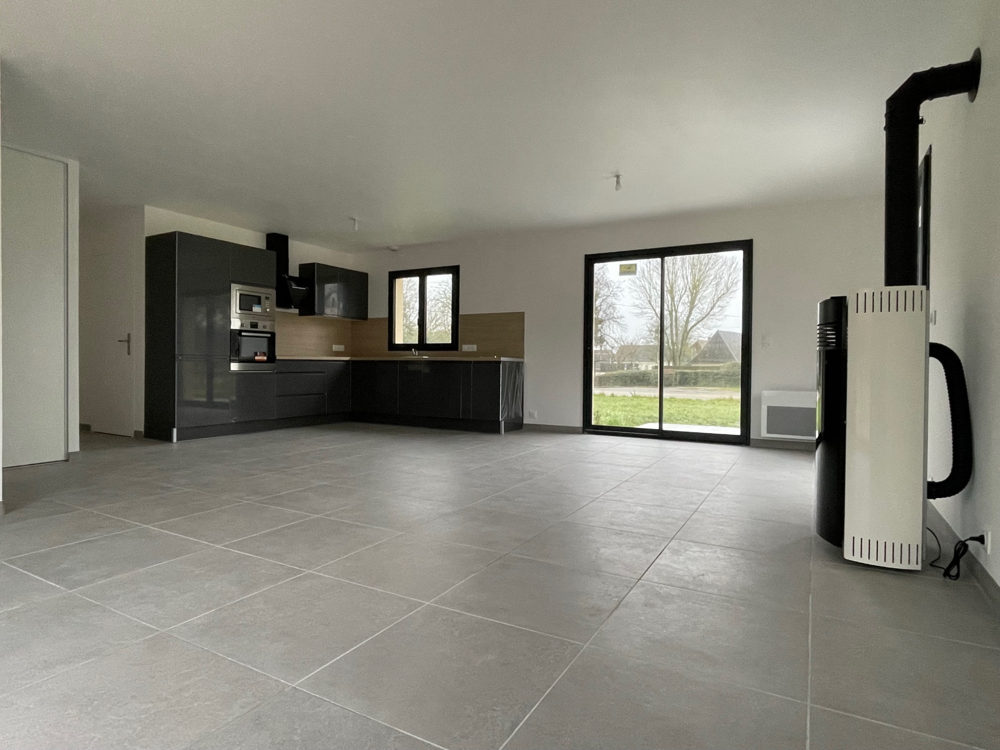 Secteur PLASNES, maison neuve de plain-pied édifiée sur un terrain de 1000m² environ. Elle comprend, entrée, cuisine aménagée ouverte sur séjour/salon avec poêle à granulés, couloir distribuant trois chambres avec placards, salle d'eau et un WC. Les combles peuvent être aménagés. Double vitrage PVC et volets roulants électriques. Portail automatique. Frais de notaire réduits.