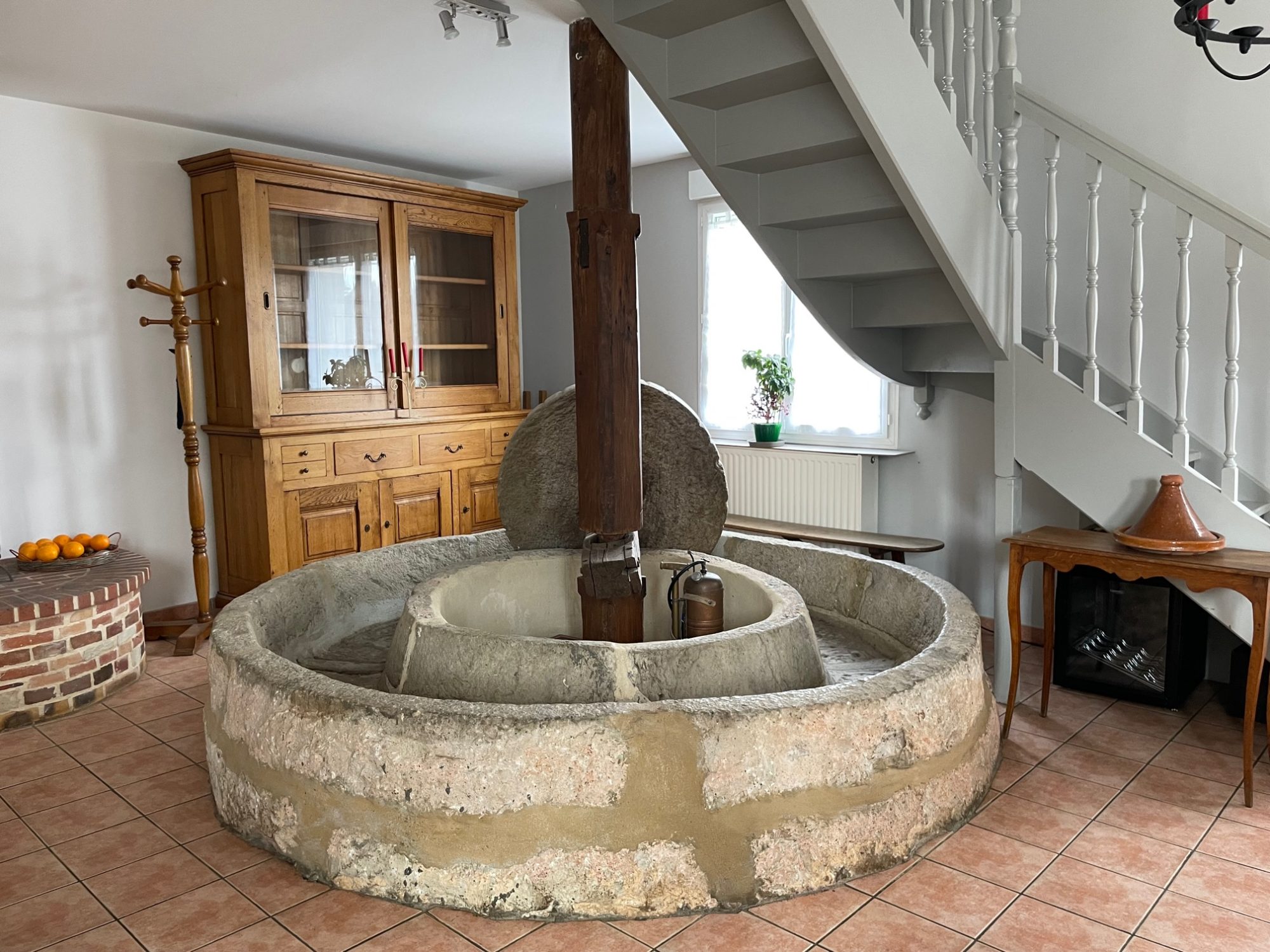 Située dans un village avec toutes les commodités à pied écoles, collège, commerces, cette maison autrefois faisait partie d'un corps de ferme offre un beau volume avec un espace de vie de plain-pied. Elle se compose au rez-de-chaussée d'un séjour salon avec colombages et une cheminée avec insert, d'une cuisine ouverte, d'un toilette avec lave main et d'une suite parentale avec salle d'eau. A l'étage une pièce palière pouvant accueillir un bureau, dessert une chambre avec salle de bain et WC, un dressing et une 3ème chambre avec une salle d'eau et WC. Cette pièce d'eau communique avec le studio qui se compose d'une grande chambre à l'étage, et d'une kitchenette salle à manger au rdc. Ce dernier espace pouvant être indépendant de la maison principale, il est envisageable de prévoir une location type AIRBNB et d'agrandir en terminant l'aménagement du grenier de 12 m² . Cette maison est complétée par une chaufferie/buanderie, un atelier, un bûcher.
