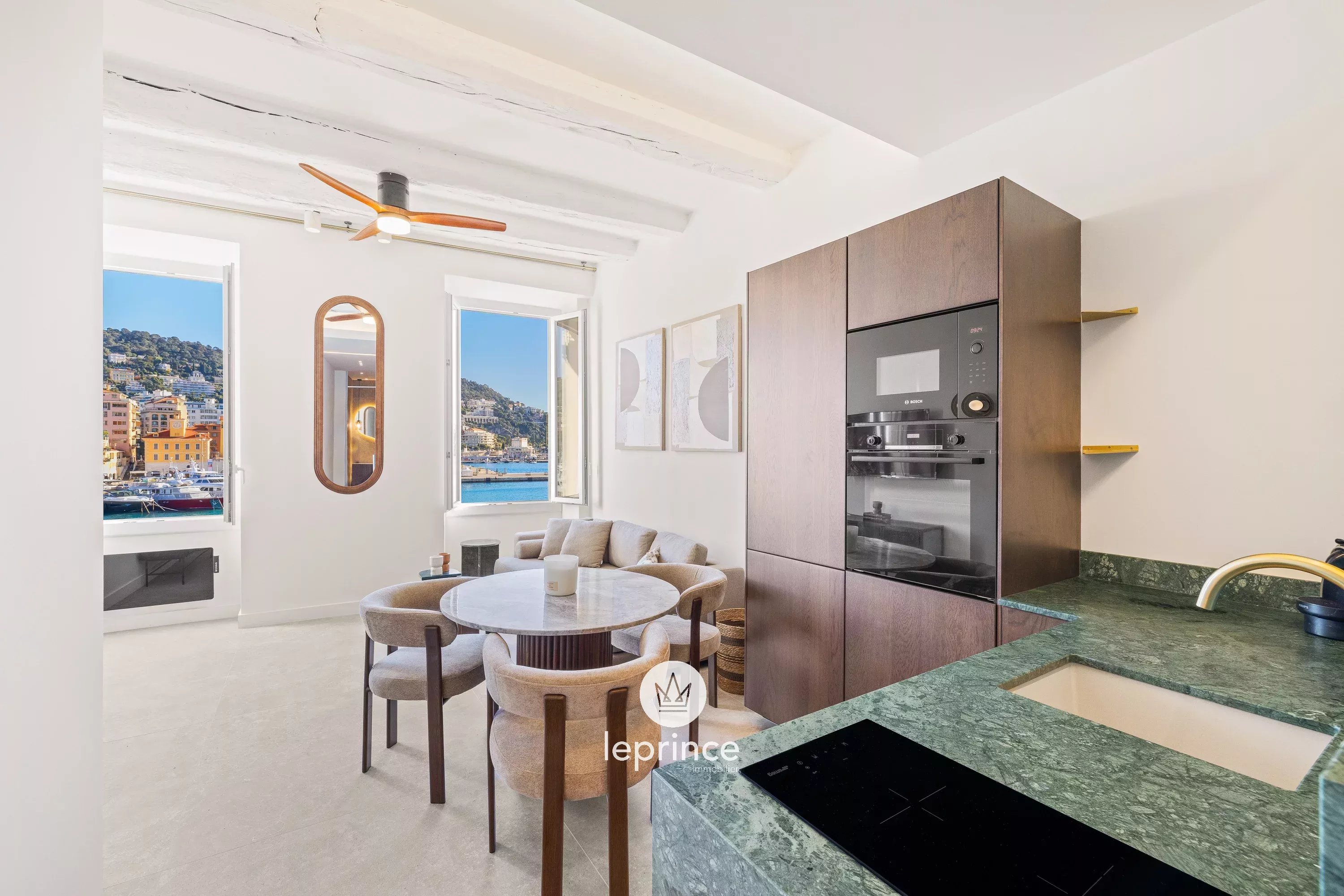 Nizza Le Port / de Foresta : Situato nel cuore del quartiere del Porto, con affaccio diretto su Quai Lunel, questo appartamento completamente ristrutturato unisce fascino e modernità.