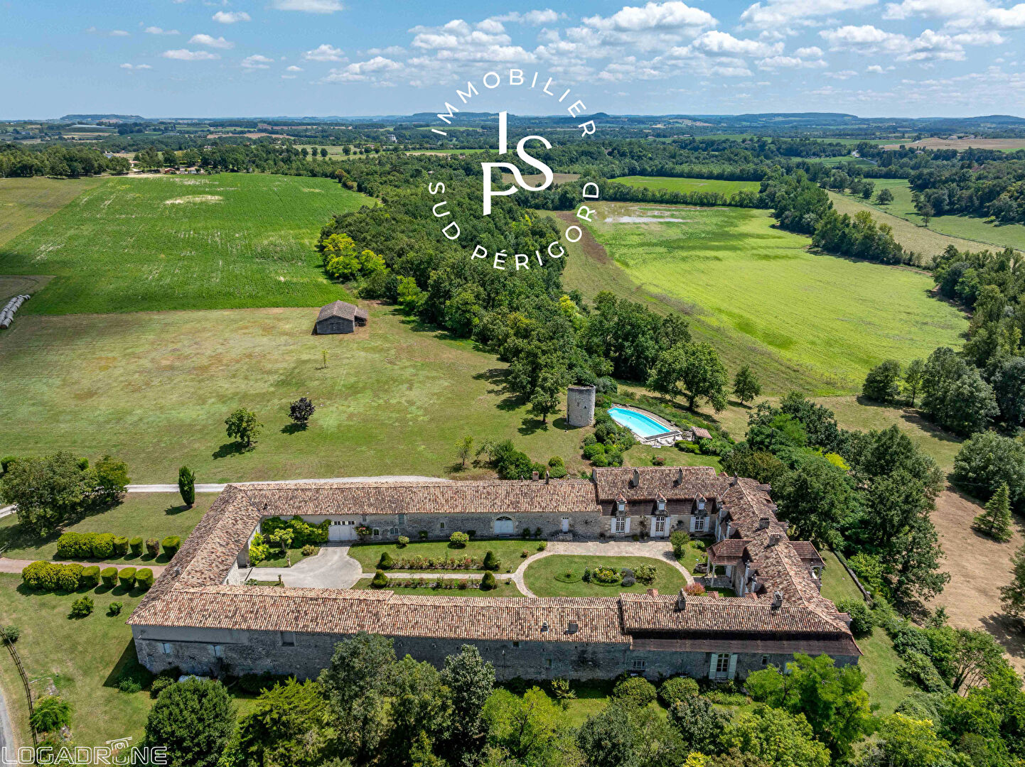 SITUATION: A quelques minutes d'un charmant village avec des commodités et des écoles, cette propriété est située dans un endroit paisible et préservé. Elle se trouve à seulement 5 minutes de Monflanquin, classé parmi les Plus Beaux Villages de France, à 20 minutes de Fumel, et à 45 minutes de l'aéroport de Bergerac. HABITATION: Laissez-vous séduire par le charme incomparable de cette propriété unique, mise en valeur par une magnifique cour intérieure de plus de 1000 m². L'habitation principale, accessible par un élégant porche à colonnes, se trouve de l'autre côté de cette cour. Dès l'entrée, un vaste salon avec cheminée vous accueille, établissant une ambiance chaleureuse et raffinée. En enfilade, une salle à manger baignée de lumière et une cuisine dinatoire attenante complètent l'espace de vie. L'espace nuit se compose de quatre grandes chambres, chacune avec sa salle de bains privative. Un premier logement indépendant offre un grand salon, une chambre avec salle d'eau au rez-de-chaussée, une cuisine avec terrasse privative et, à l'étage, une seconde chambre avec salle de bains. Dans l'autre aile de la propriété, vous découvrirez une grande terrasse couverte avec un coin barbecue, parfait pour des moments de convivialité. A l'extérieur, une superbe piscine à débordement offre une vue imprenable sur la campagne environnante, promettant des instants de détente exceptionnels. CONFORT : climatisation réversible, bois simple vitrage, assainissement par fosse septique, DÉPENDANCES: On trouve également un deuxième logement indépendant de type studio avec chambre en mezzanine. Dans le prolongement des habitations se trouvent deux grandes salles polyvalentes pouvant être utilisées comme garage ou bien comme salle de réception pour des évènements. une grange et une maison de gardien de 3 chambres. une tour a été rénovée pour y accueillir une chambre et une salle d'eau offrant un lieu tout à fait charmant. TERRAIN: La propriété s'étend sur un terrain d'environ 9 hectares, comprenant une partie boisée et une prairie, ainsi qu'une grange idéale pour le stockage de matériel. Benoit GARRIGUES (EI) Agent Commercial - Numéro RSAC : - .