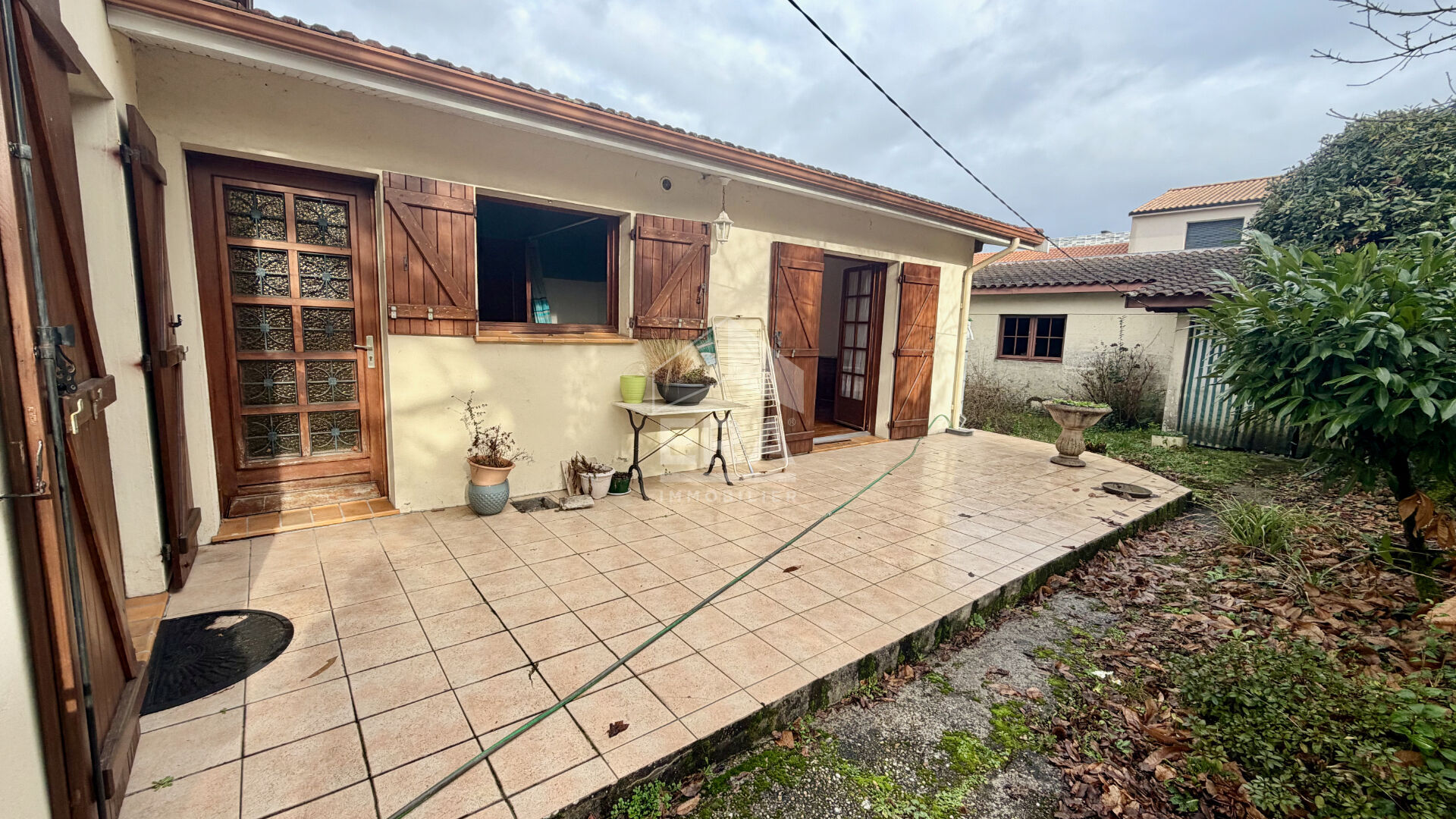 TALENCE PEIXOTTO - Idéalement située à proximité du Tram B Arrêt Peixotto, proche des lignes de bus et des commerces, charmante maison de plain pied d'environ 100m² comprenant : une belle véranda, un couloir, un salon, une salle à manger - cuisine, deux chambres, salle d'eau, WC. Très beau jardin au calme avec grand garage de 37m² pouvant être aménagé en appartement indépendant (potentiel locatif intéressant), terrasse, puits. Maison bien entretenue avec des travaux de rafraîchis
